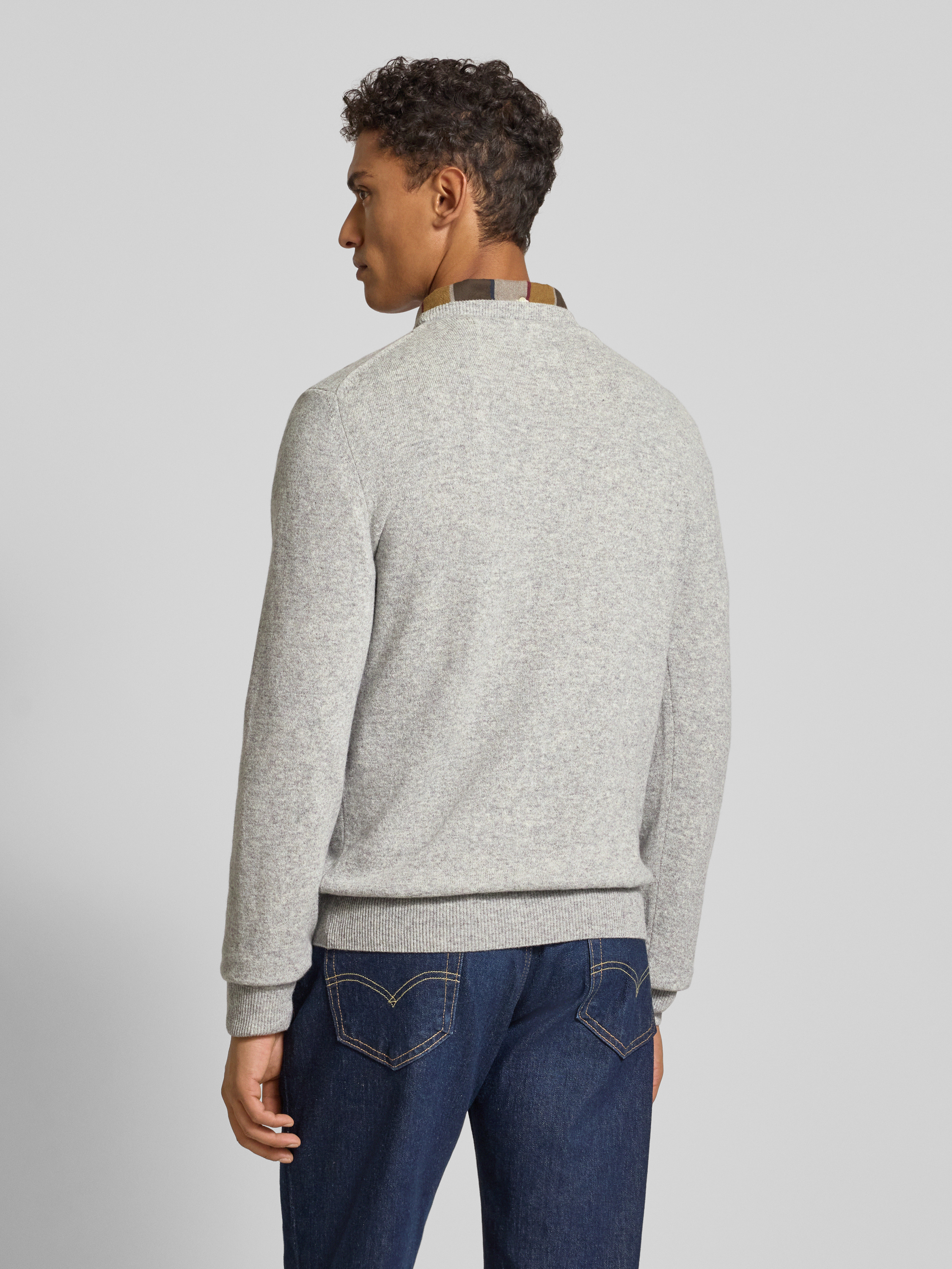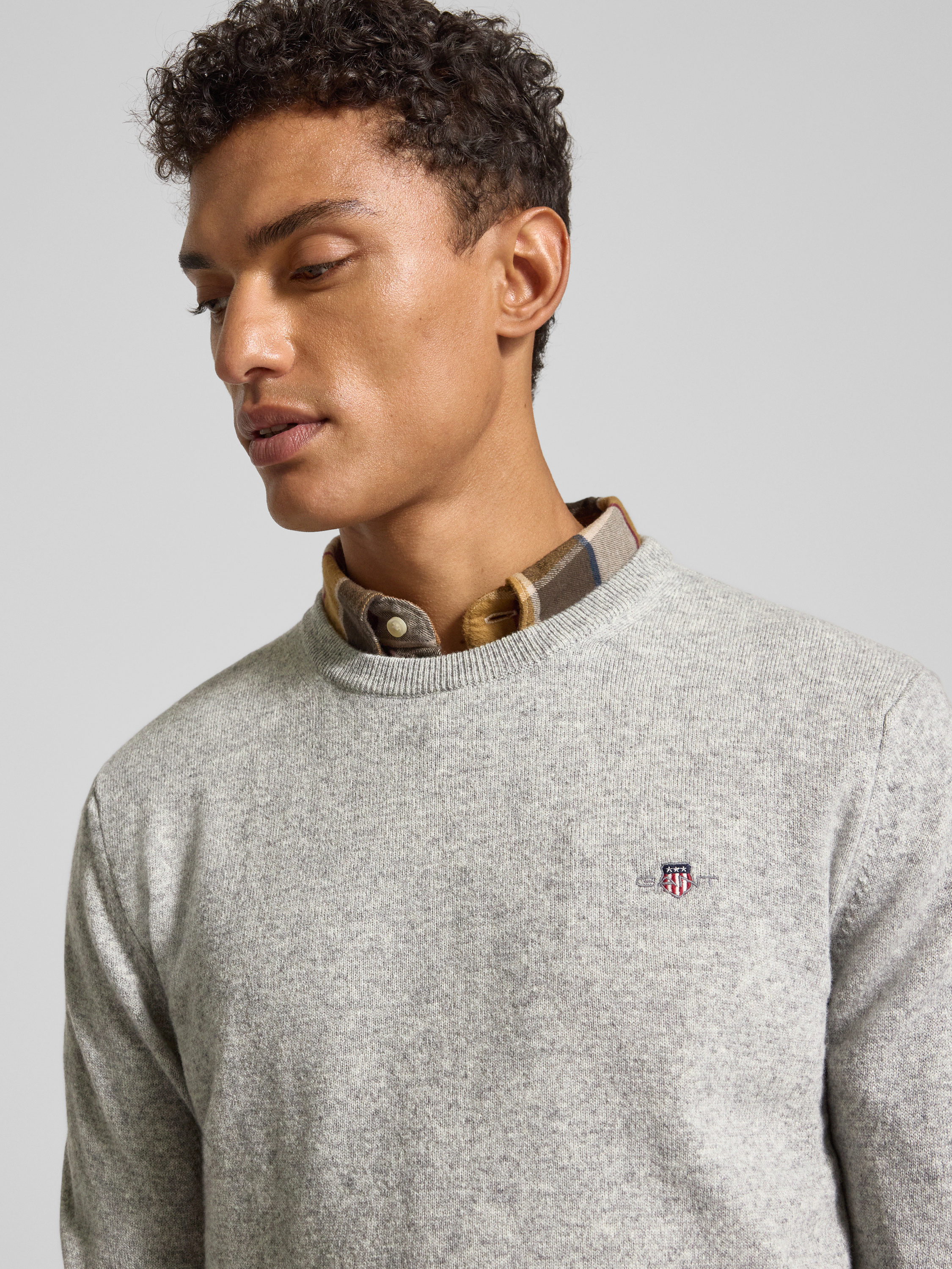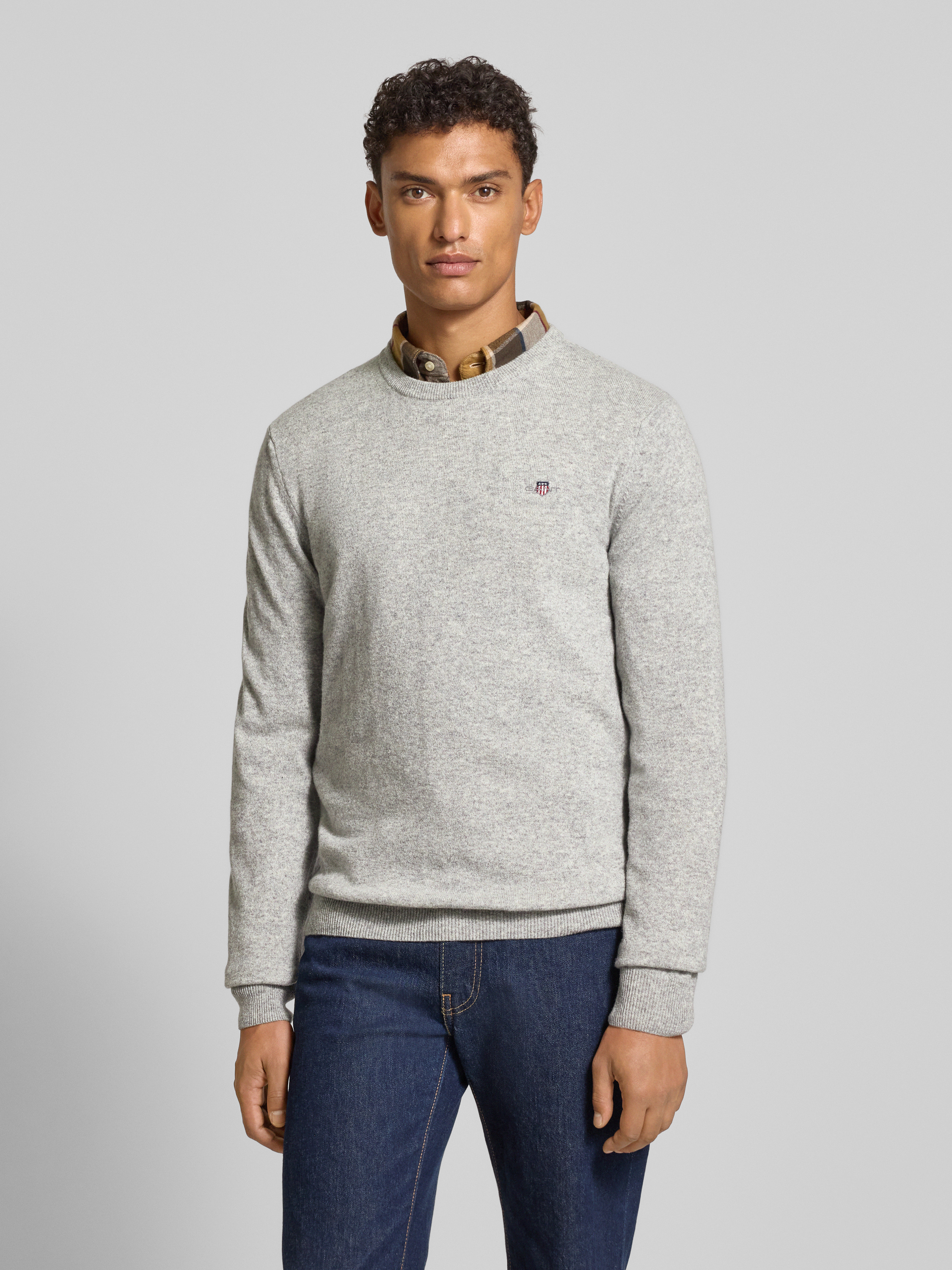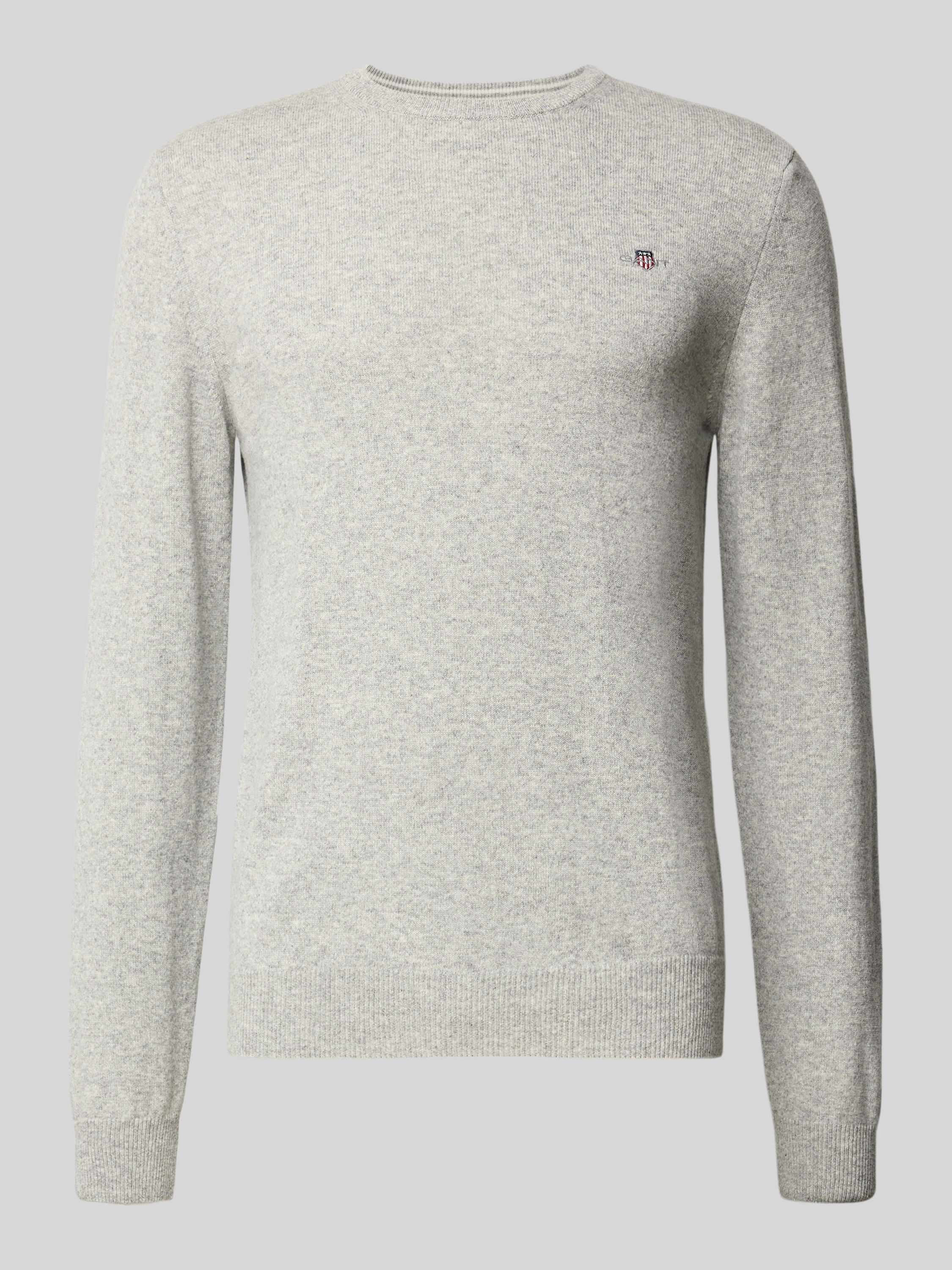 GantStrickpullover aus reiner Lammwolle mit gerippten Abschlüssen in mittelgrau melange