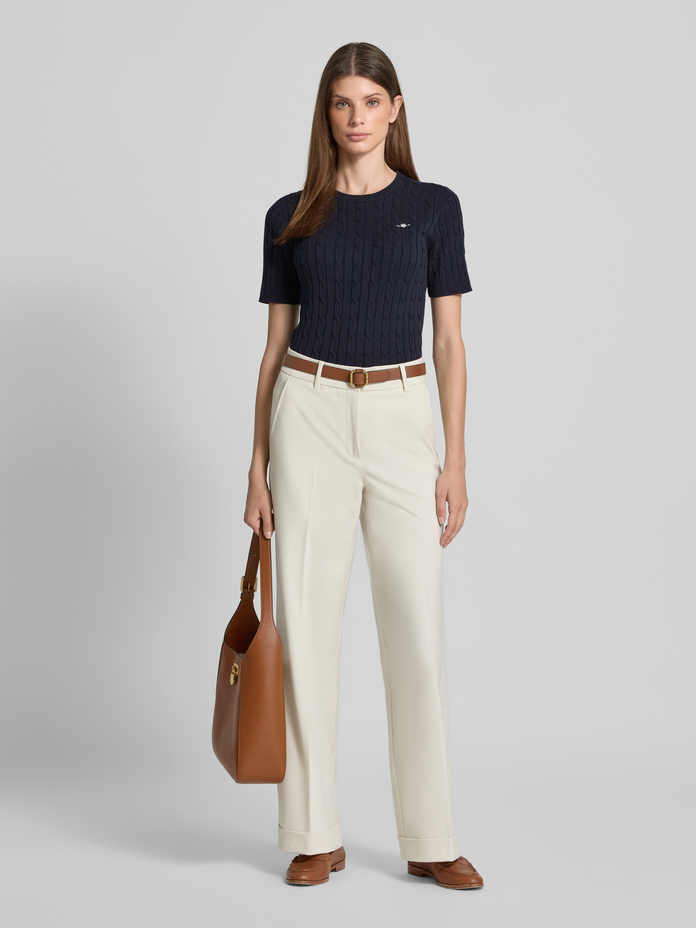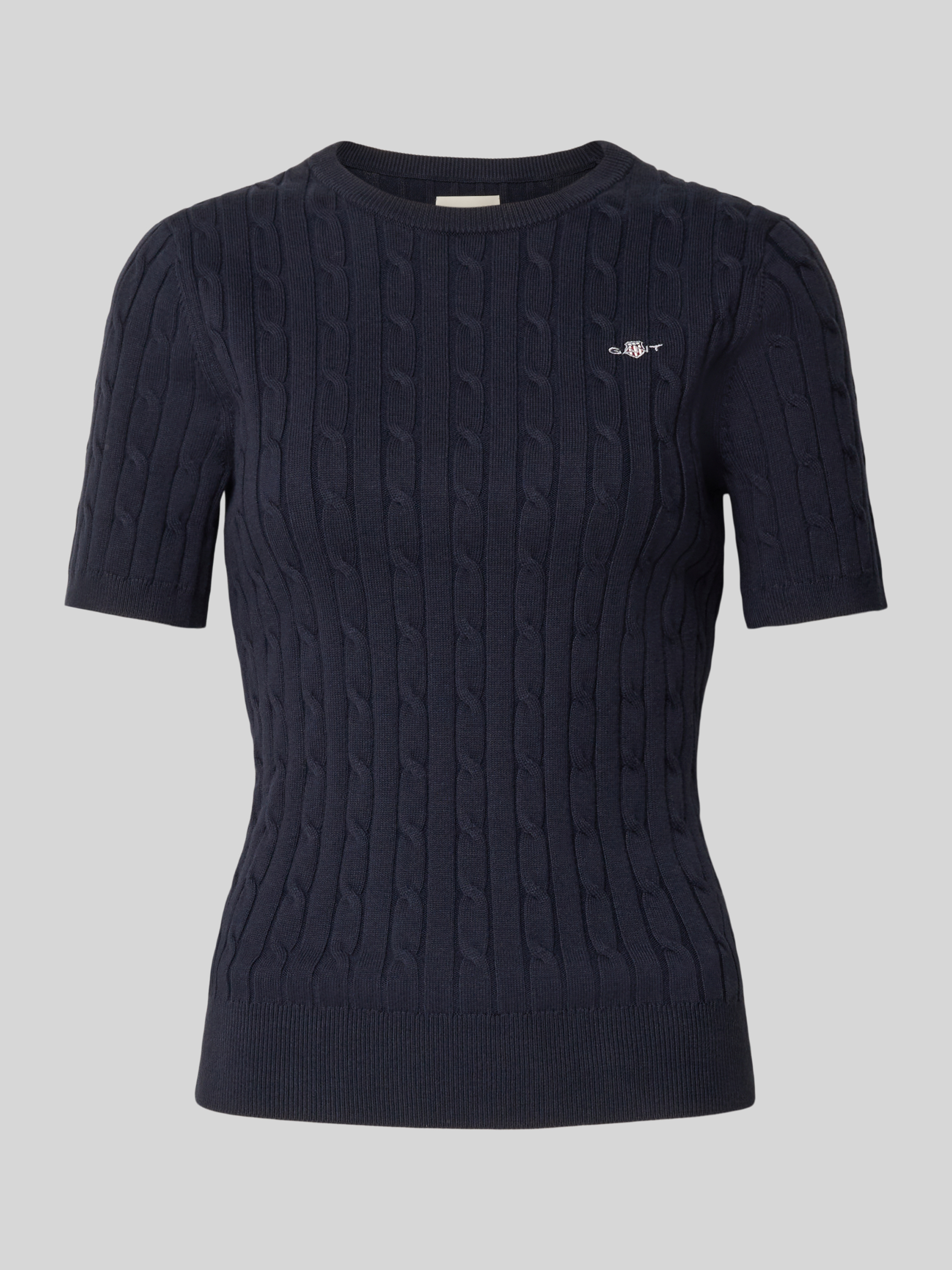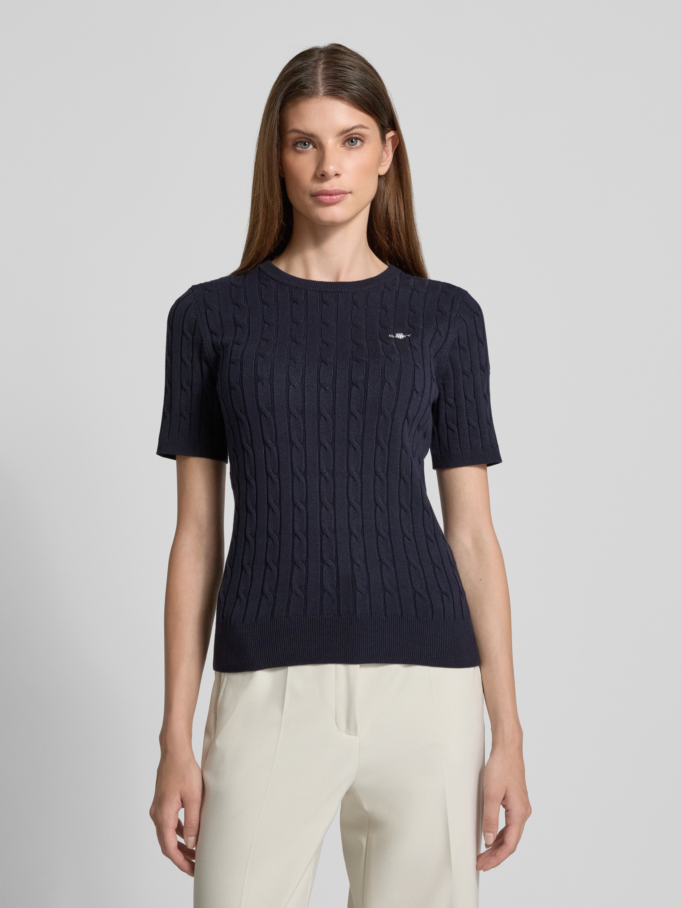 GantStrickshirt mit Rundhalsausschnitt und Logo-Stitching in marine