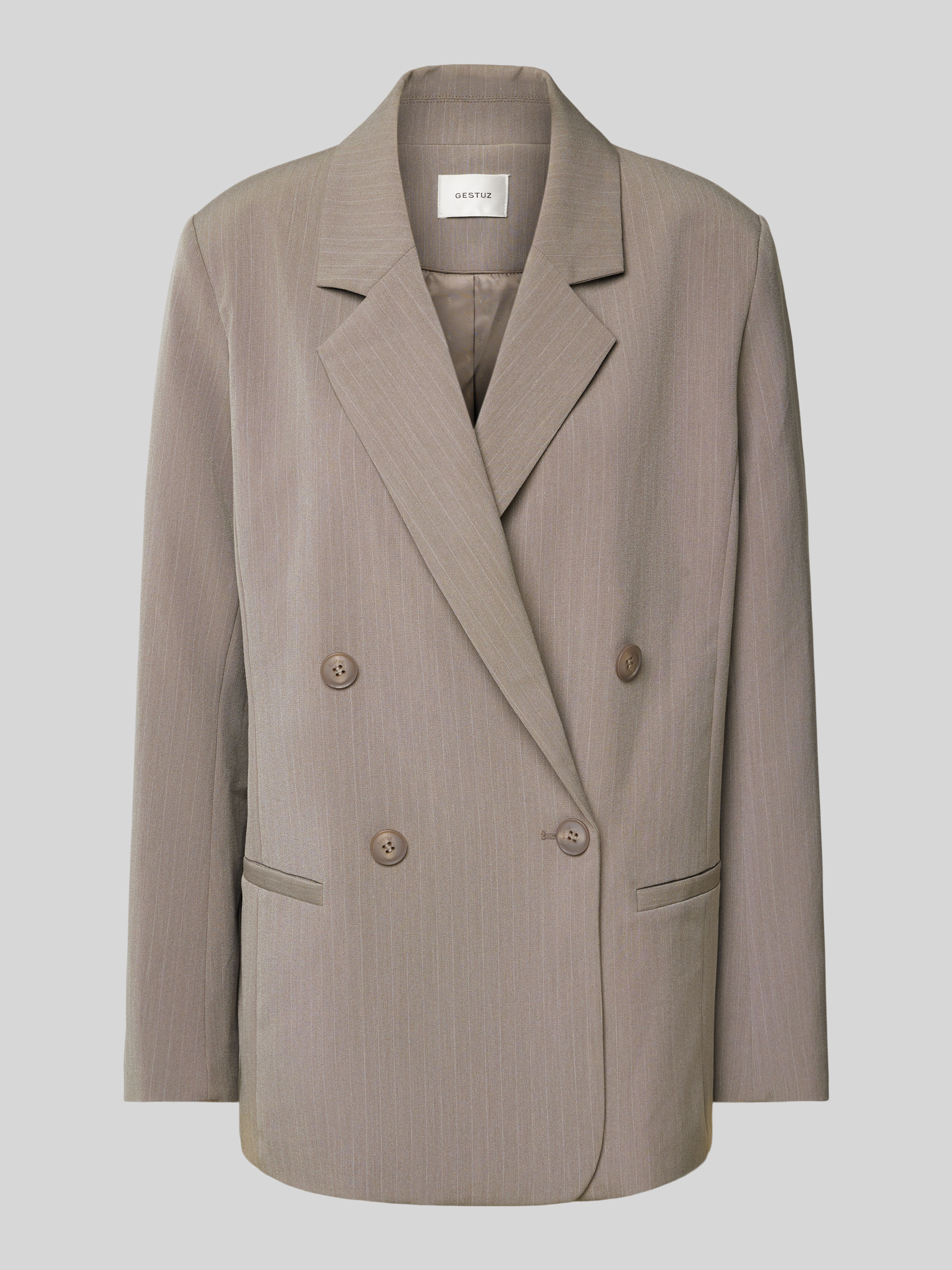 Der Damen Blazer von GESTUZ kombiniert einen elastischen Material-Mix mit Viskose-Anteil und bietet einen geraden Schnitt für eine bequeme Passform. Ein klassischer Reverskragen und Leistentaschen ergänzen das Design des Zweireihers, der sich für verschiedene Anlässe eignet.