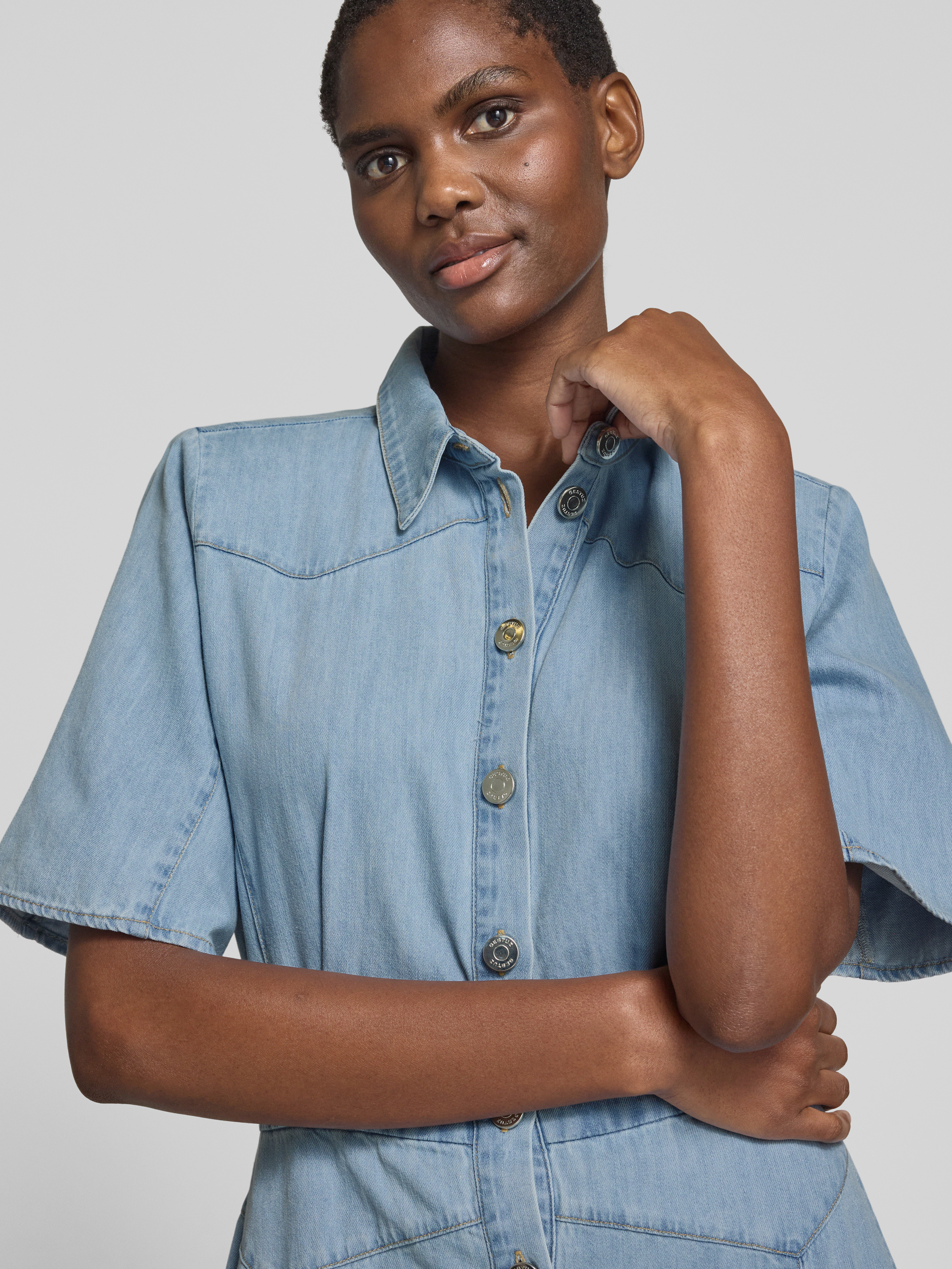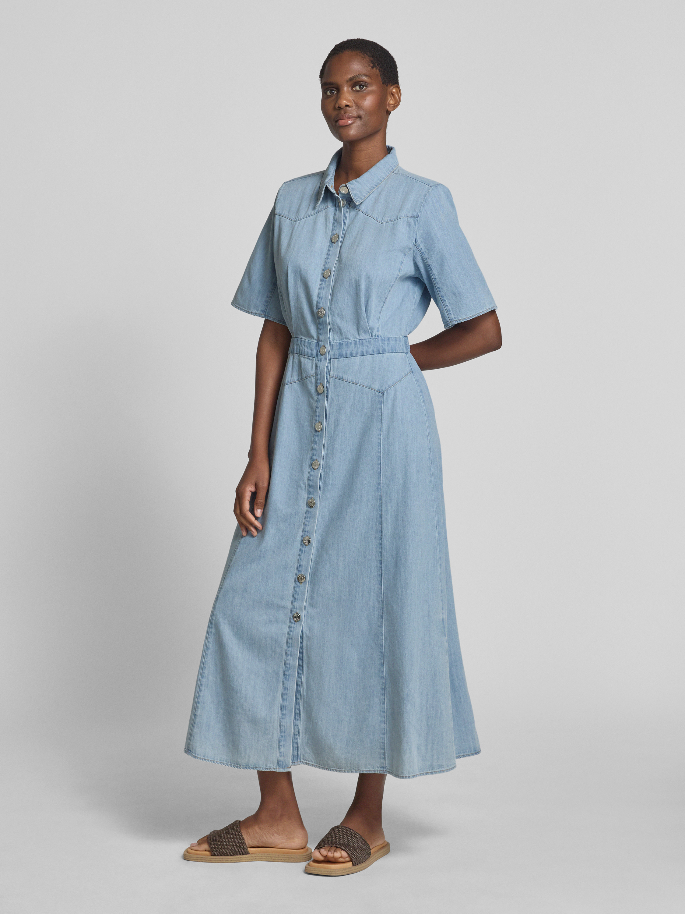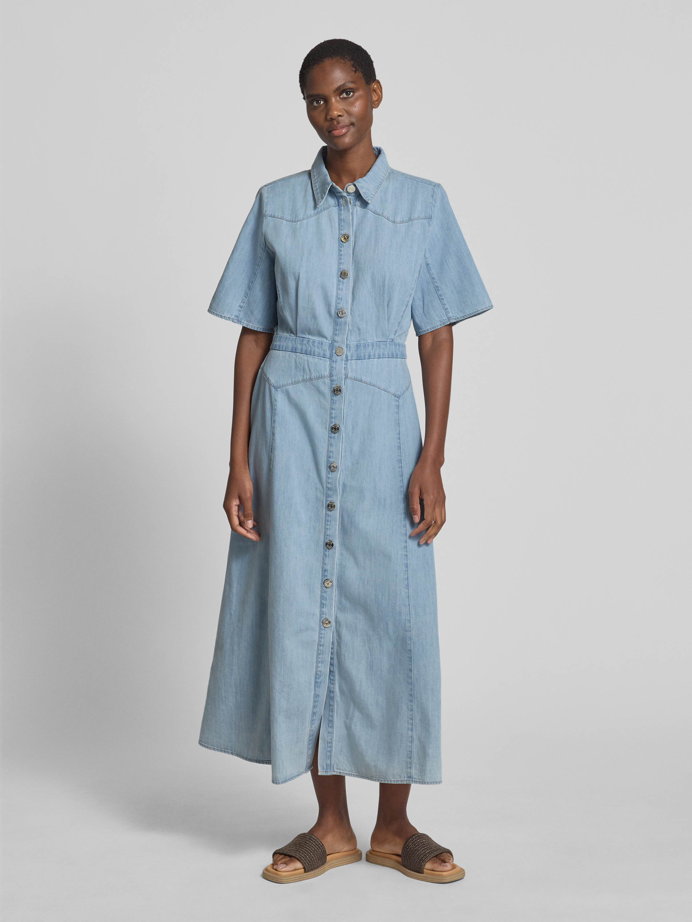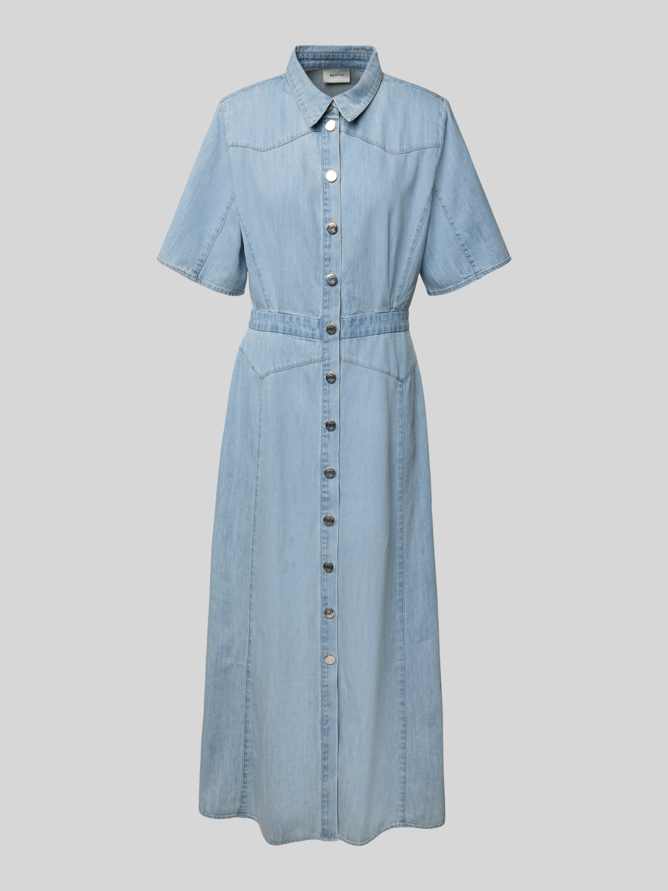 Das Jeanskleid 'sauda' von Gestuz kombiniert mit seinem taillierten Schnitt und der reinen Baumwolle angenehmen Tragekomfort und stilvolle Eleganz. Der Hemdblusenkragen und die durchgehende Knopfleiste verleihen dem Maxikleid eine klassische Note. Ideal für vielseitige Outfits und sommerliche Anlässe.