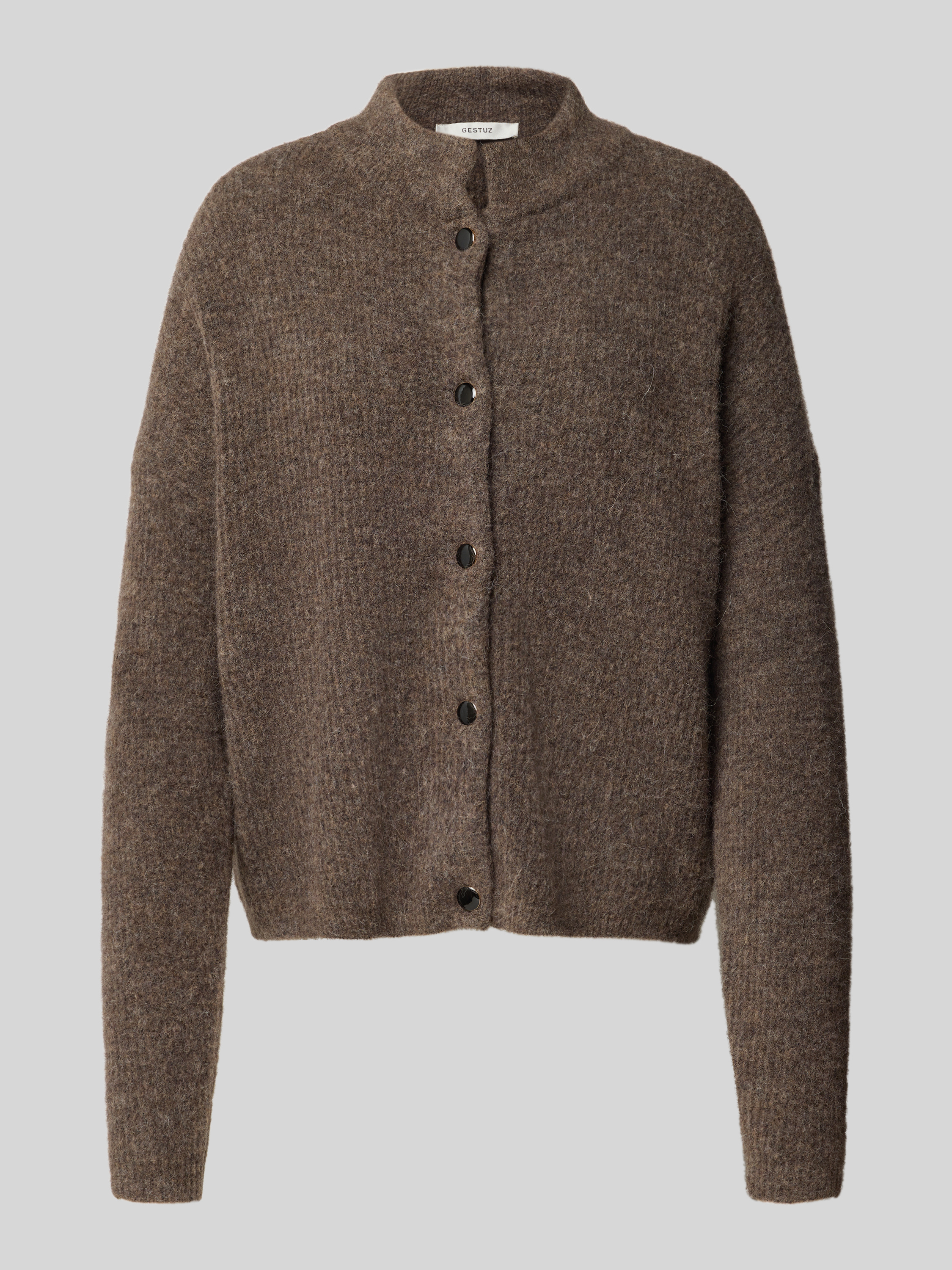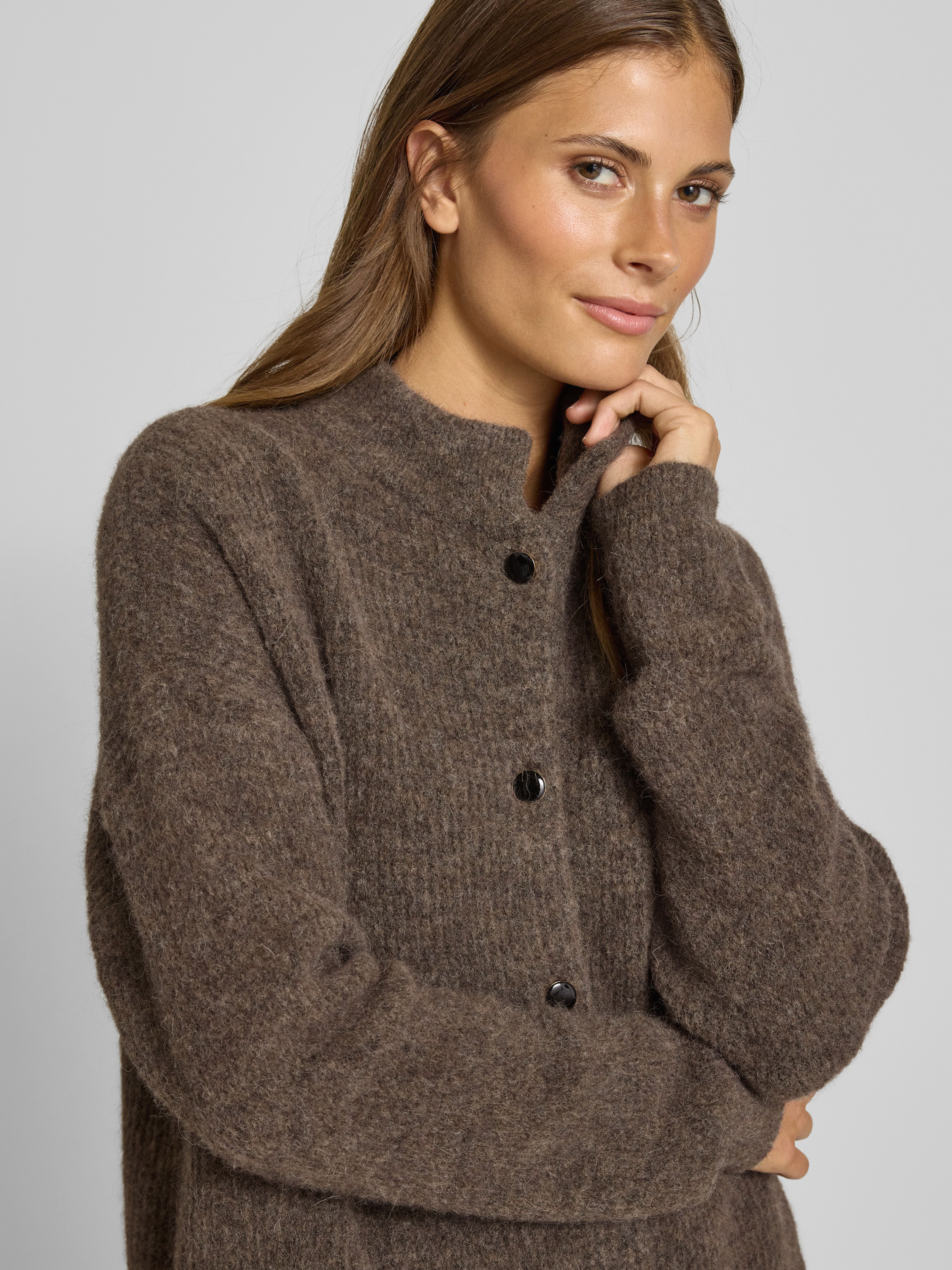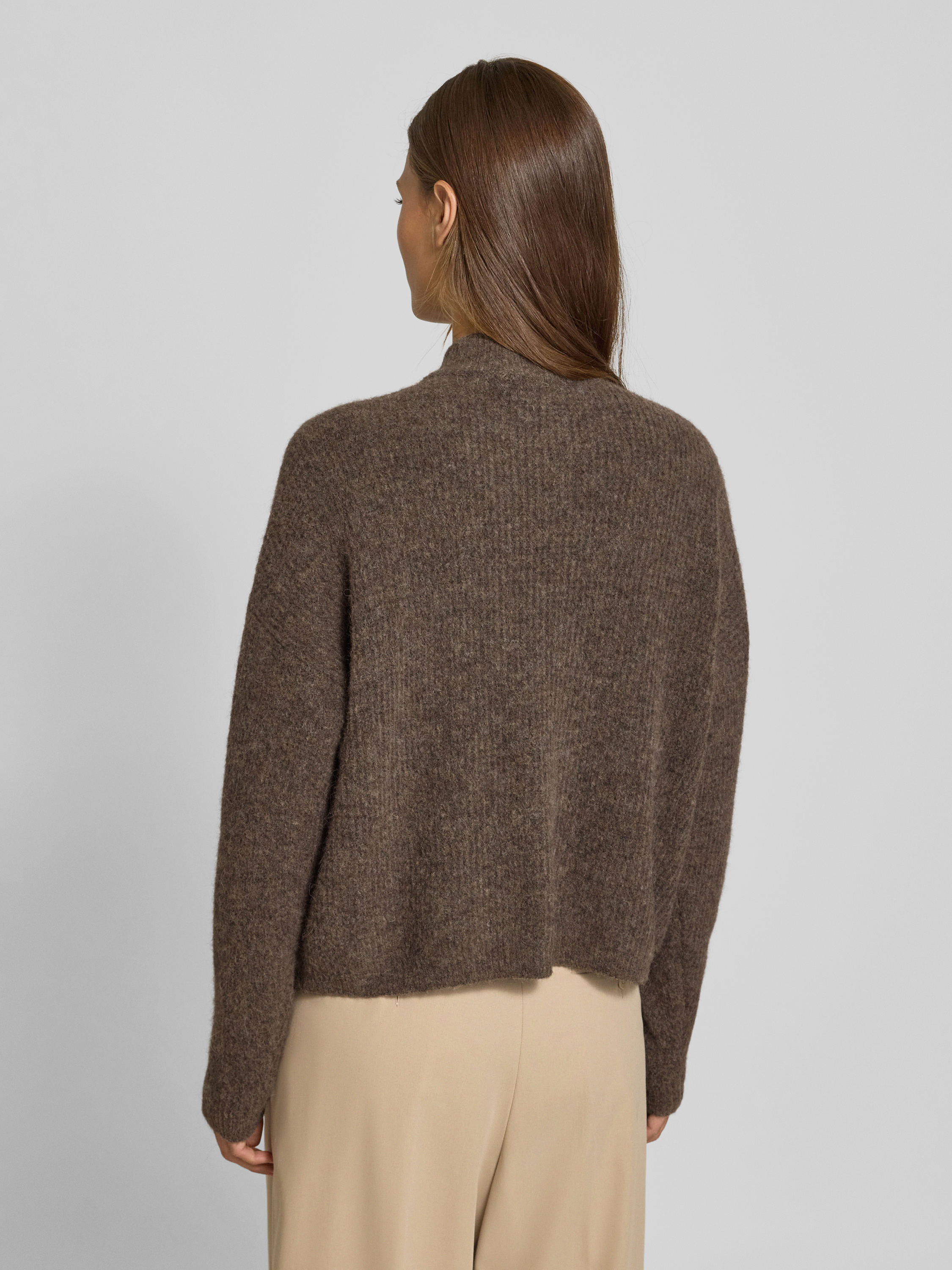 GestuzStrickjacke aus Alpaka-Mix mit Stehkragen Modell 'Alpha' in mittelbraun