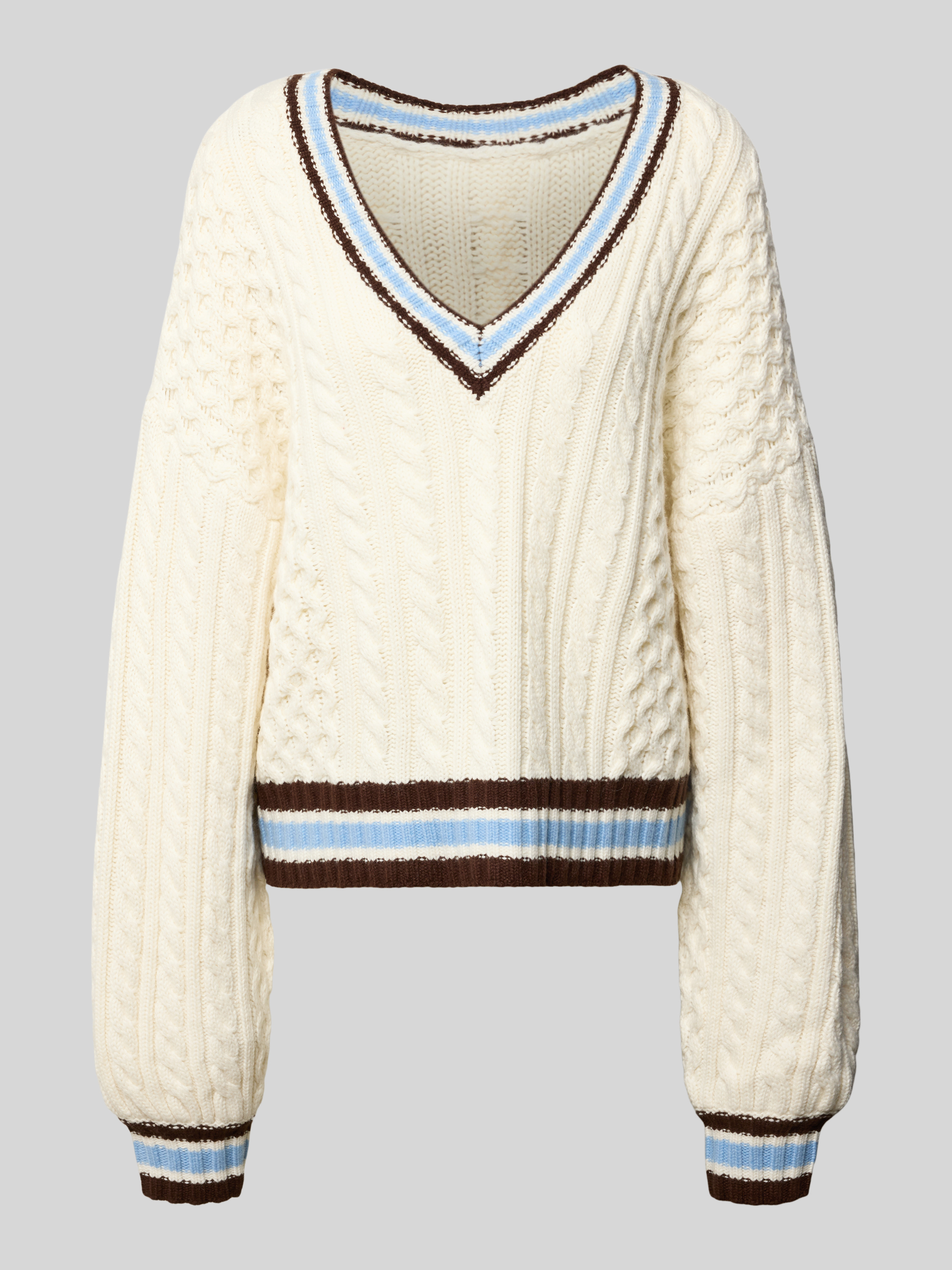 Der Damen Strickpullover von Gestuz im Modell 'taiba' kombiniert einen entspannten Relaxed-Fit mit weichem Woll-Mix. Das Zopfmuster und der V-Ausschnitt sorgen für eine abwechslungsreiche Optik, während die angenehme Materialmischung beim Tragen ein wohliges Gefühl vermittelt. Locker geschnitten, eignet sich der Pullover für vielseitige Kombinationen im Alltag.