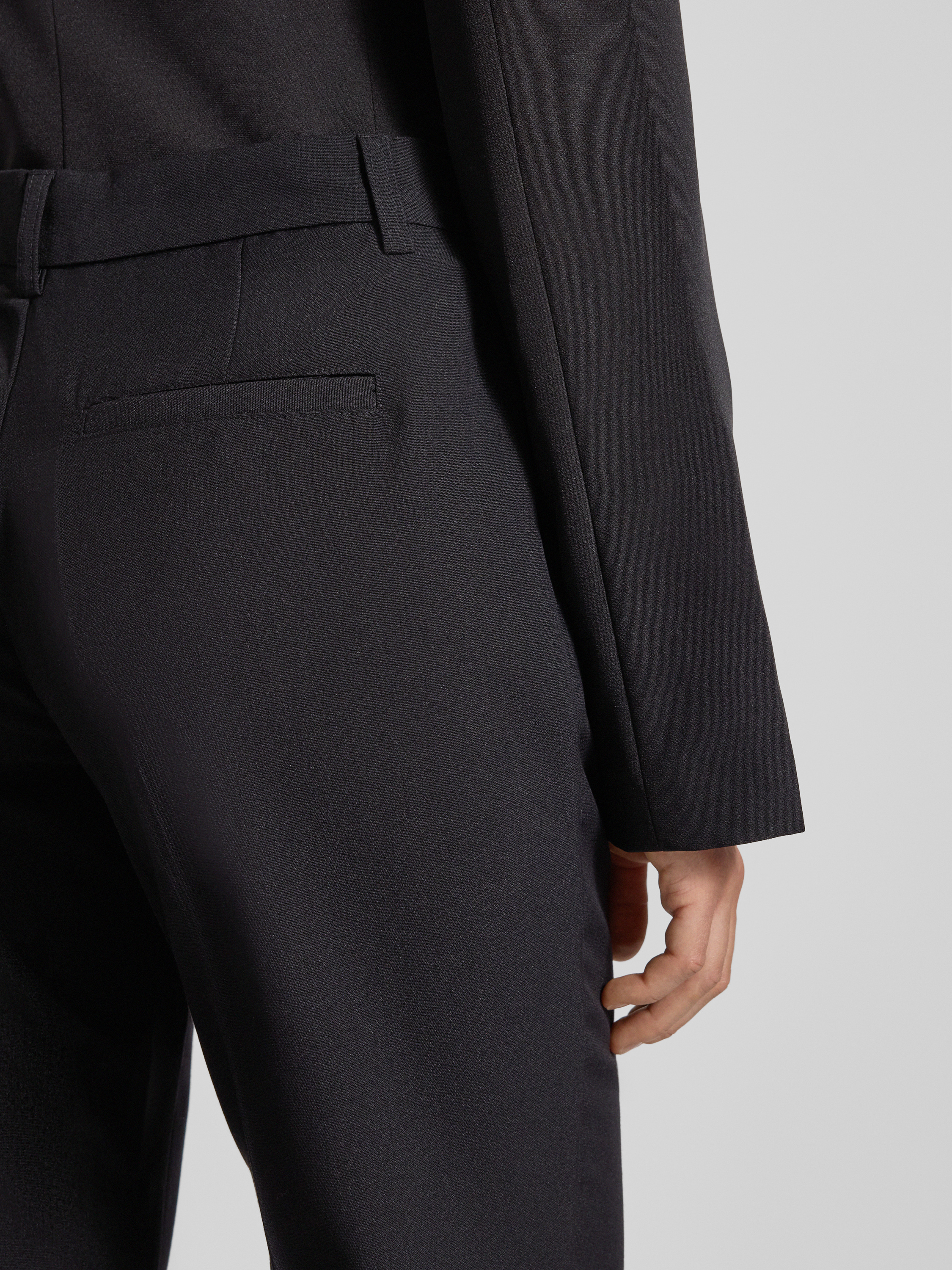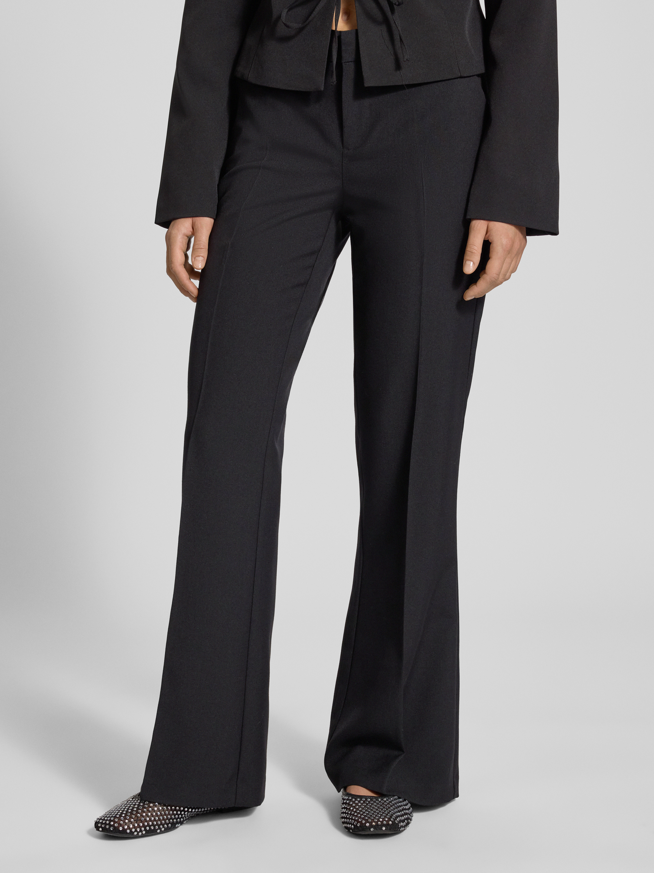 Die Damenhose von Gina Tricot zeigt sich mit klassischem Bootcut und niedriger Bundhöhe, wodurch eine lässige Silhouette entsteht. Durch den Material-Mix mit Viskose-Anteil fühlt sie sich angenehm auf der Haut an. Dank der dezenten Bügelfalten wirkt das Modell gepflegt und vielseitig kombinierbar.