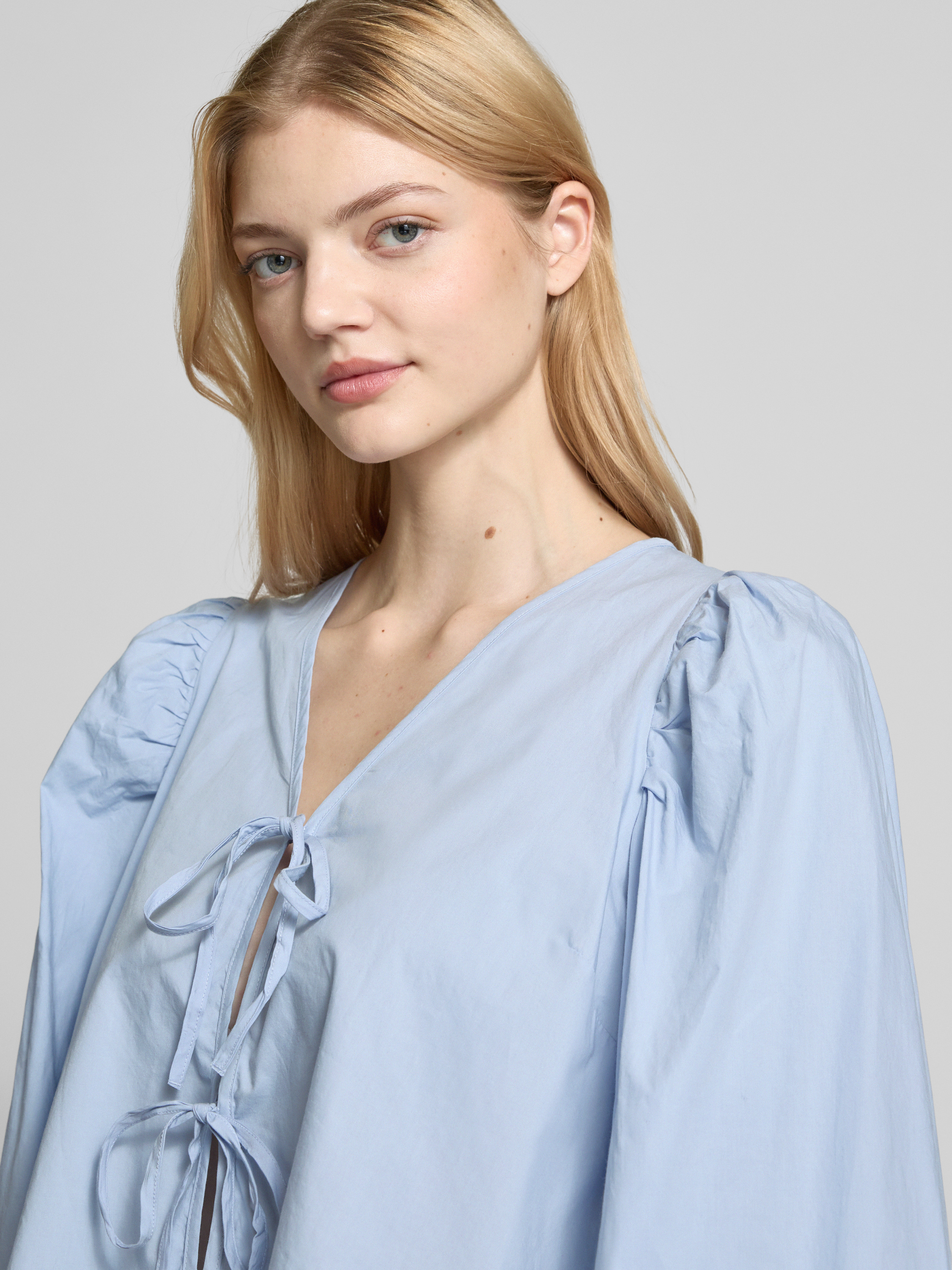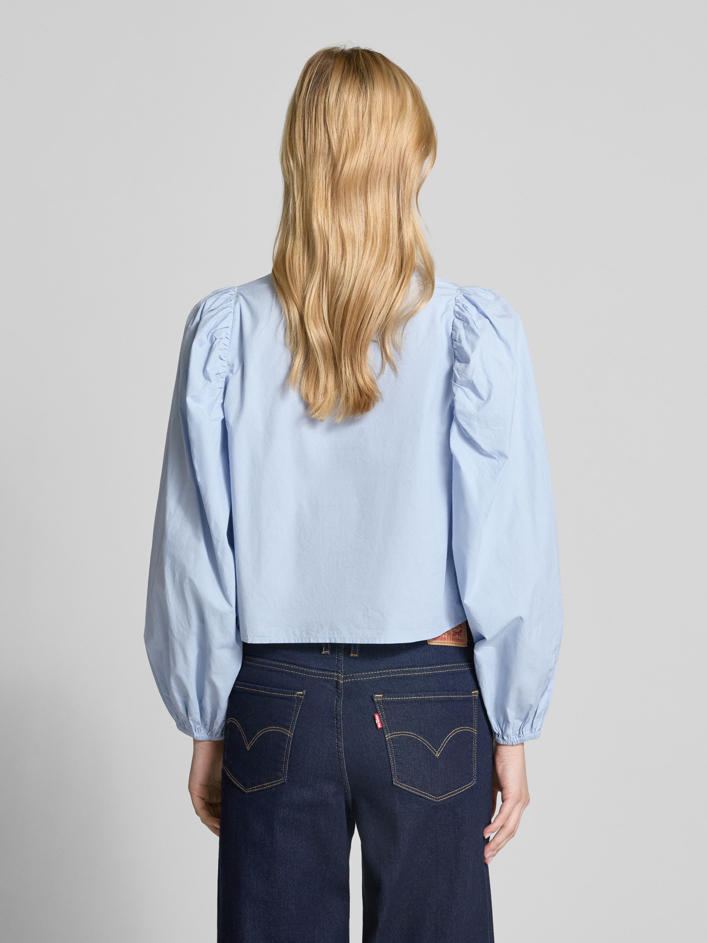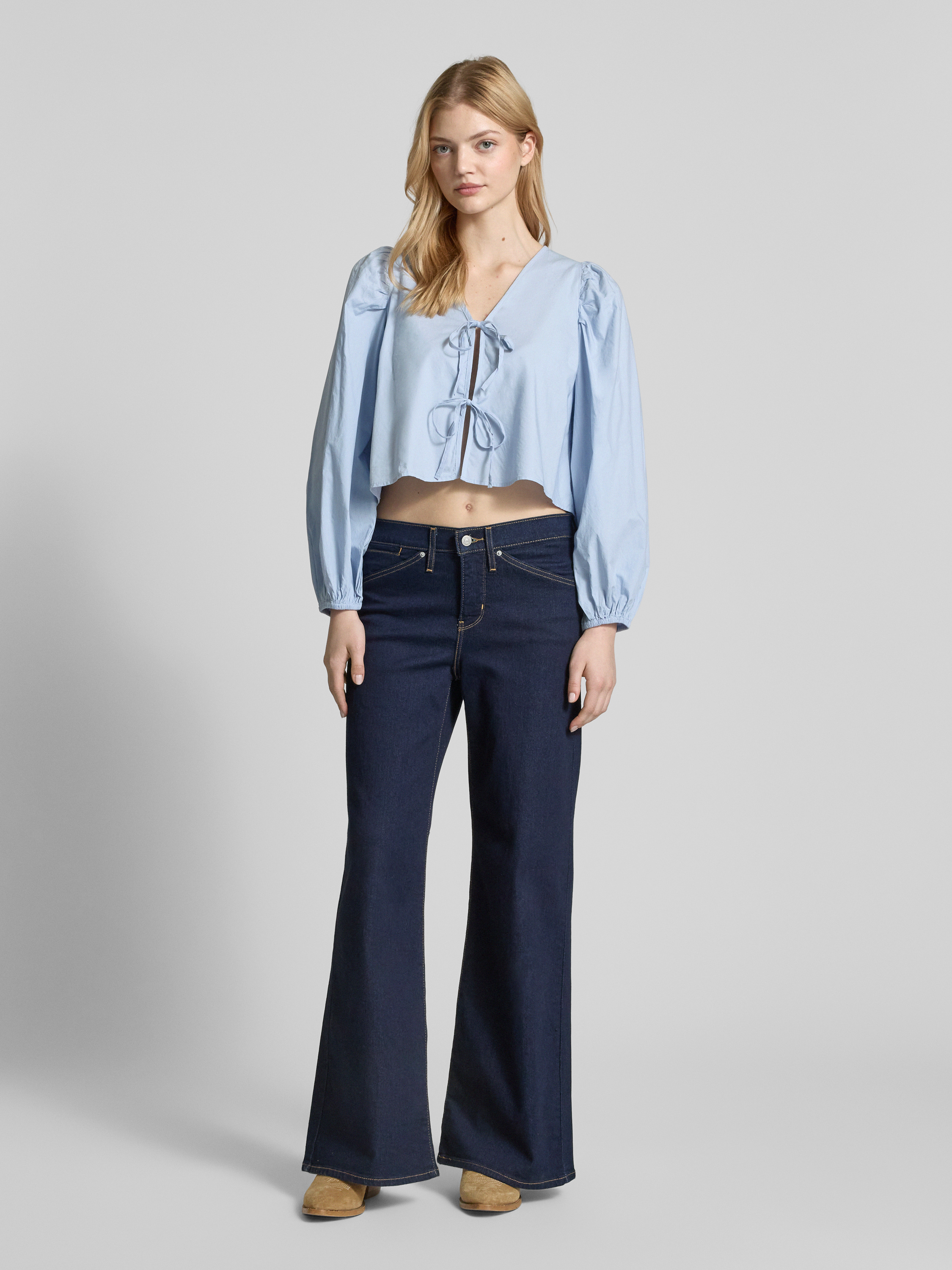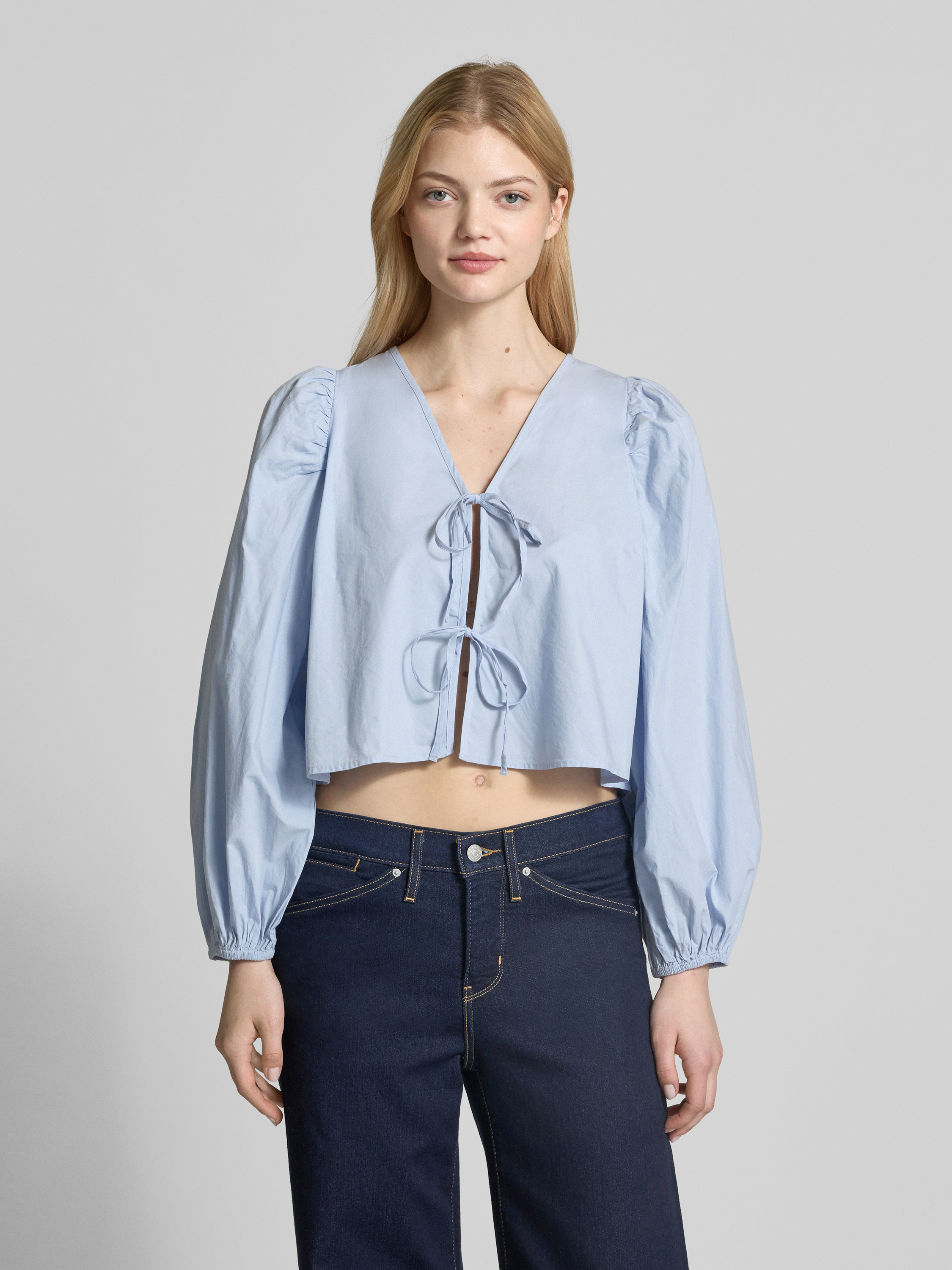 Gina TricotCropped Hemdbluse mit Schnürverschluss in hellblau