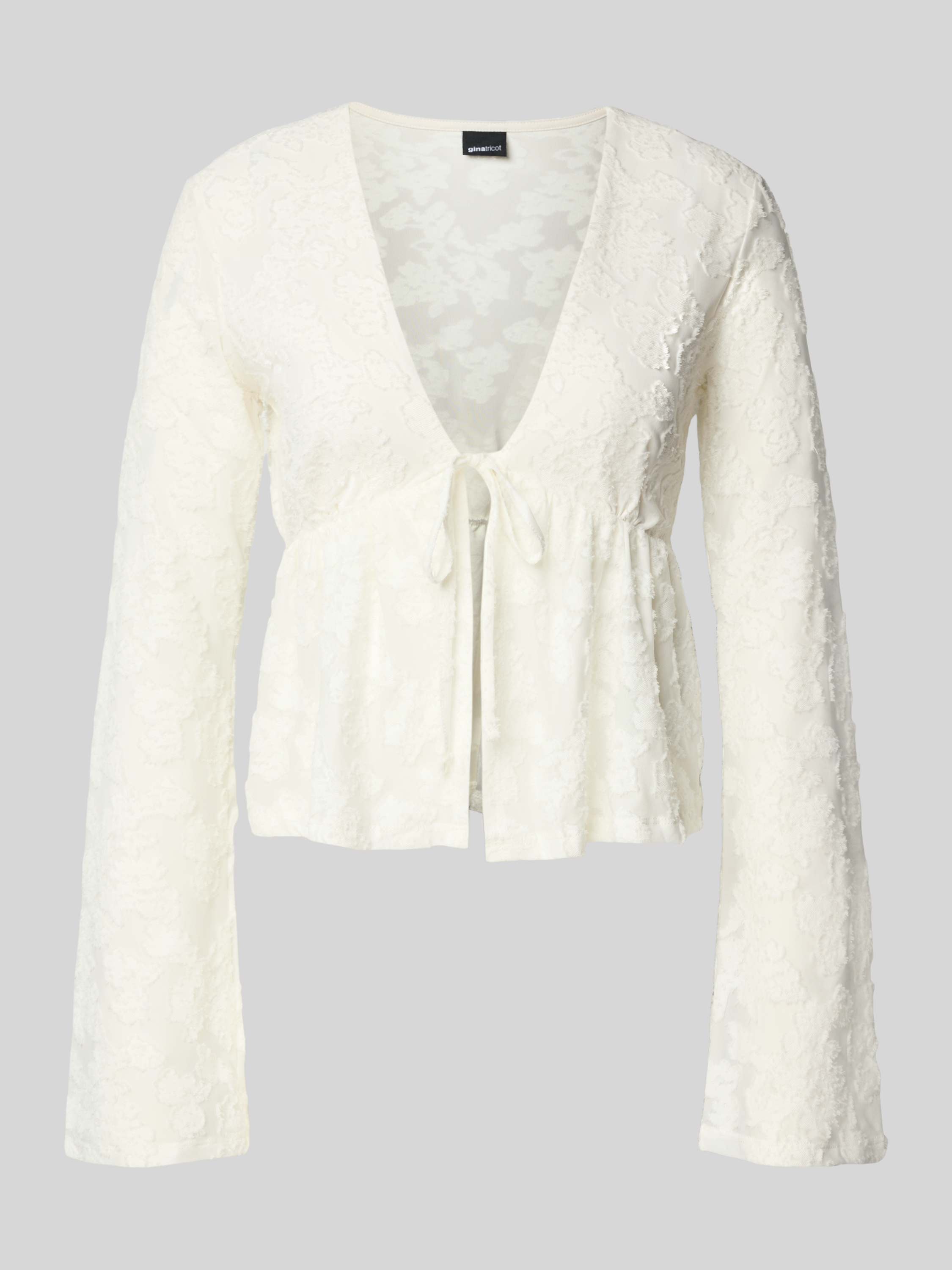 • Gina Tricot Langarmbluse mit Schnürverschluss Ecru