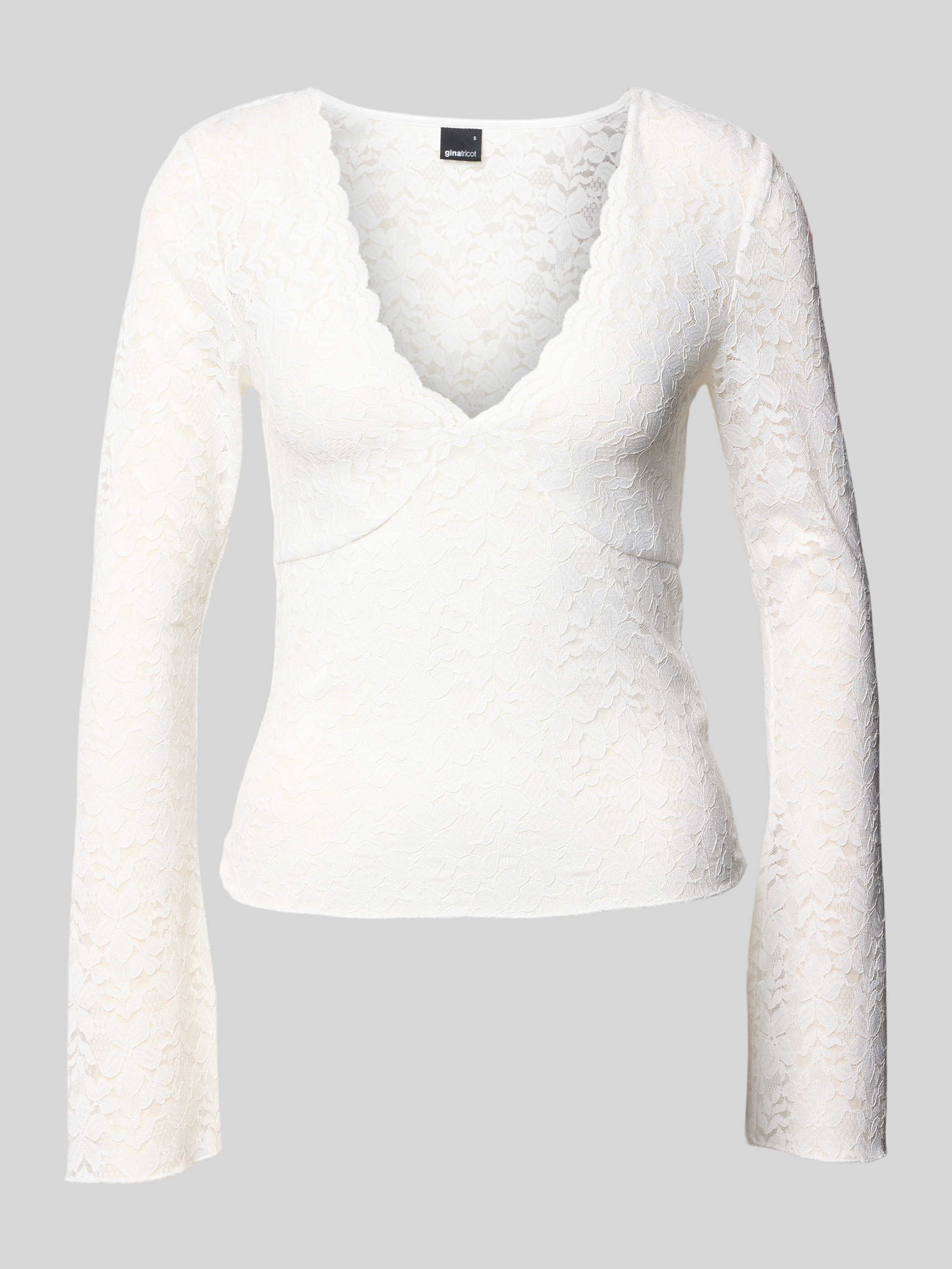 Gina TricotLongsleeve aus Spitze mit V-Ausschnitt in offwhite
