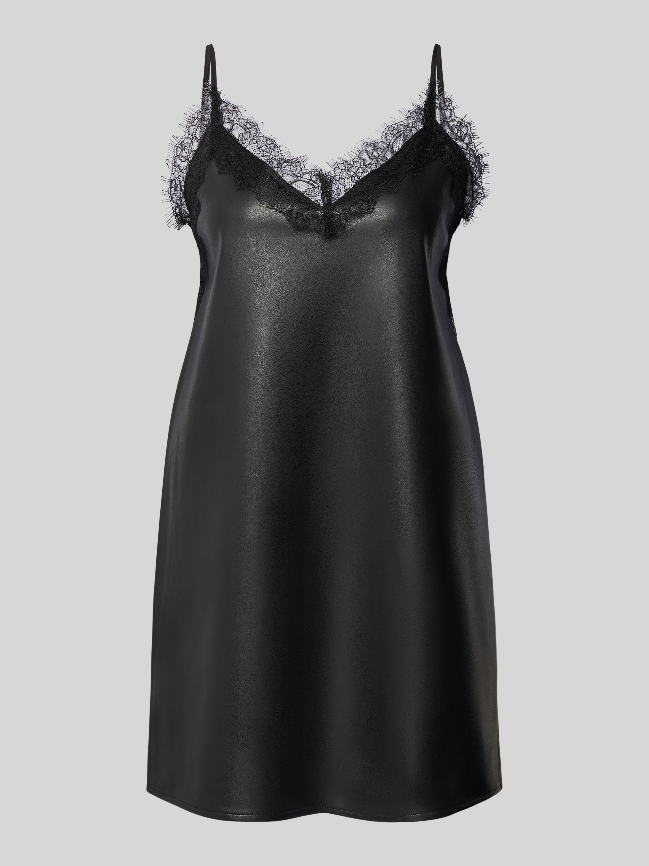 Das Minikleid von Gina Tricot fällt durch seine Leder-Optik und den feinen Spitzenbesatz angenehm ins Auge. Der Regular Fit sorgt für eine legere Passform, während längenverstellbare Spaghetti-Träger variable Tragemöglichkeiten eröffnen. So eignet sich das Kleid für unterschiedlichste Anlässe und individuelle Looks.