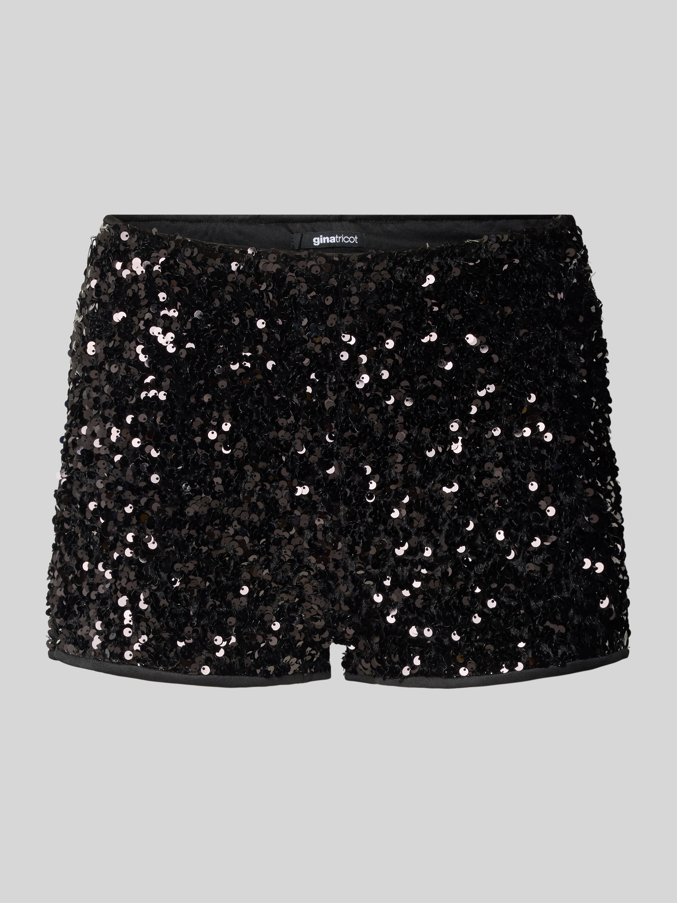 Die Shorts mit Pailletten Modell 'Sequin' von Gina Tricot kombiniert einen Material-Mix mit Stretch-Anteil, wodurch Bewegungsfreiheit ermöglicht wird. Dank des Regular Fit sitzt die Shorts angenehm und passt sich verschiedenen Anlässen flexibel an. Pailletten verleihen dem Modell einen abwechslungsreichen Akzent, ohne den Tragekomfort zu beeinflussen.