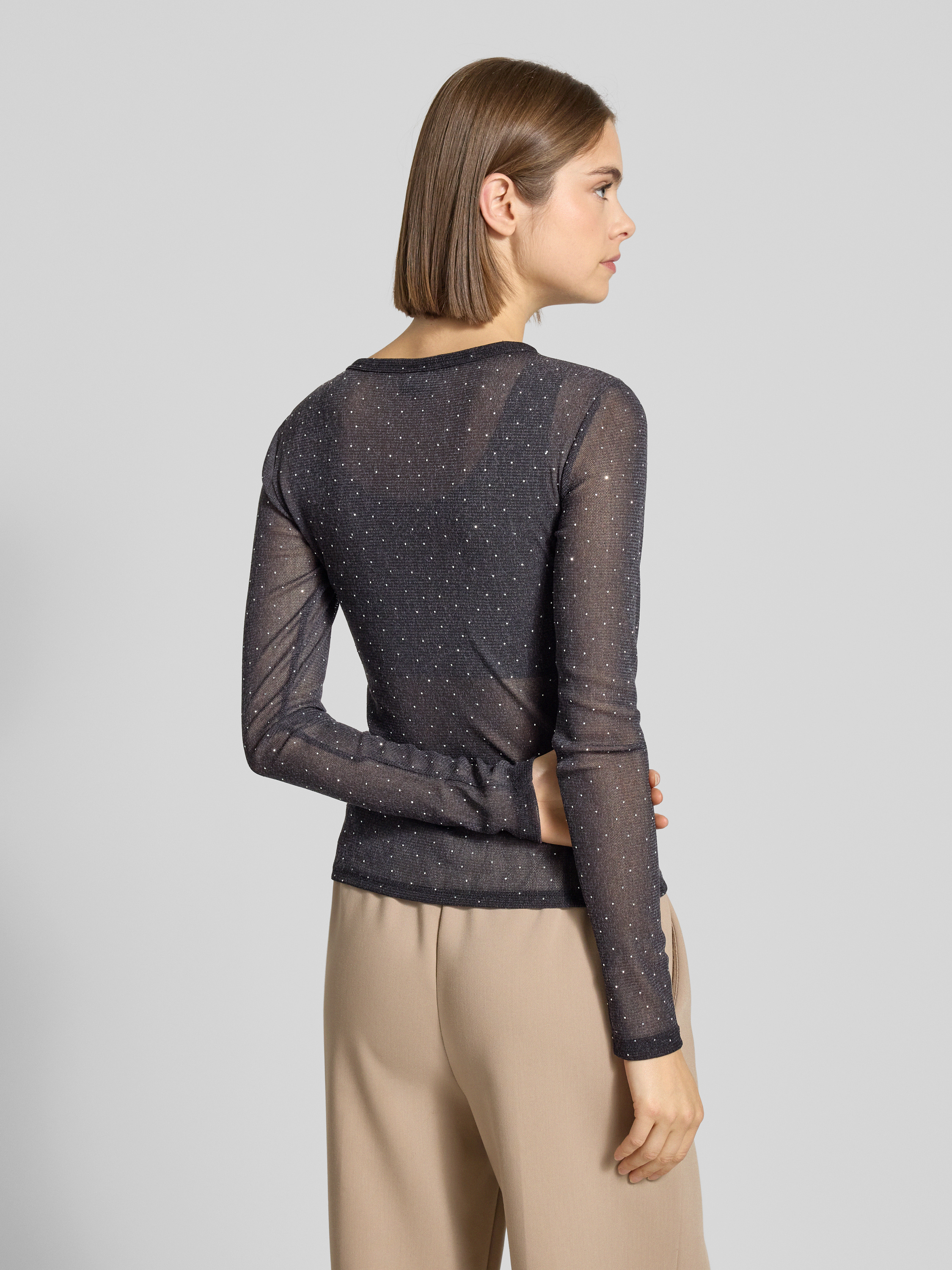 Das Damen Longsleeve von Gina Tricot zeigt sich in schmaler Passform und sorgt mit seinem semitransparenten Material-Mix für einen modernen Akzent. Dezente Strasssteine setzen feine Highlights, während der klassische Rundhalsausschnitt einen zeitlosen Rahmen schafft. Dadurch eignet sich das Oberteil vielseitig für unterschiedliche Looks.