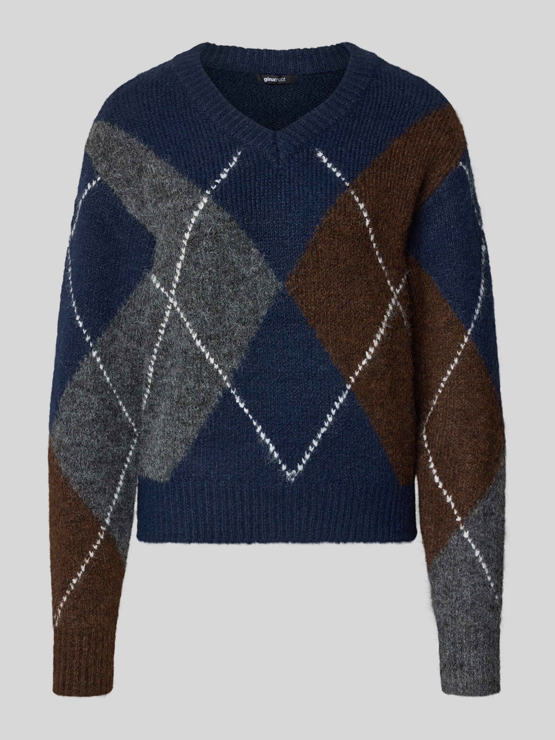 Gina TricotStrickpullover mit V-Ausschnitt Modell 'Argyle' in mittelgrau melange