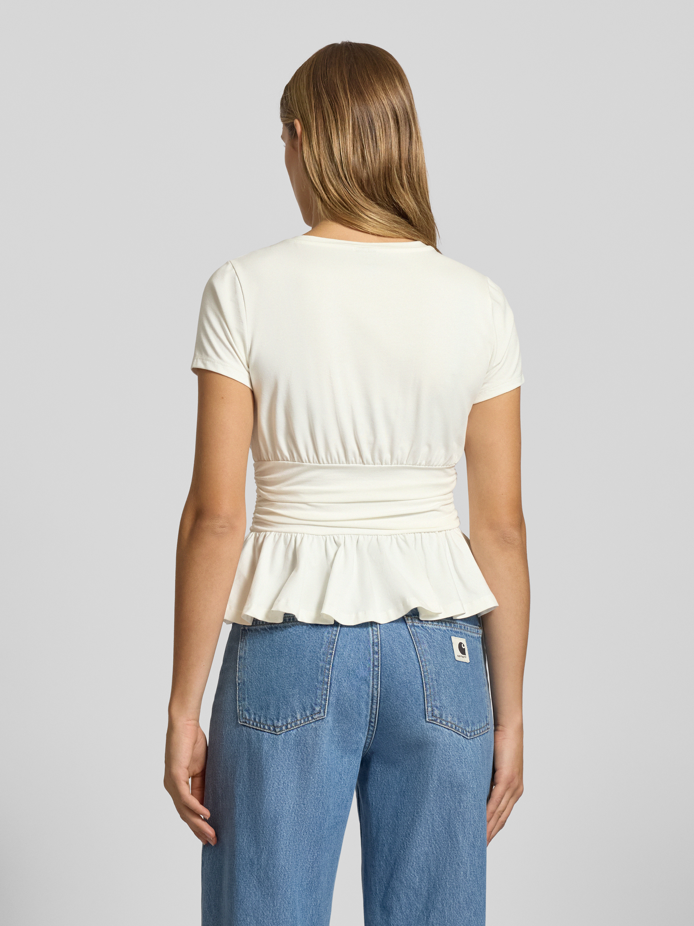 Gina TricotT-Shirt mit geripptem Rundhalsausschnitt in offwhite