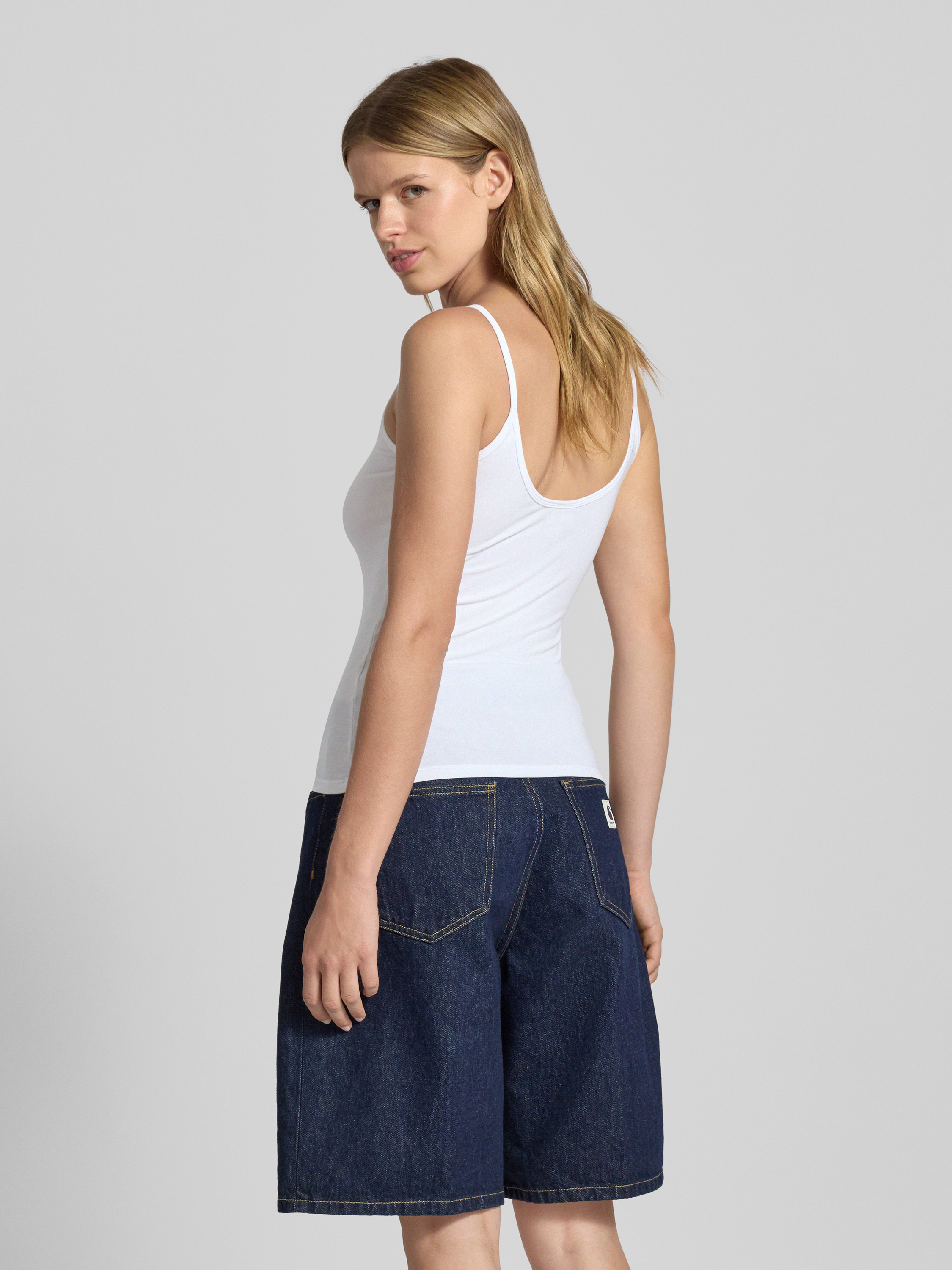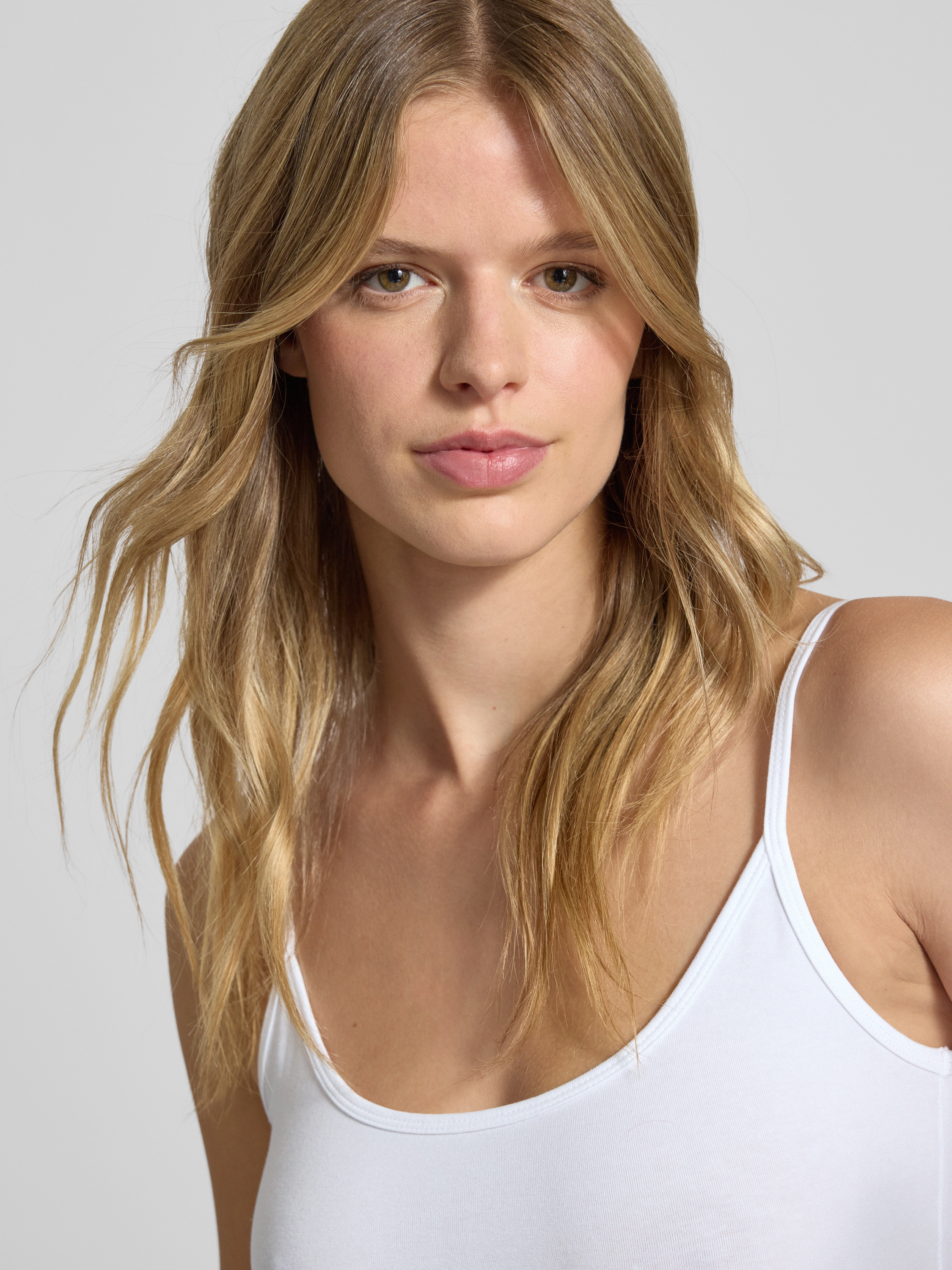 Das Trägertop von Gina Tricot kombiniert einen angenehmen Baumwoll-Mix mit Modal-Anteil, der für ein angenehmes Tragegefühl sorgt. Der Slim Fit mit Spaghettiträgern und Rundhalsausschnitt eignet sich hervorragend für warme Tage und passt sich mühelos verschiedenen Outfits an. Ideal für vielseitige, sommerliche Looks.