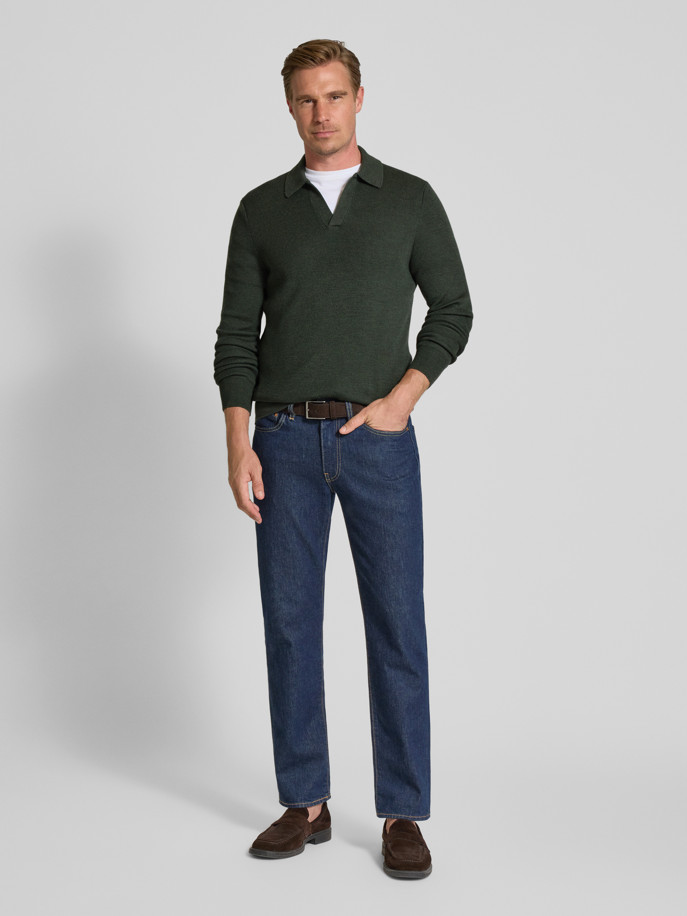 Der Herren Strickpullover von GRAN SASSO zeichnet sich durch reine Schurwolle aus, wodurch ein angenehmes Hautgefühl entsteht und man sich den ganzen Tag wohlfühlt. Dank Regular Fit sitzt der Pullover weder zu eng noch zu weit und lässt sich vielseitig kombinieren. Der Umlegekragen und der V-Ausschnitt unterstreichen die lässige Note, sodass man ihn sowohl im Alltag als auch zu besonderen Anlässen tragen kann.