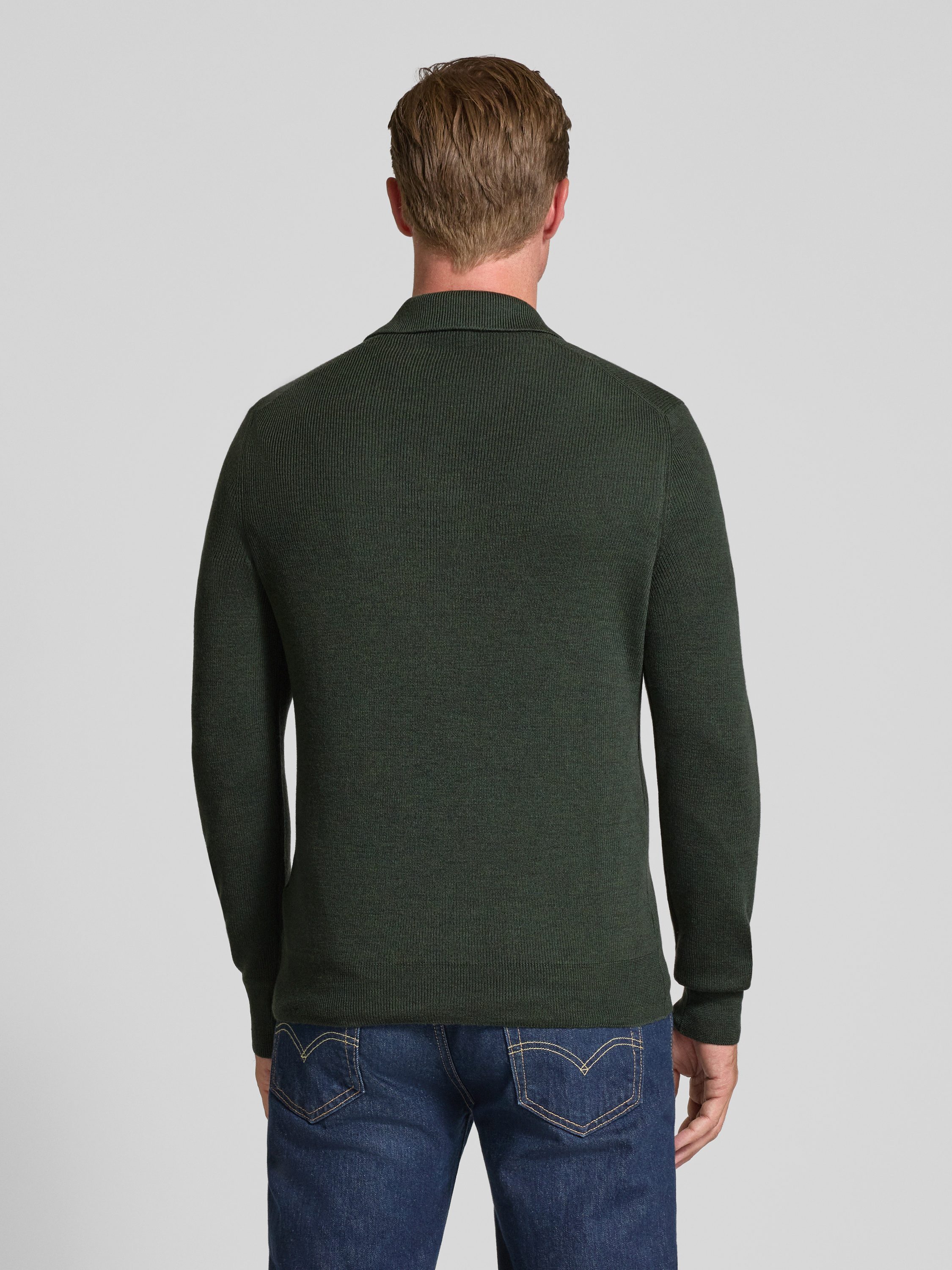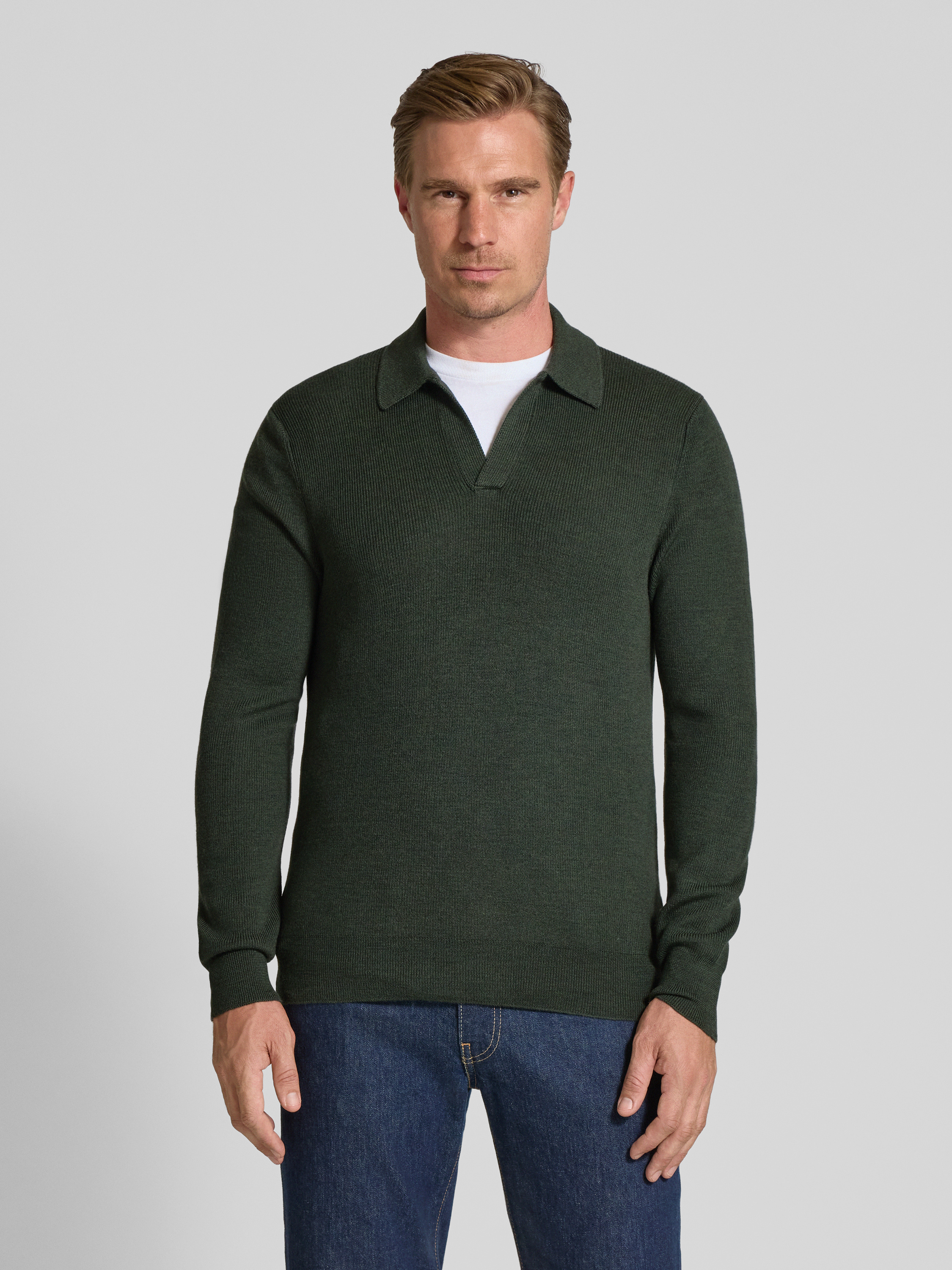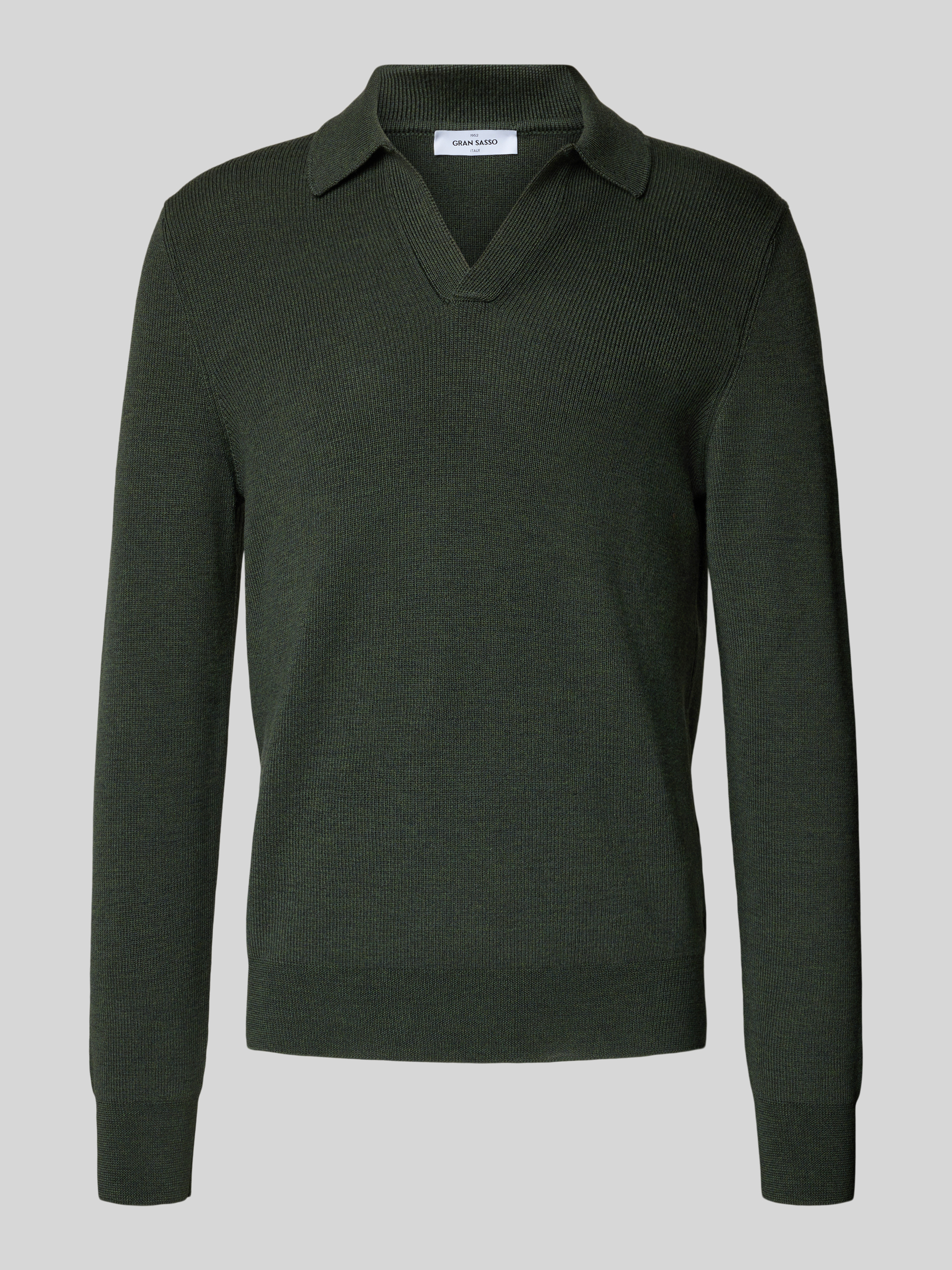 GRAN SASSOStrickpullover aus Schurwolle mit Umlegekragen und V-Ausschnitt in oliv