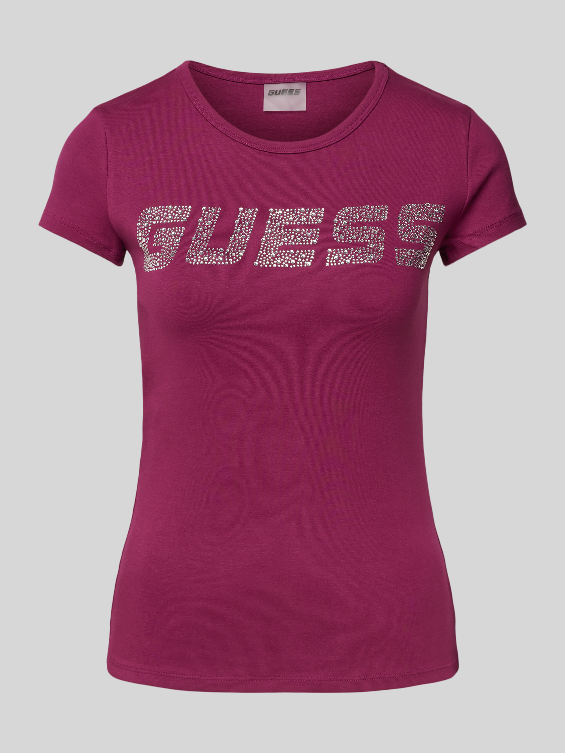 Guess ActivewearT-Shirt mit Strasssteinbesatz Modell 'KIARA' in fuchsia