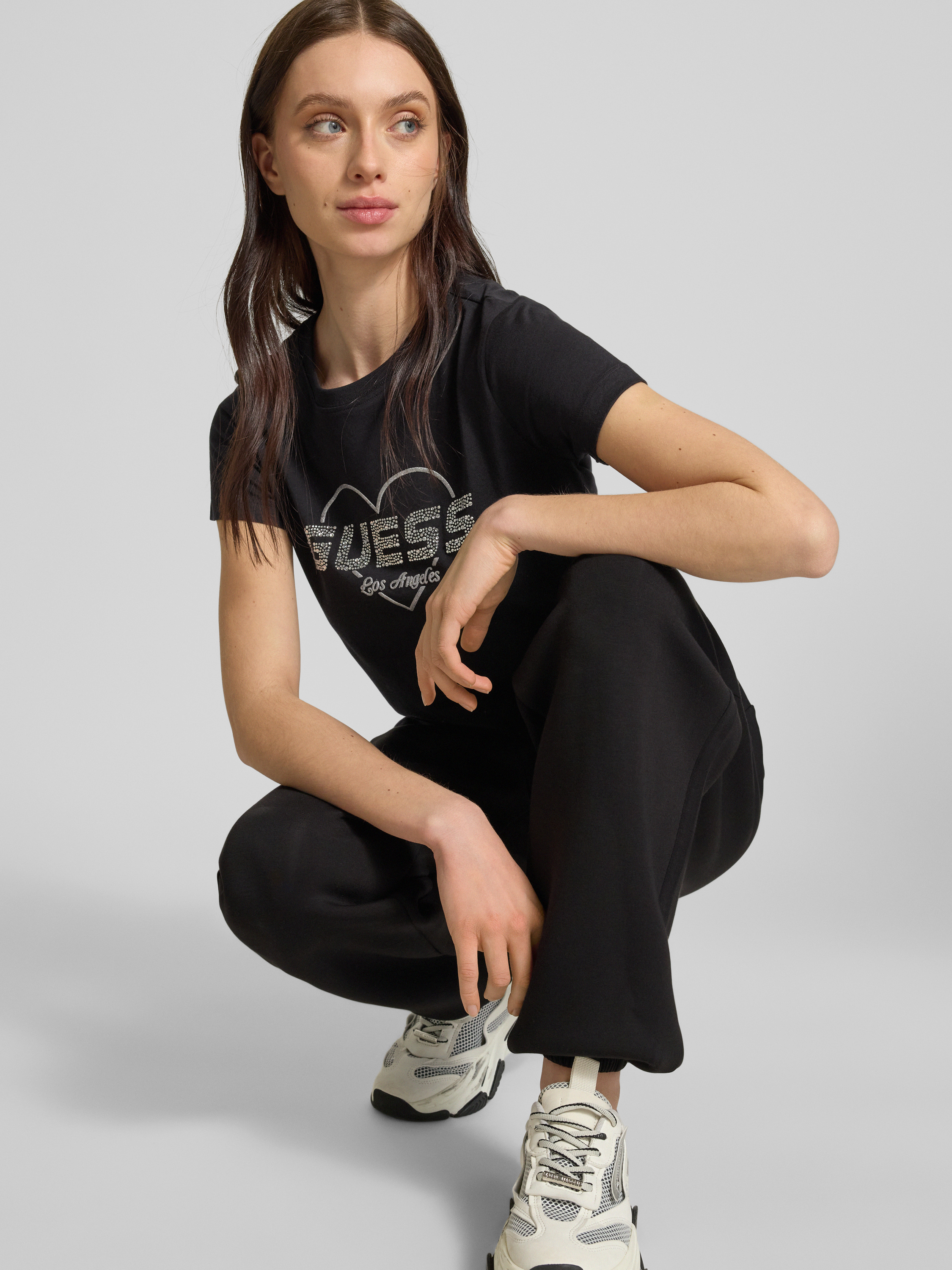 Guess ActivewearT-Shirt mit Strasssteinbesatz Modell 'NARCISO' in black