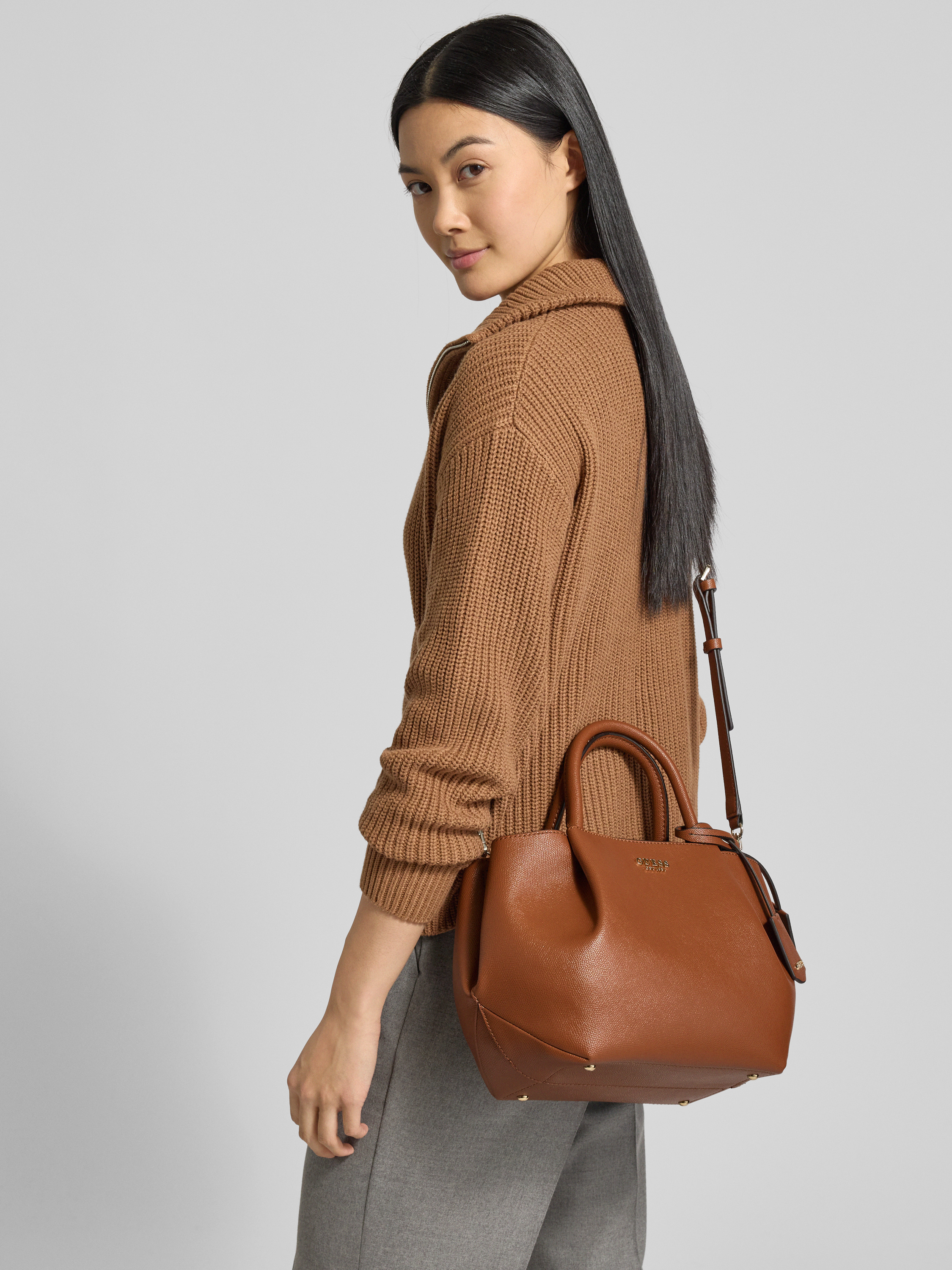 Die Handtasche Amorette von Guess verbindet ein geteiltes Hauptfach mit übersichtlicher Innenaufteilung, sodass sich persönliche Gegenstände ordentlich verstauen lassen. Schmale, abnehmbare Schulterriemen bieten Flexibilität im Alltag und sorgen für angenehmen Tragekomfort. Die dezente Logo-Applikation verleiht dem Modell eine moderne Note, die vielseitig kombinierbar ist.