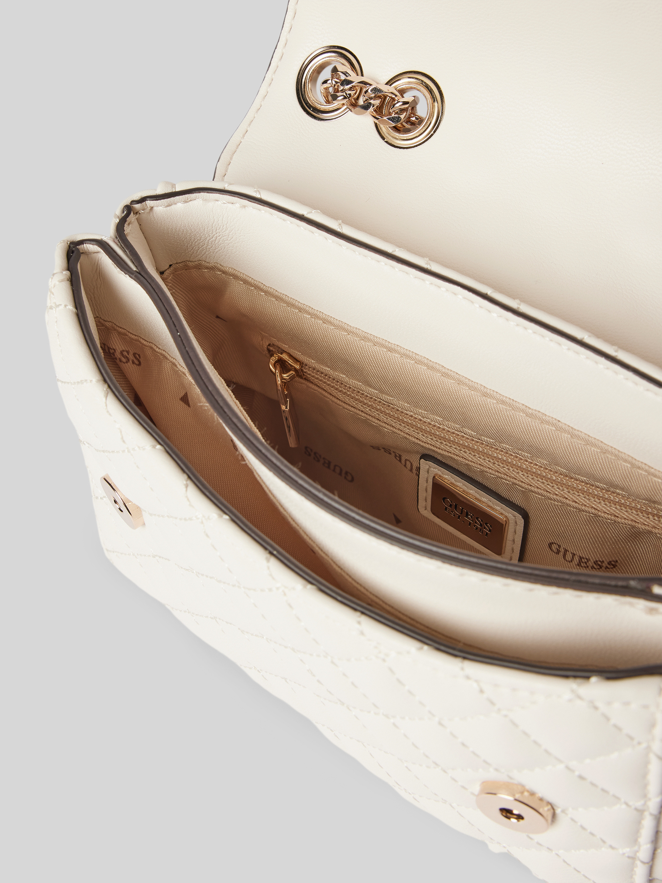 GuessHandtasche mit Steppnähten Modell 'EVERLEE' in ecru