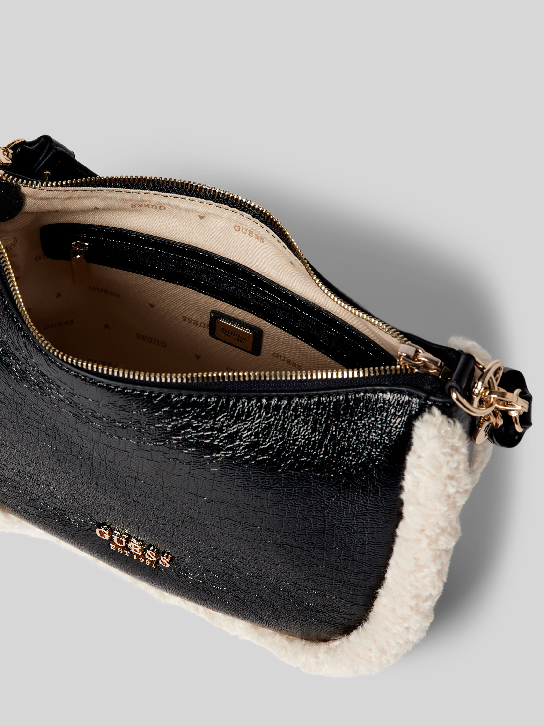 Die elegante Hobo Bag 'DAVIKA' von GUESS kombiniert stilvolle Leder-Optik mit einem weichen Kunstfell-Besatz. Dank des abnehmbaren Schulterriemens lässt sich die Tasche flexibel tragen, während das geräumige Hauptfach ausreichend Platz für persönliche Gegenstände bietet. Ein perfekter Begleiter für vielseitige Anlässe.