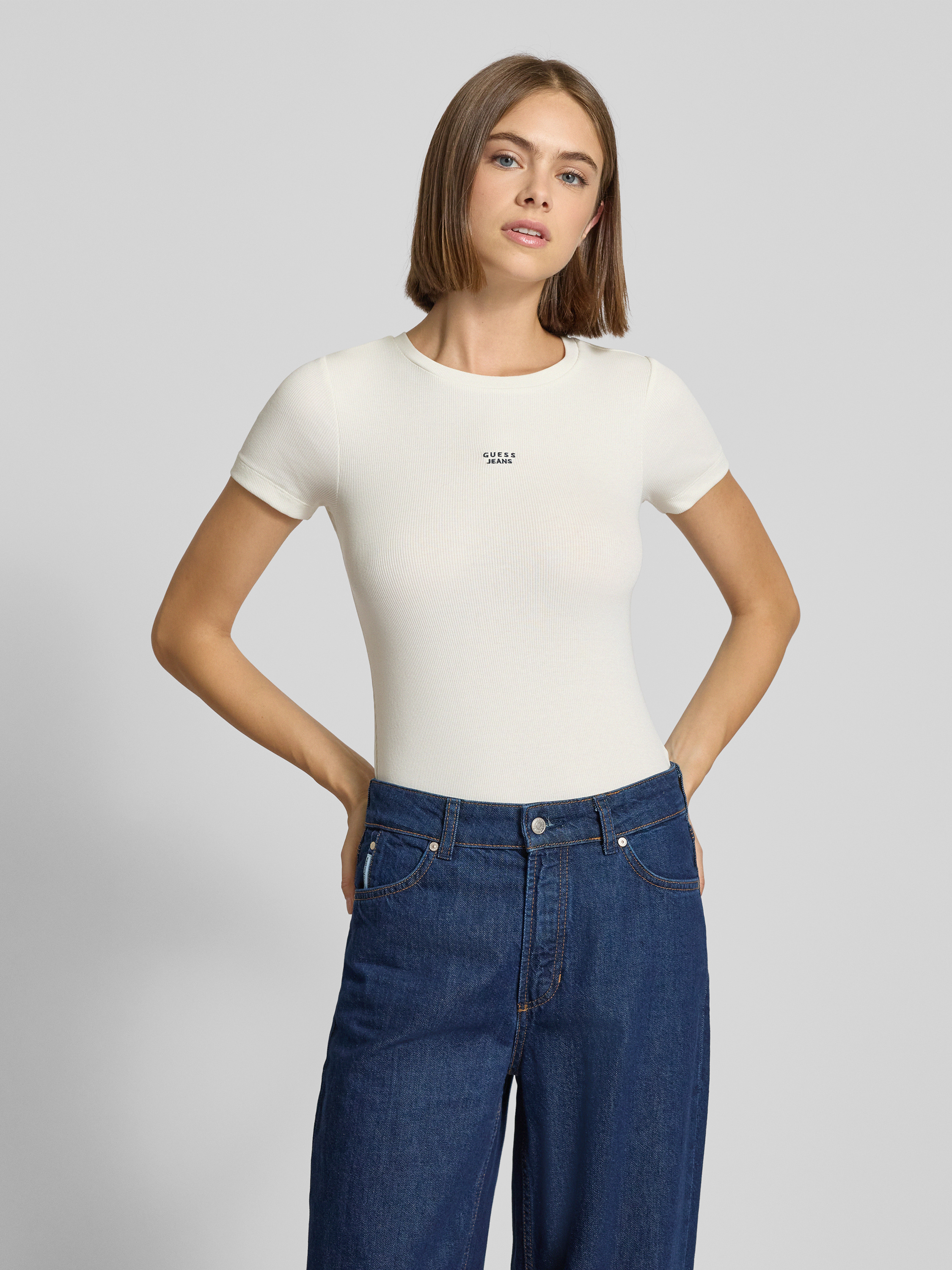 • Guess Jeans T-Shirt mit Label-Stitching Ecru