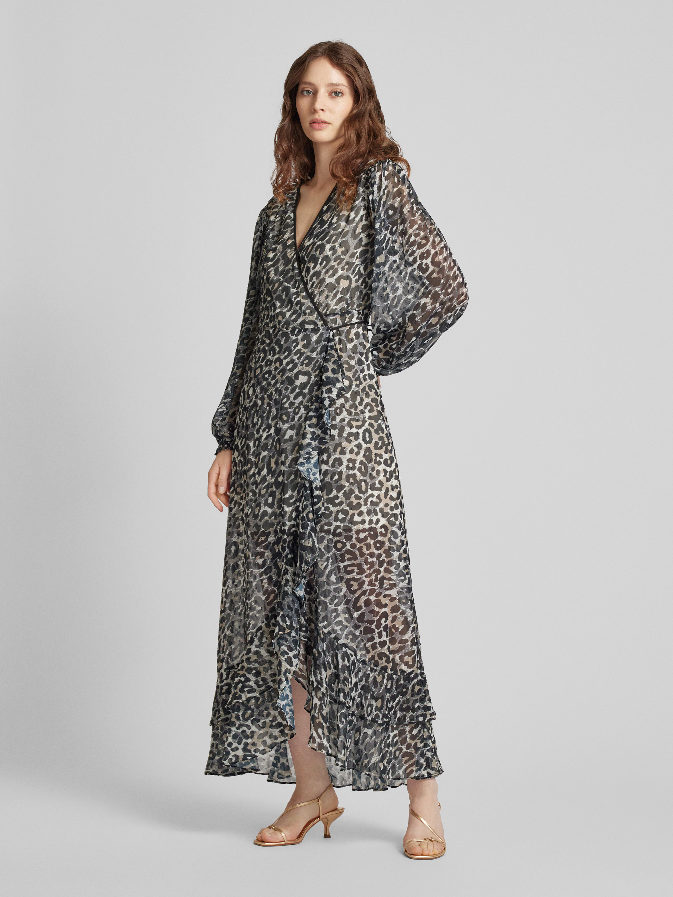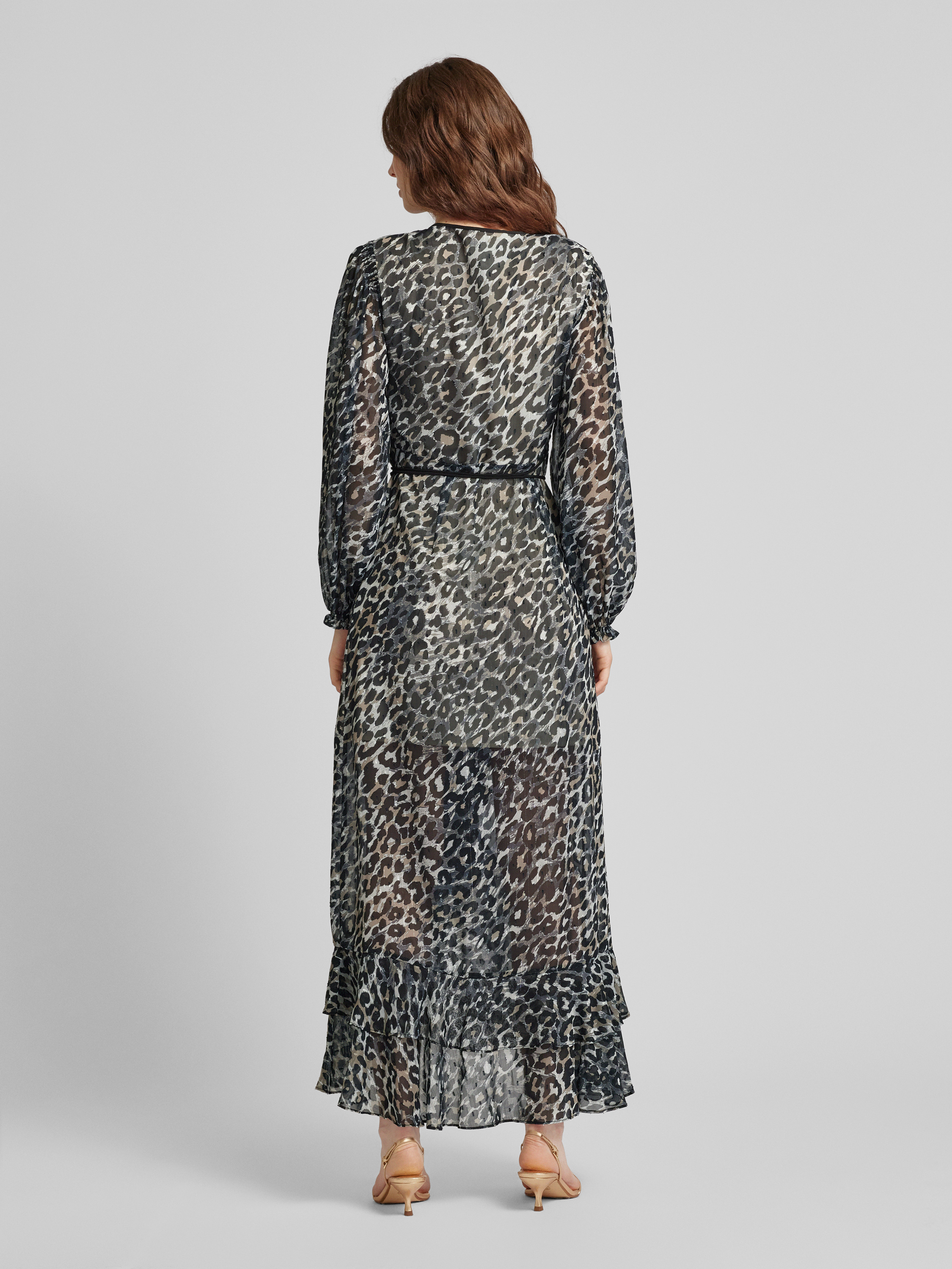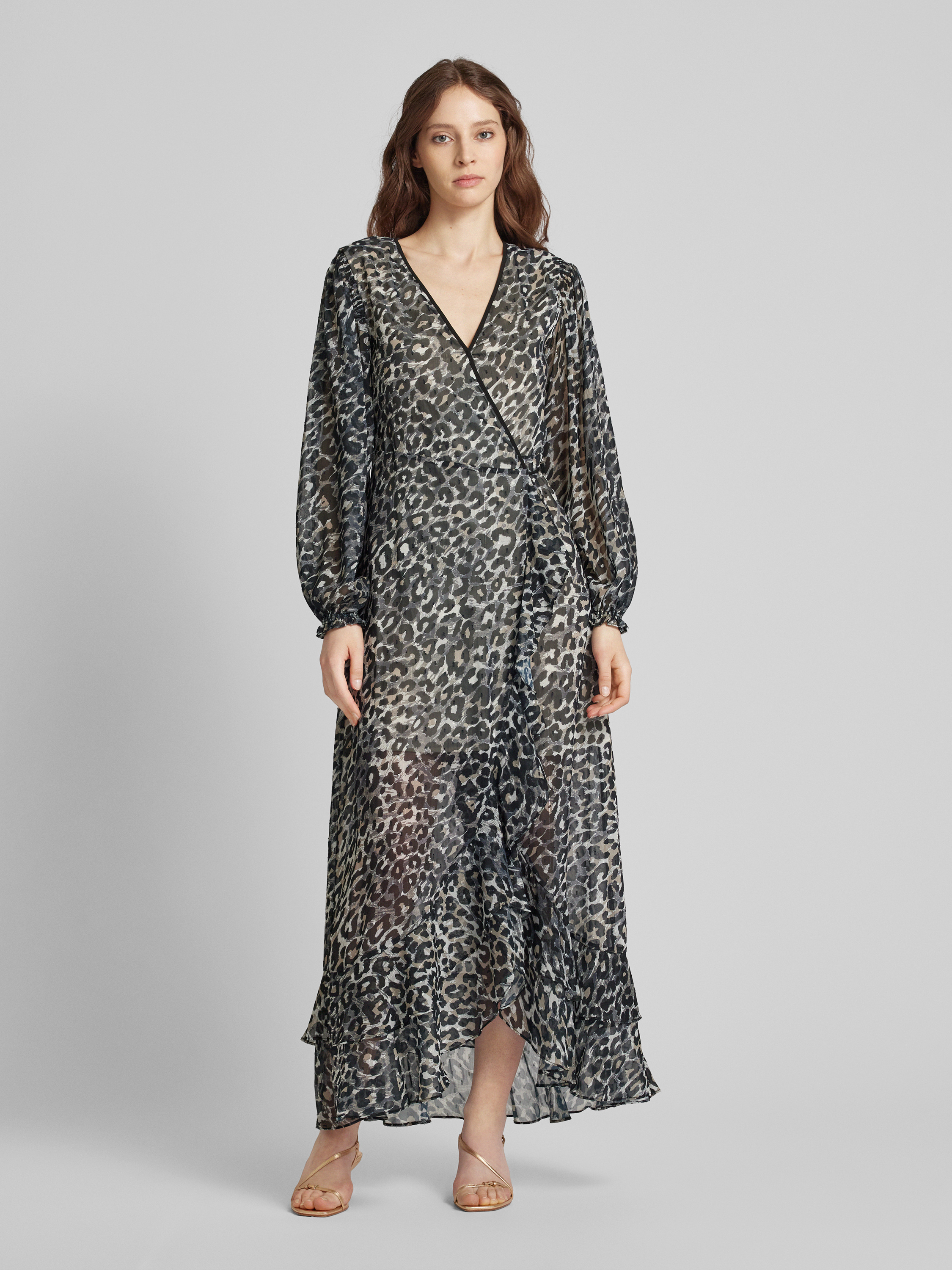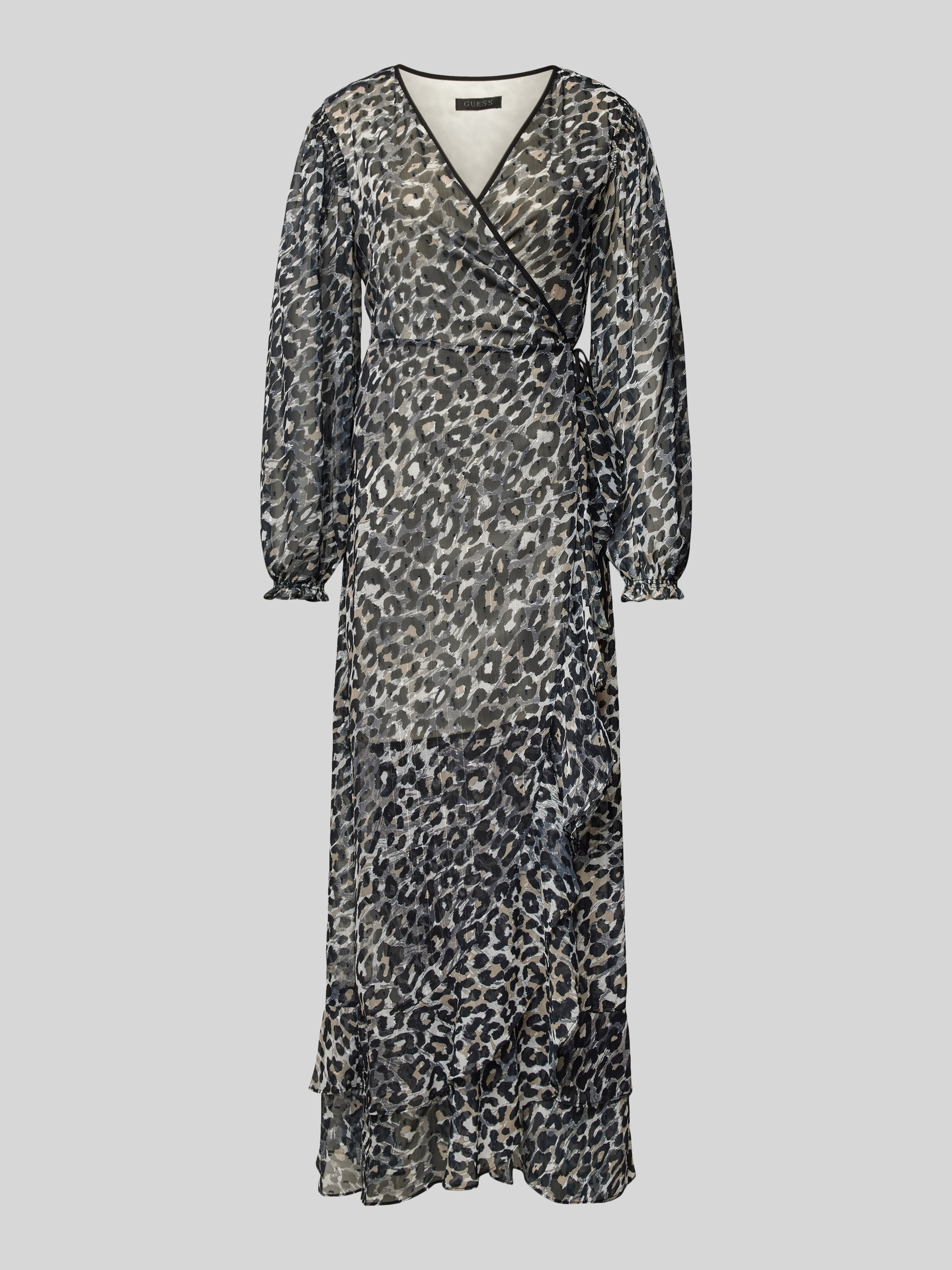 Das Maxikleid 'FELISIA' von GUESS besticht durch seinen fließenden Chiffon-Stoff und den geraden Schnitt, der eine angenehme Passform ermöglicht. Die Wickel-Optik in Kombination mit dem markanten Animal-Print verleiht dem Kleid einen modernen Touch. Ballonärmel und ein V-Ausschnitt runden das Design stilvoll ab.