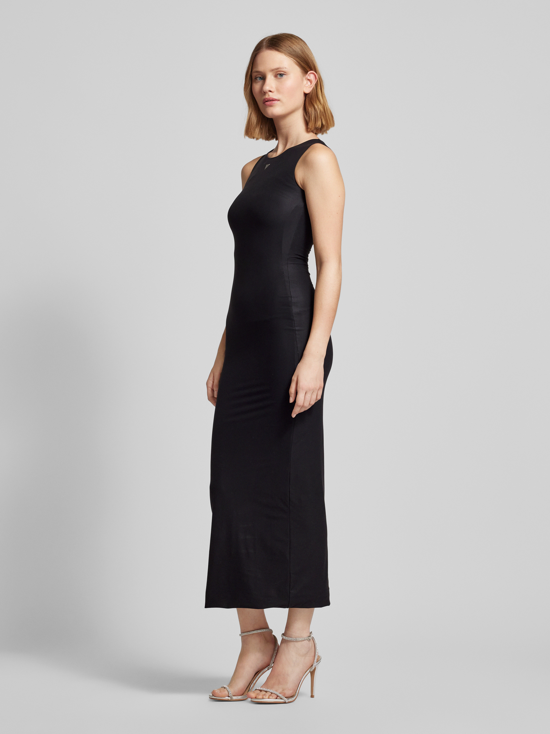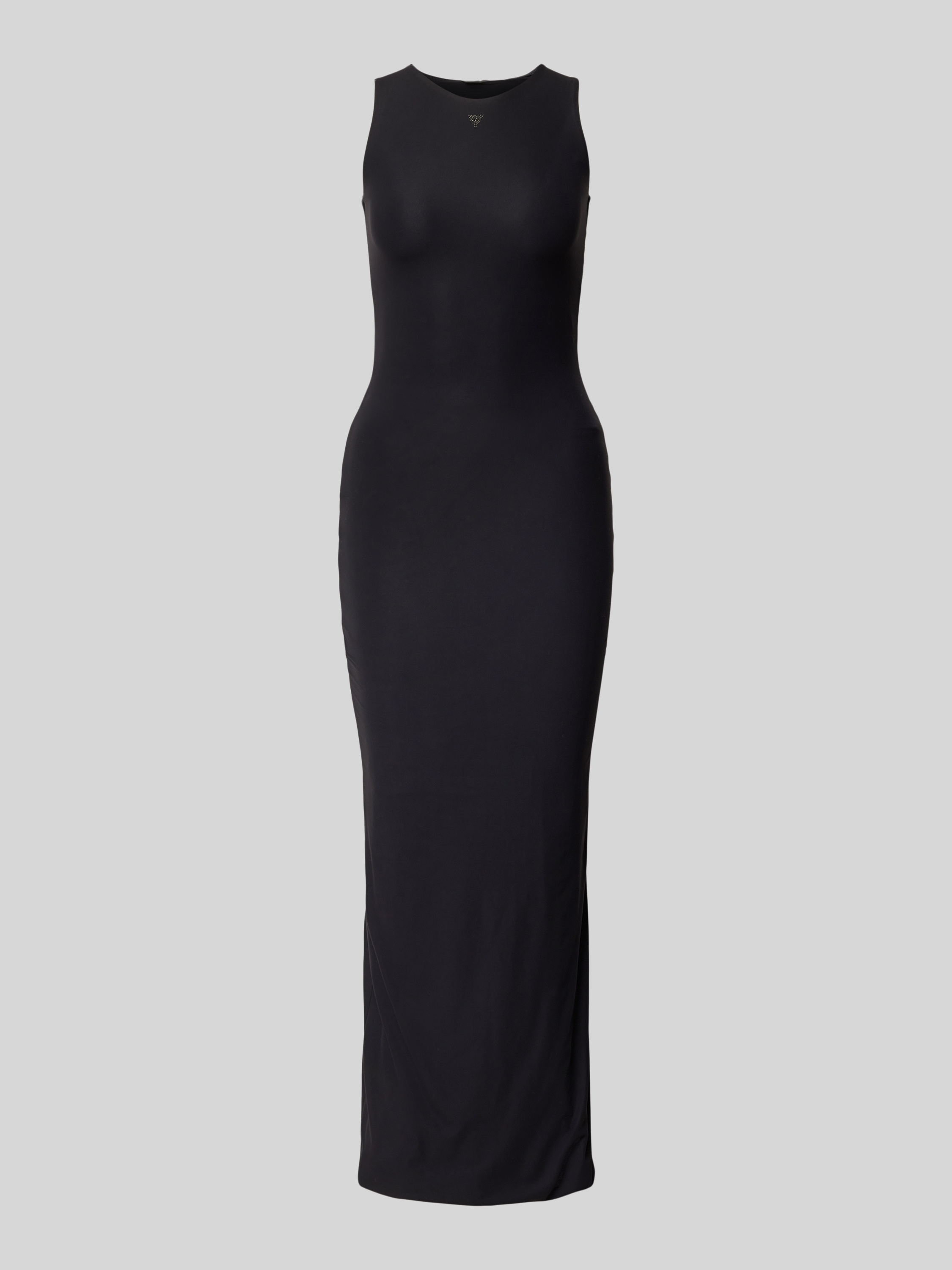 Das Maxikleid 'KIM' von GUESS kombiniert einen schmeichelnden, eng anliegenden Schnitt mit einem eleganten Rundhalsausschnitt, was eine ansprechende Silhouette schafft. Der Material-Mix mit Stretch-Anteil sorgt für angenehmen Tragekomfort und Bewegungsfreiheit. Ein dezentes Logo-Detail verleiht dem Kleid eine besondere Note.