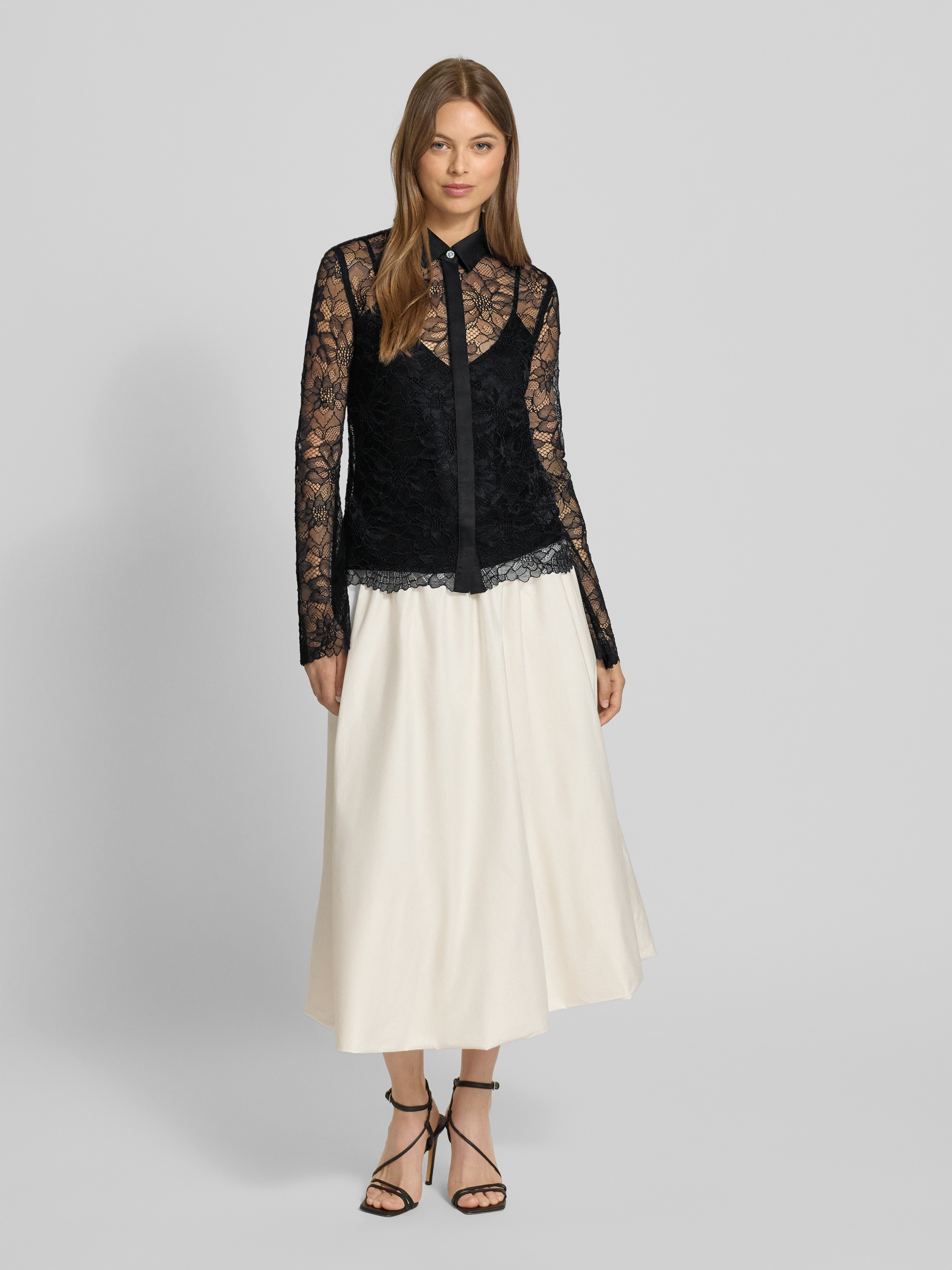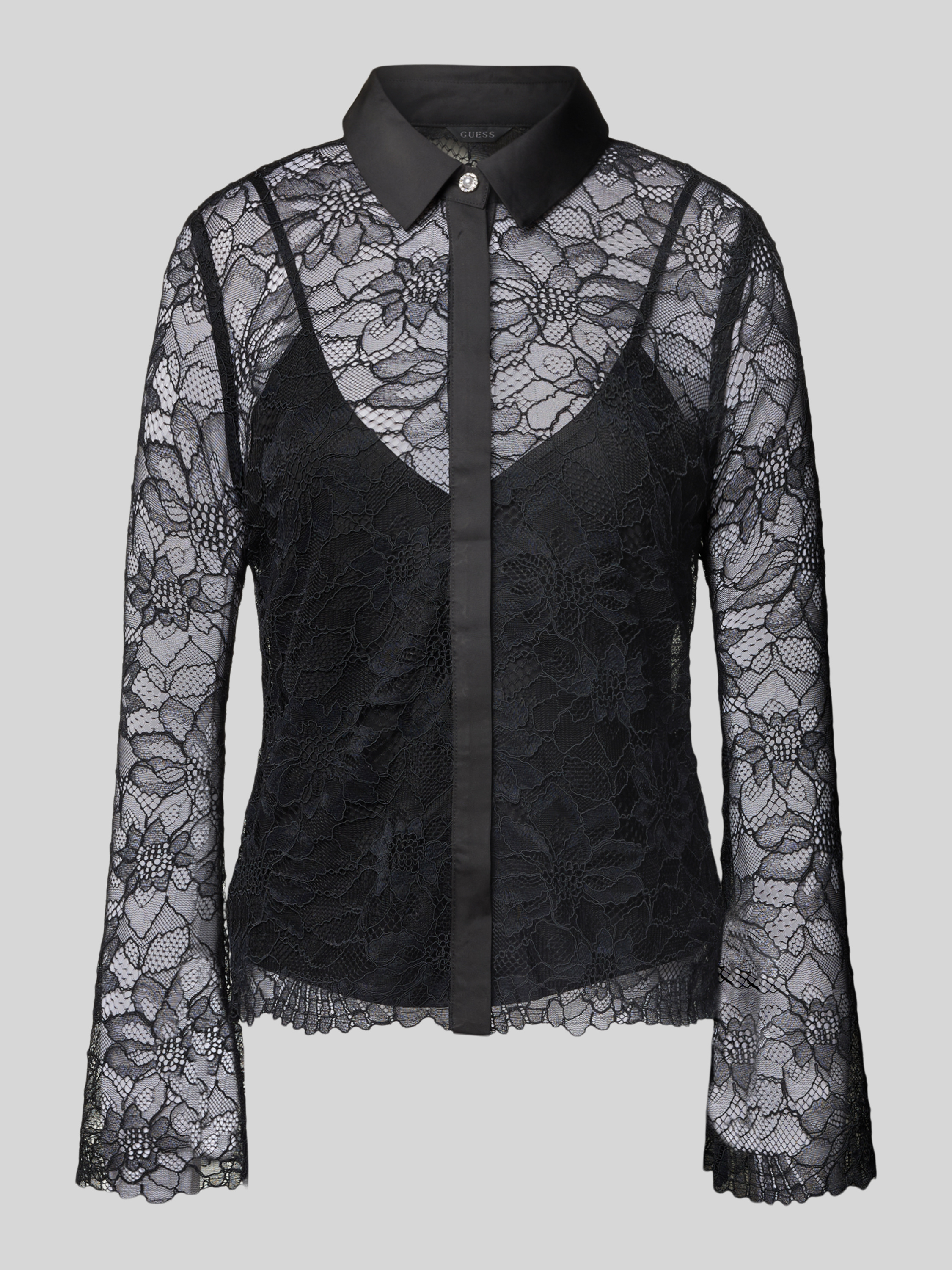 Die Regular Fit Bluse im 2-in-1-Look von Guess kombiniert einen eleganten Material-Mix mit zarter Spitze, was sie zu einer vielseitigen Wahl für unterschiedliche Anlässe macht. Der Umlegekragen und die verdeckte Knopfleiste sorgen für ein gepflegtes Erscheinungsbild. Dank des Stretch-Anteils bietet sie angenehmen Tragekomfort.
