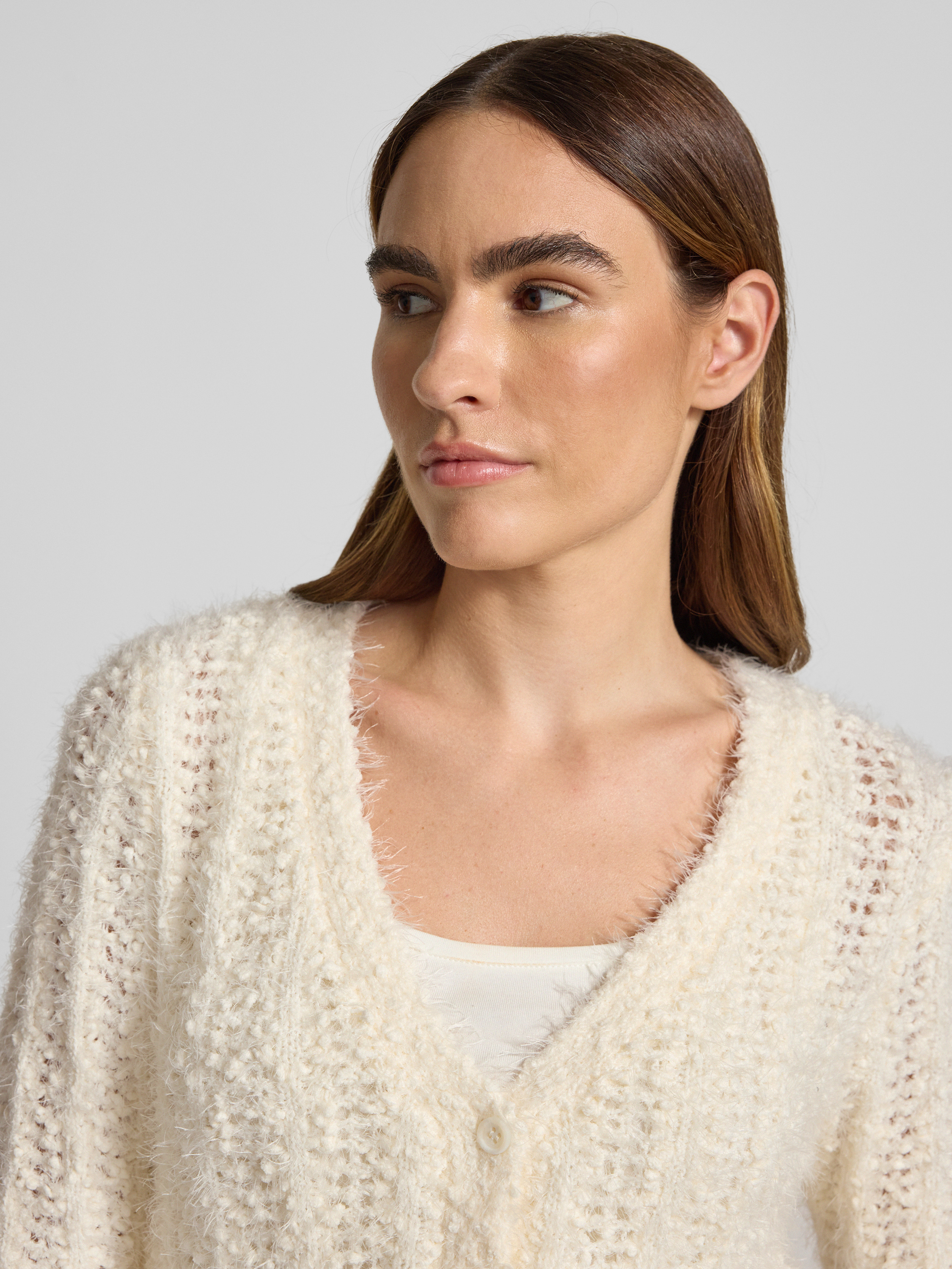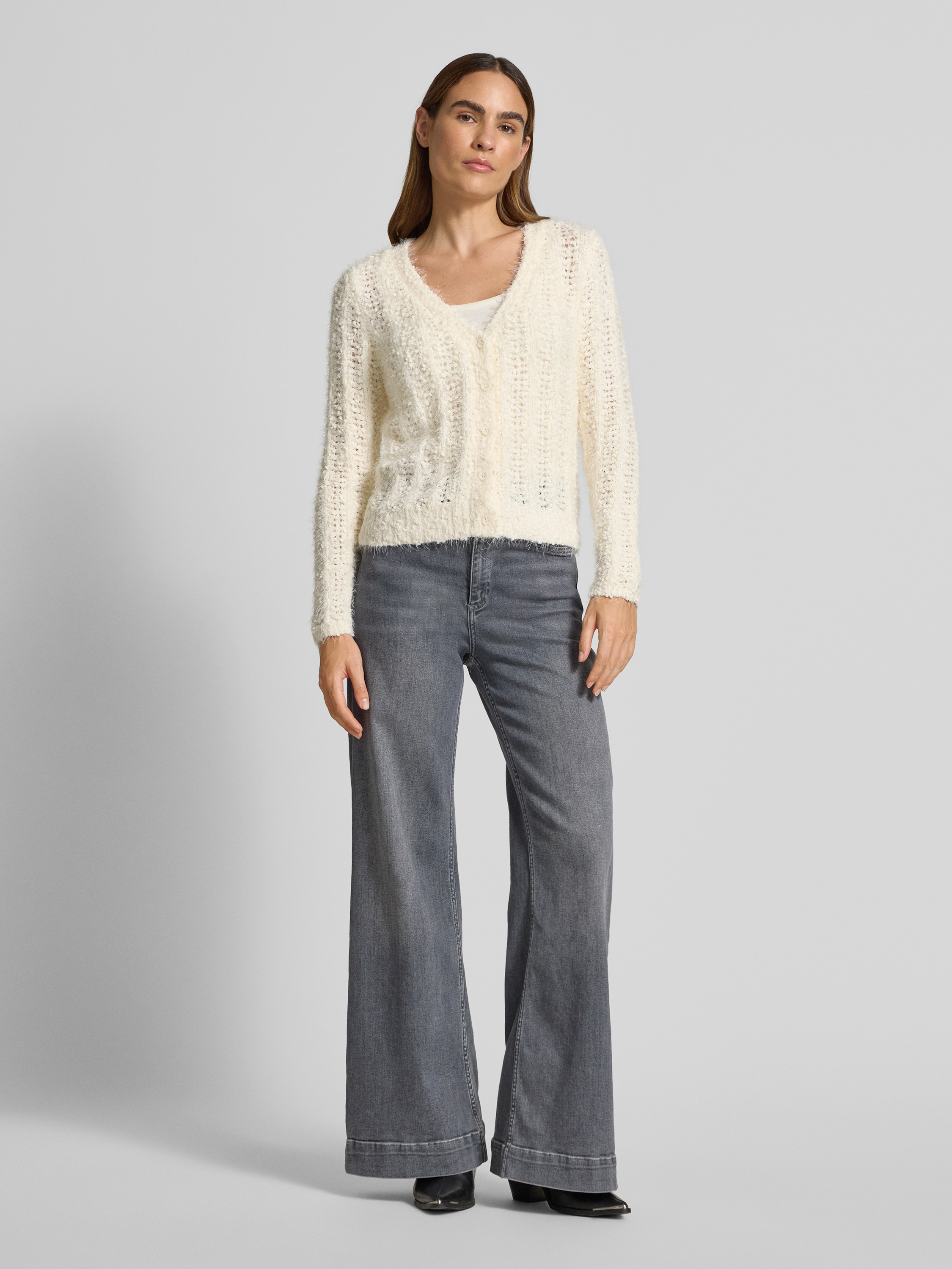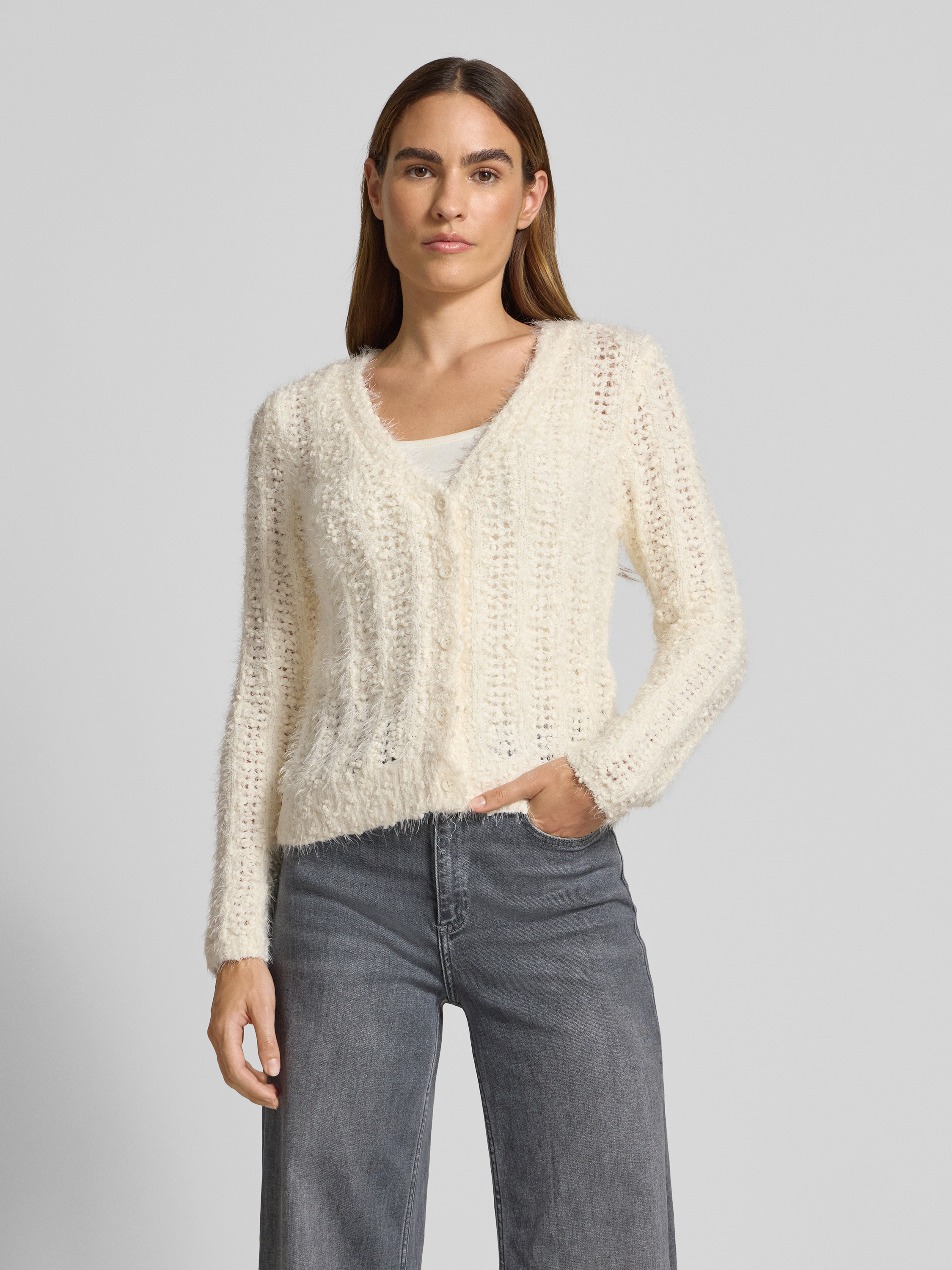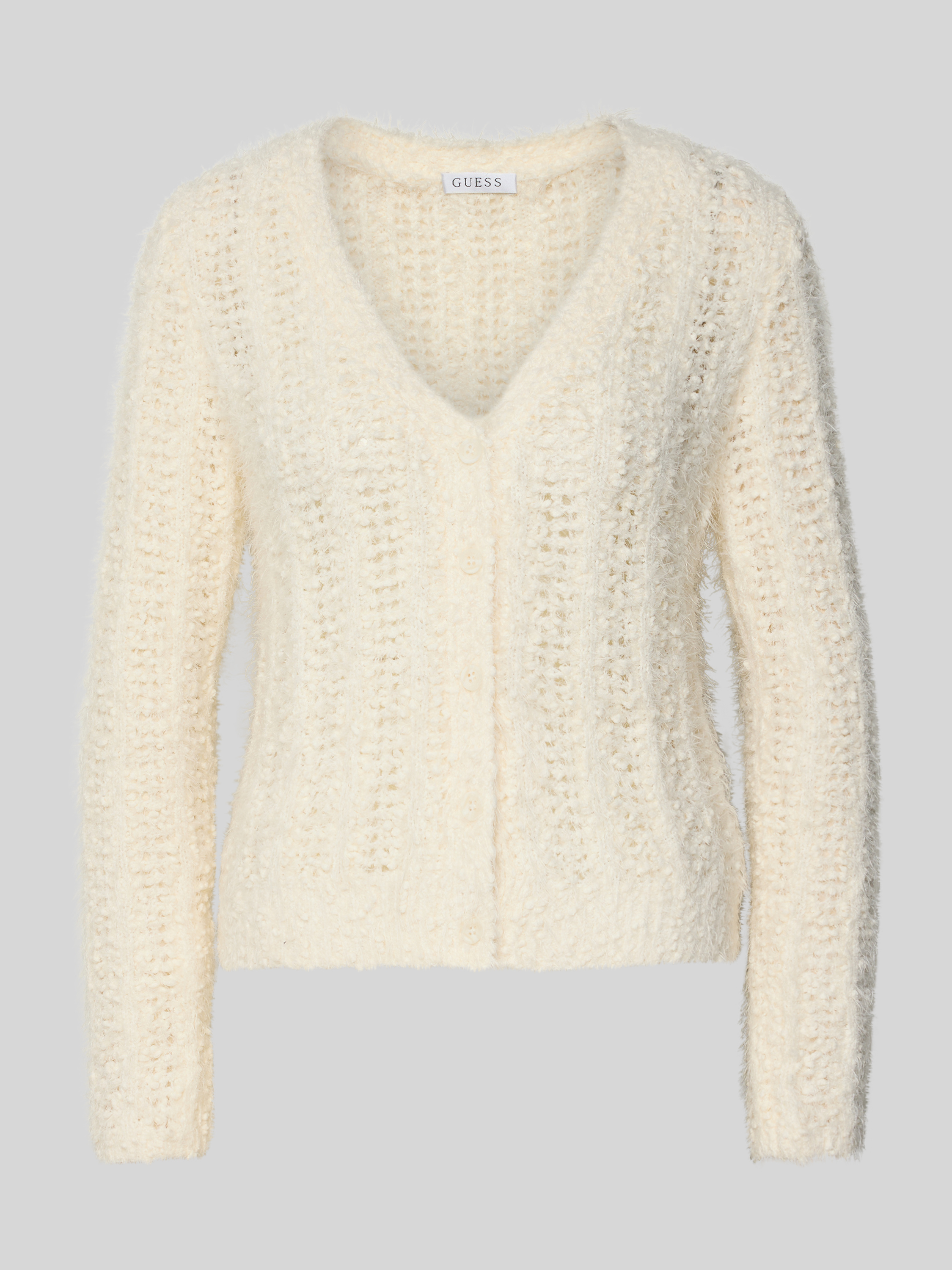 Die Strickjacke von Guess im Modell 'BEA' überzeugt durch ihr fein gearbeitetes Lochmuster und den angenehm geraden Schnitt, der sich vielseitig kombinieren lässt. Durch den V-Ausschnitt entsteht eine lässige Silhouette, die Bewegungsfreiheit und Komfort unterstützt. Mit der klassischen Knopfleiste gelingt ein unkompliziertes An- und Ausziehen.