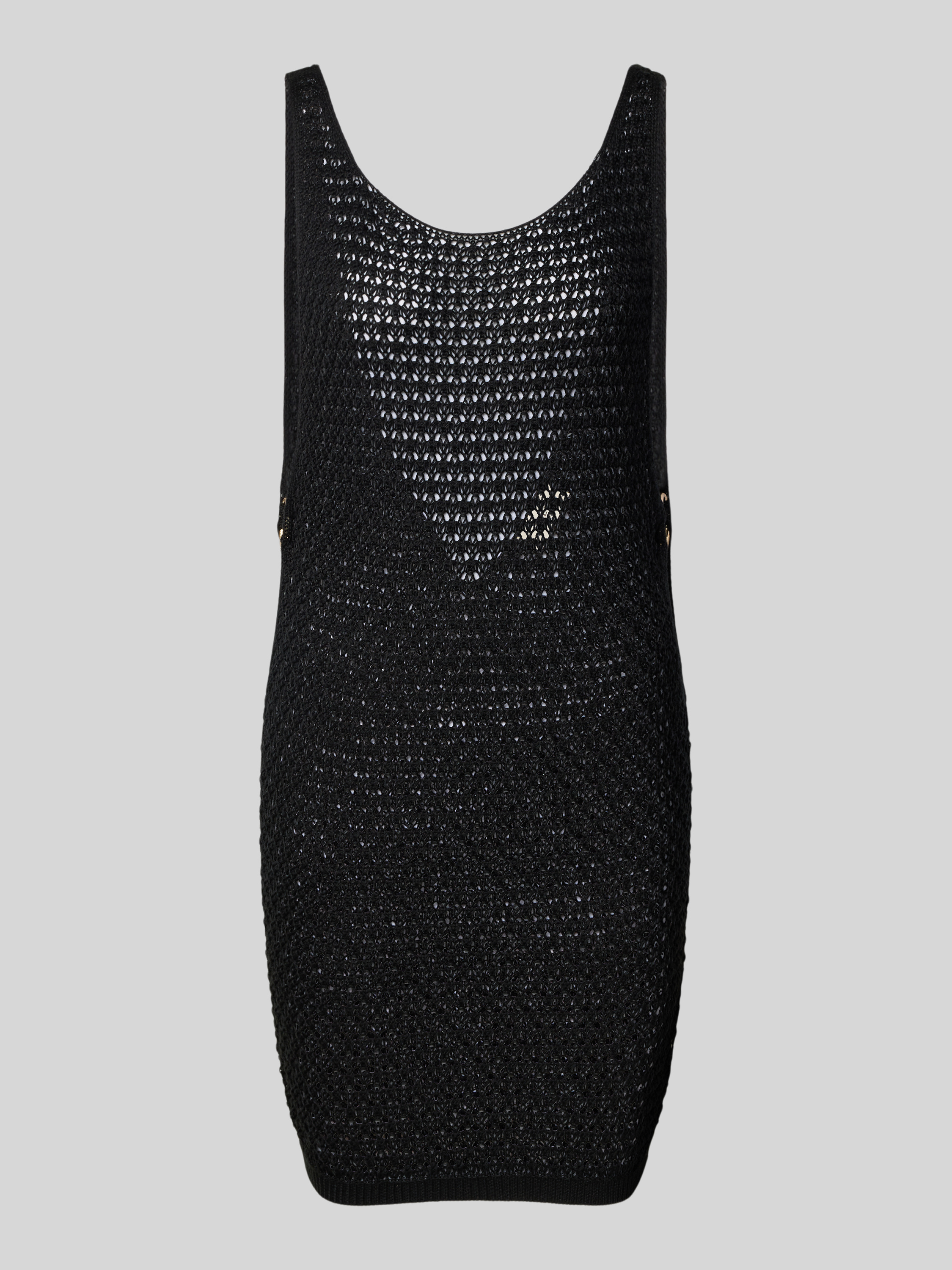 Das Damen Strickkleid von Guess zeigt sich in gerader Passform und legt durch das feine Lochmuster dezent Haut frei. Mit seinem U-Ausschnitt und dem ärmellosen Design eignet sich das Modell für warme Tage oder für Layering-Looks. Die Minilänge unterstreicht die moderne Strick-Optik, wodurch sich vielseitige Outfits gestalten lassen.