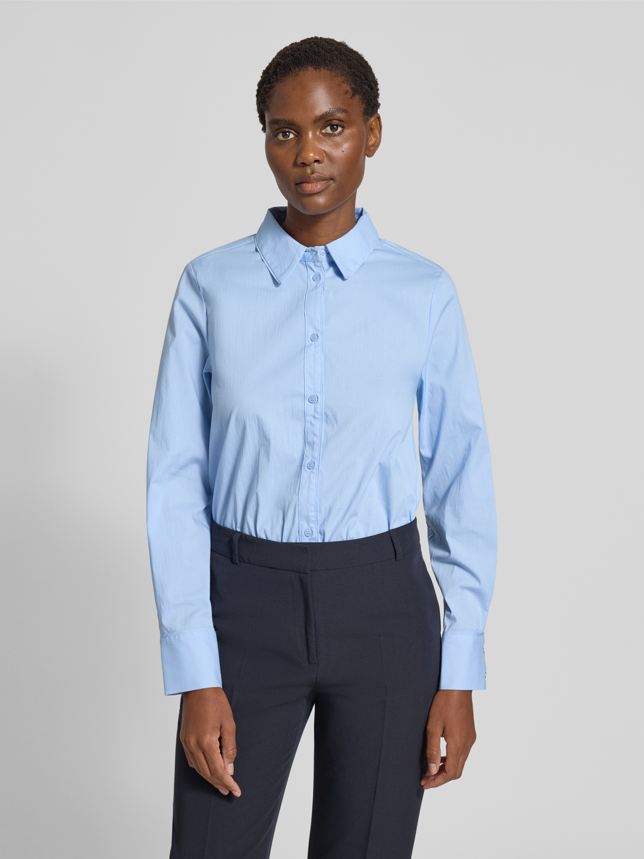 Die Bluse von GUIDO MARIA KRETSCHMER WOMAN im Modell Farina verbindet klassische Hemdblusen-Details mit dem Komfort eines Bodys. Reine Baumwolle sorgt für ein angenehmes Hautgefühl, während der körpernahe Schnitt und der Hemdblusenkragen einen gepflegten Eindruck unterstützen. Alltag und Büro lassen sich damit mühelos kombinieren.