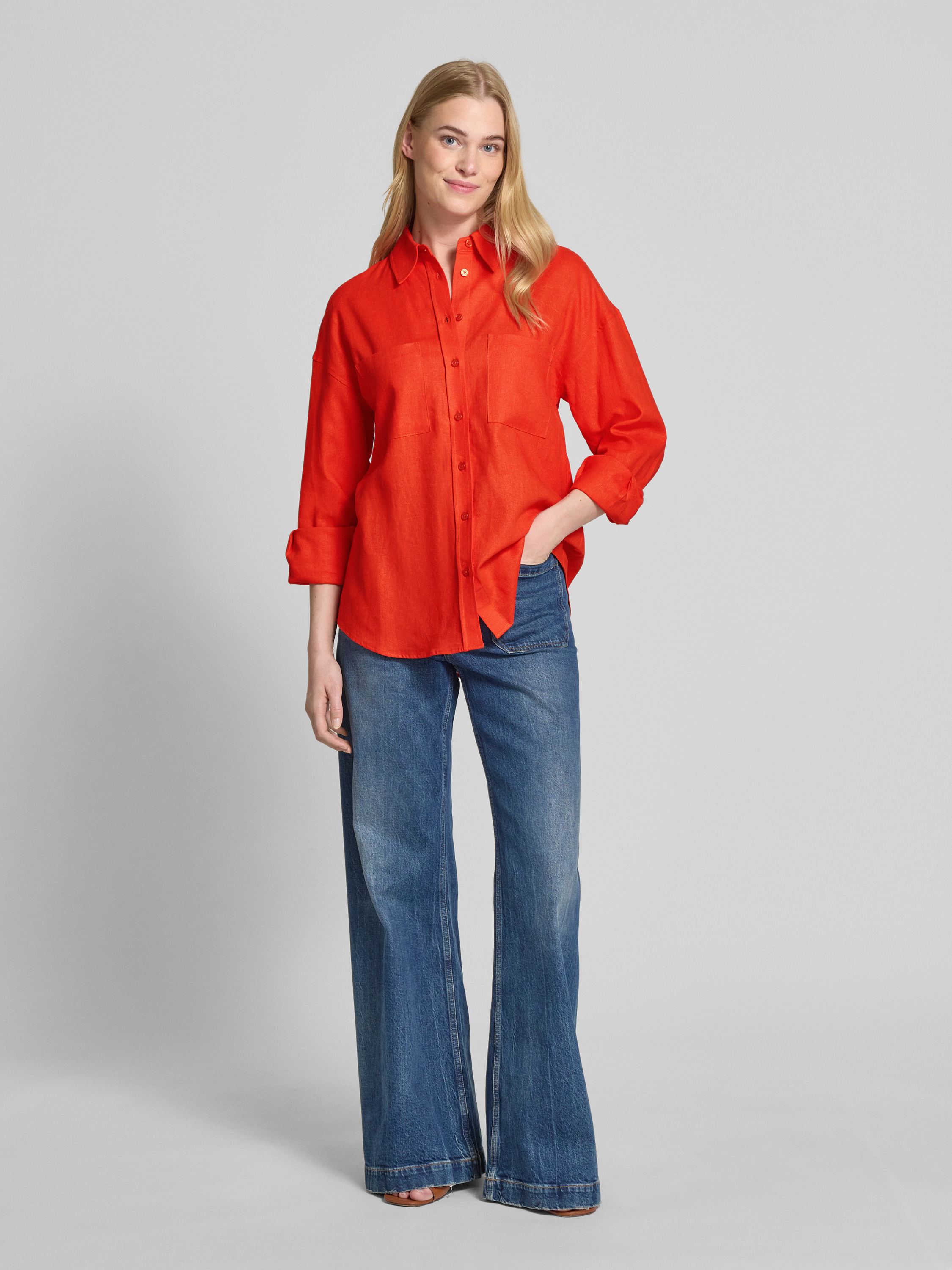 GUIDO MARIA KRETSCHMER WOMANRegular Fit Leinenbluse mit Hemdblusenkragen Modell 'SHIRIN' in hellrot