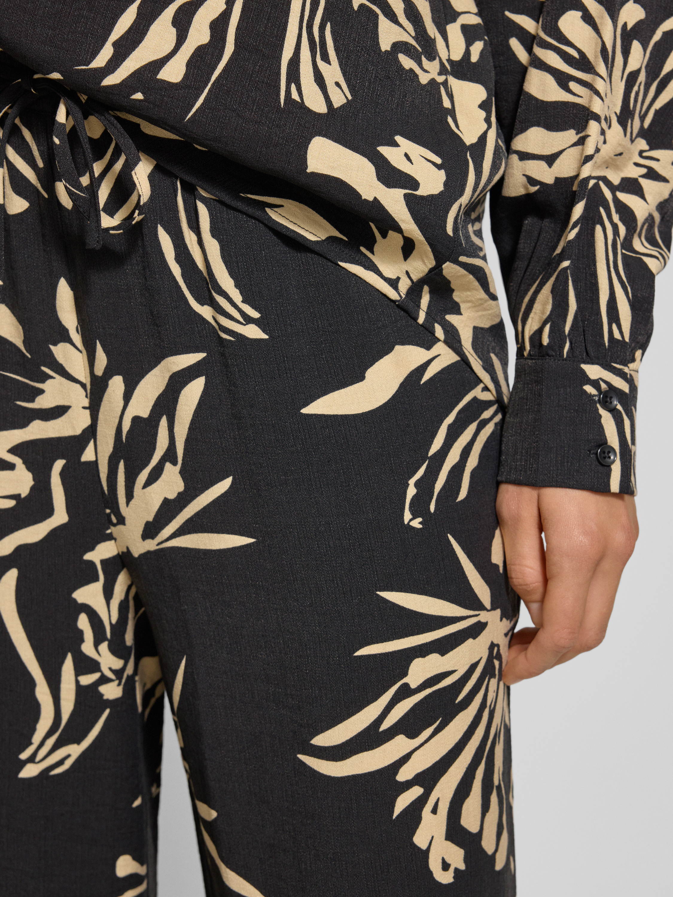 Die Damenhose von GUIDO MARIA KRETSCHMER WOMAN im entspannten Schnitt legt sich angenehm um das Bein und bleibt durch den Viskose-Mix leicht auf der Haut. Ein elastischer Bund mit Tunnelzug sorgt für Flexibilität im Alltag, während das florale Muster Abwechslung schafft.