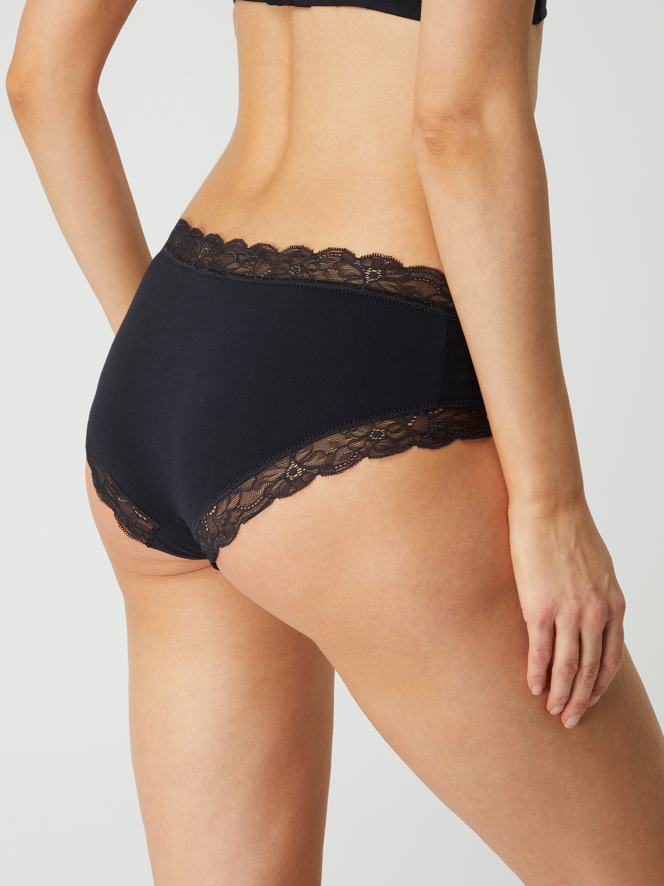 HanroHipster mit Spitzenbesatz Modell 'Cotton Lace' in black