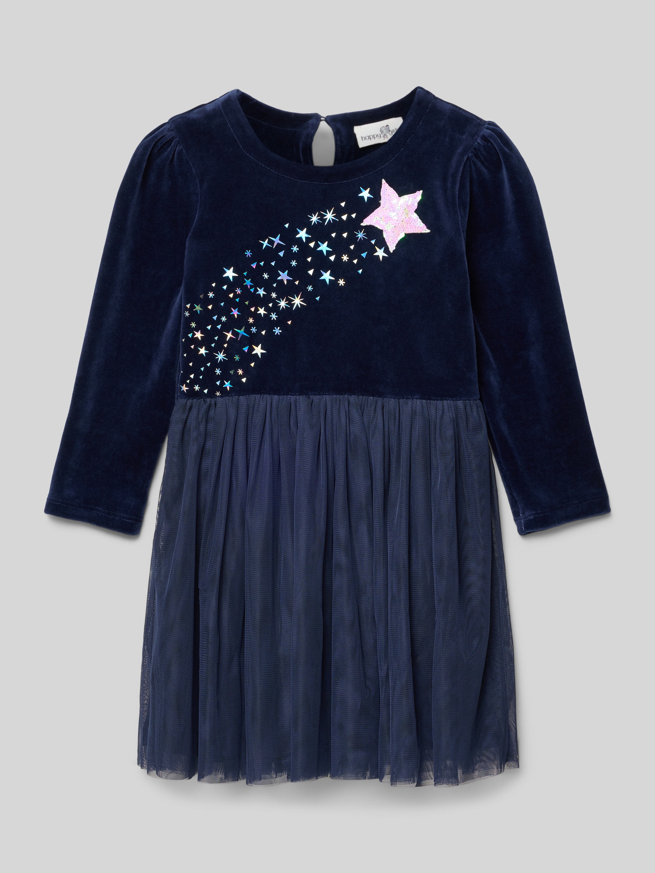 Das Kinder Kleid von Happy Girls kombiniert einen geraden Schnitt mit einem 2-in-1-Look, wodurch eine moderne Optik entsteht, die im Alltag unkompliziert wirkt. Durch den Baumwoll-Elasthan-Mix fühlt sich das Material angenehm auf der Haut an und ermöglicht Bewegungsfreiheit. Dezente Pailletten setzen einen verspielten Akzent, ohne aufdringlich zu wirken.