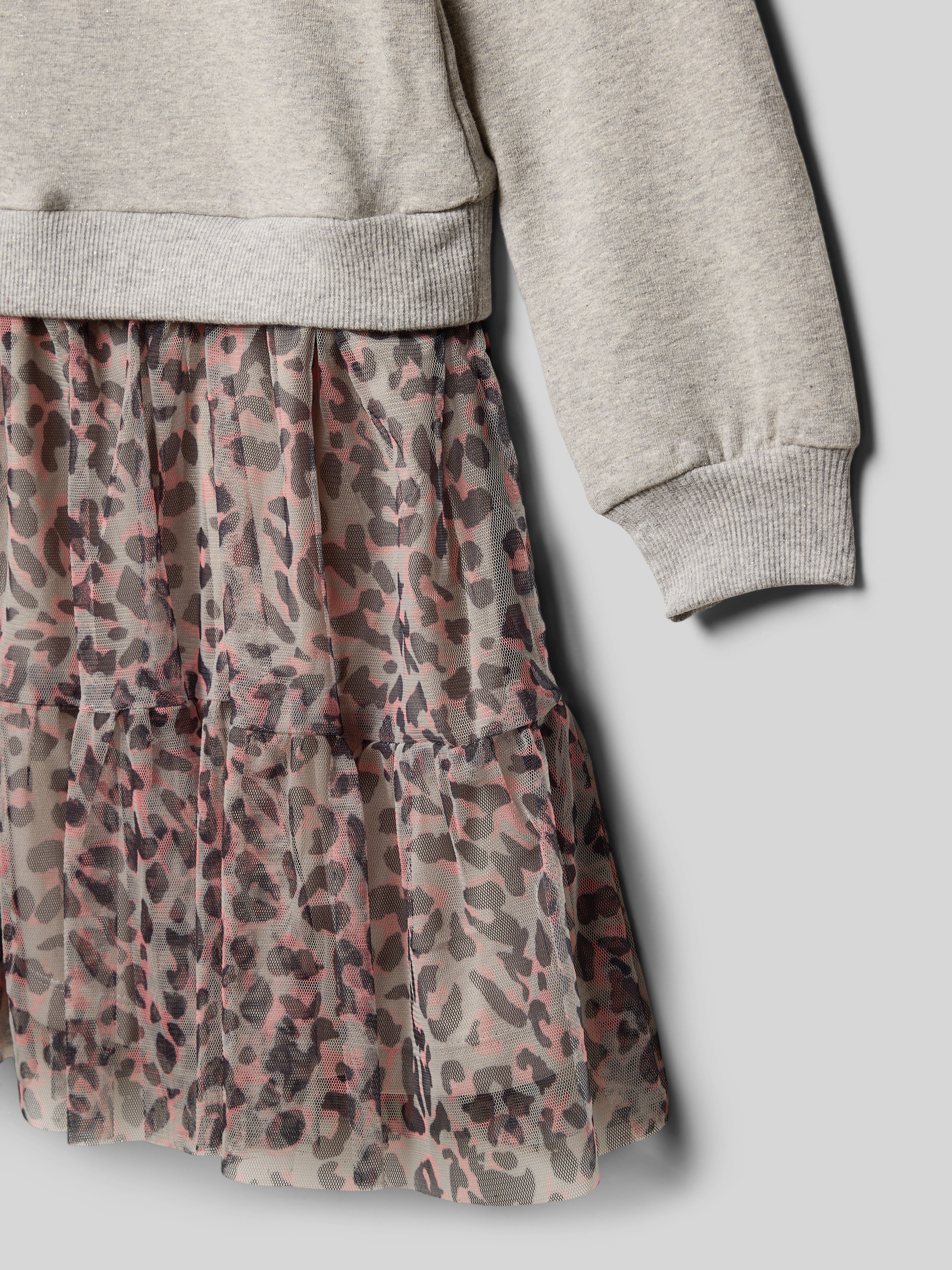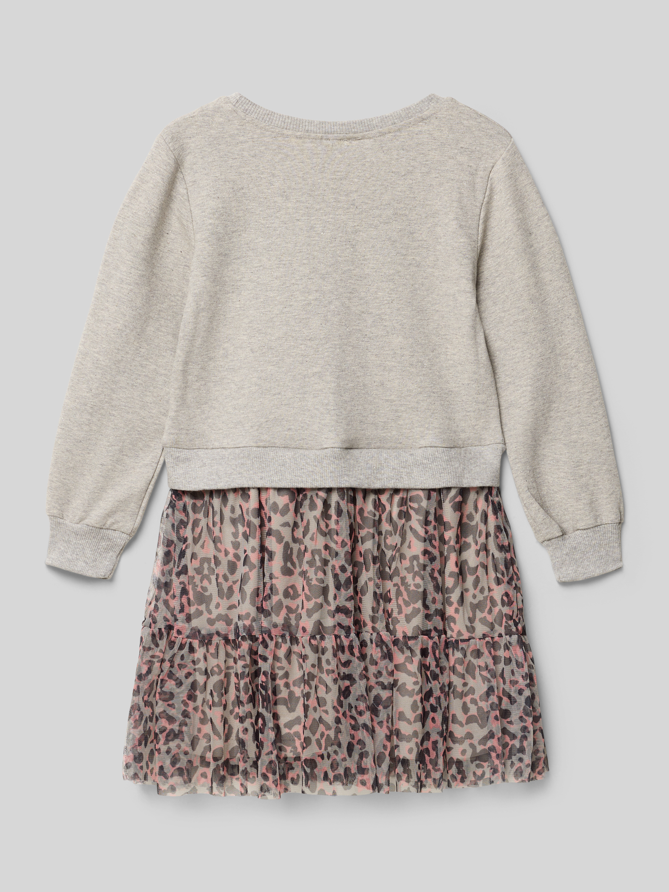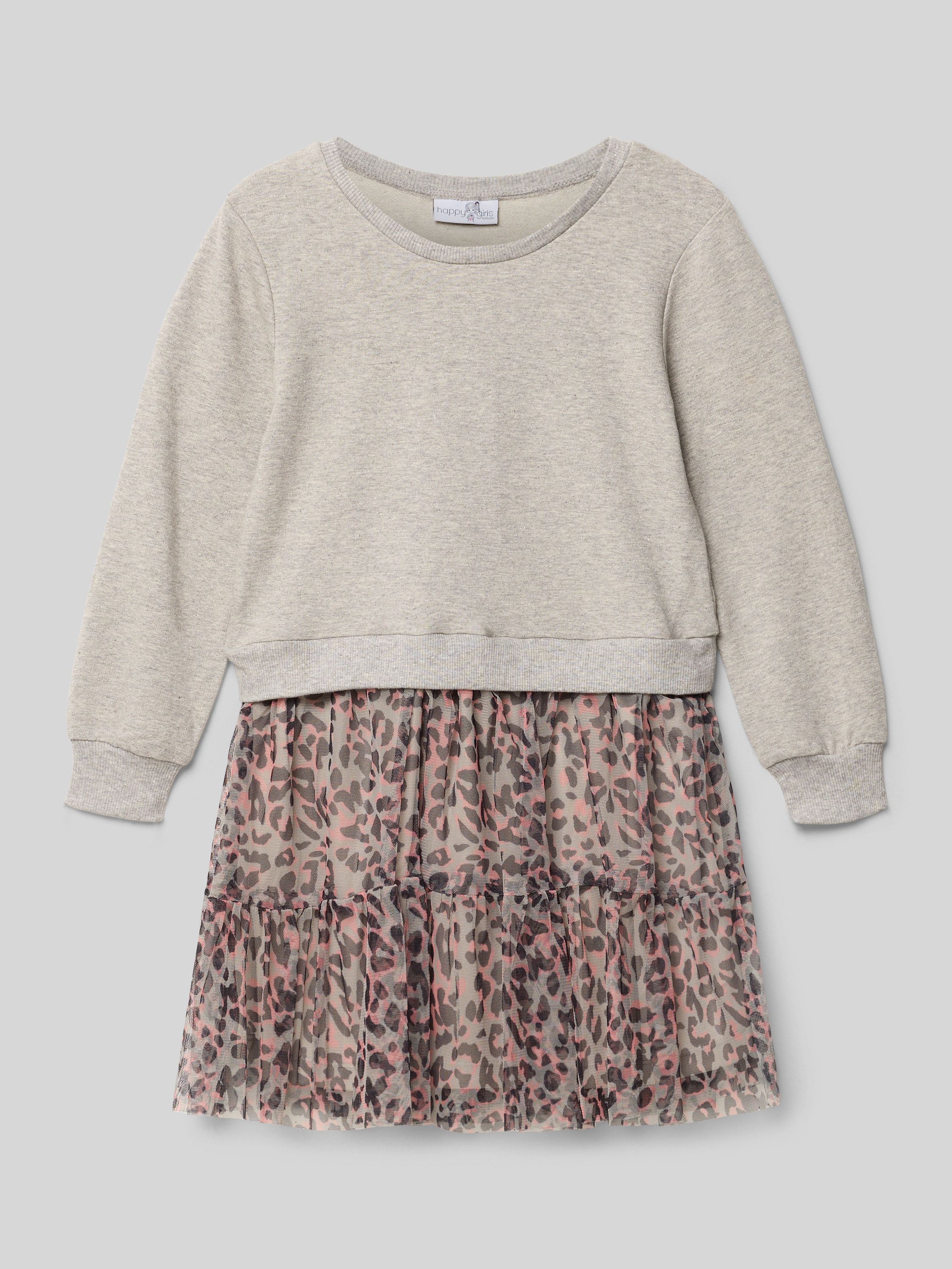 Das Sweatkleid mit Tüll von Happy Girls fällt durch seinen lockeren Schnitt und den angenehm weichen Griff auf. Der Rundhalsausschnitt sorgt für bequemes Anziehen, während der zarte Tüll dem Midikleid eine verspielte Note verleiht. So bleibt Bewegungsfreiheit erhalten und das Outfit wirkt leicht.