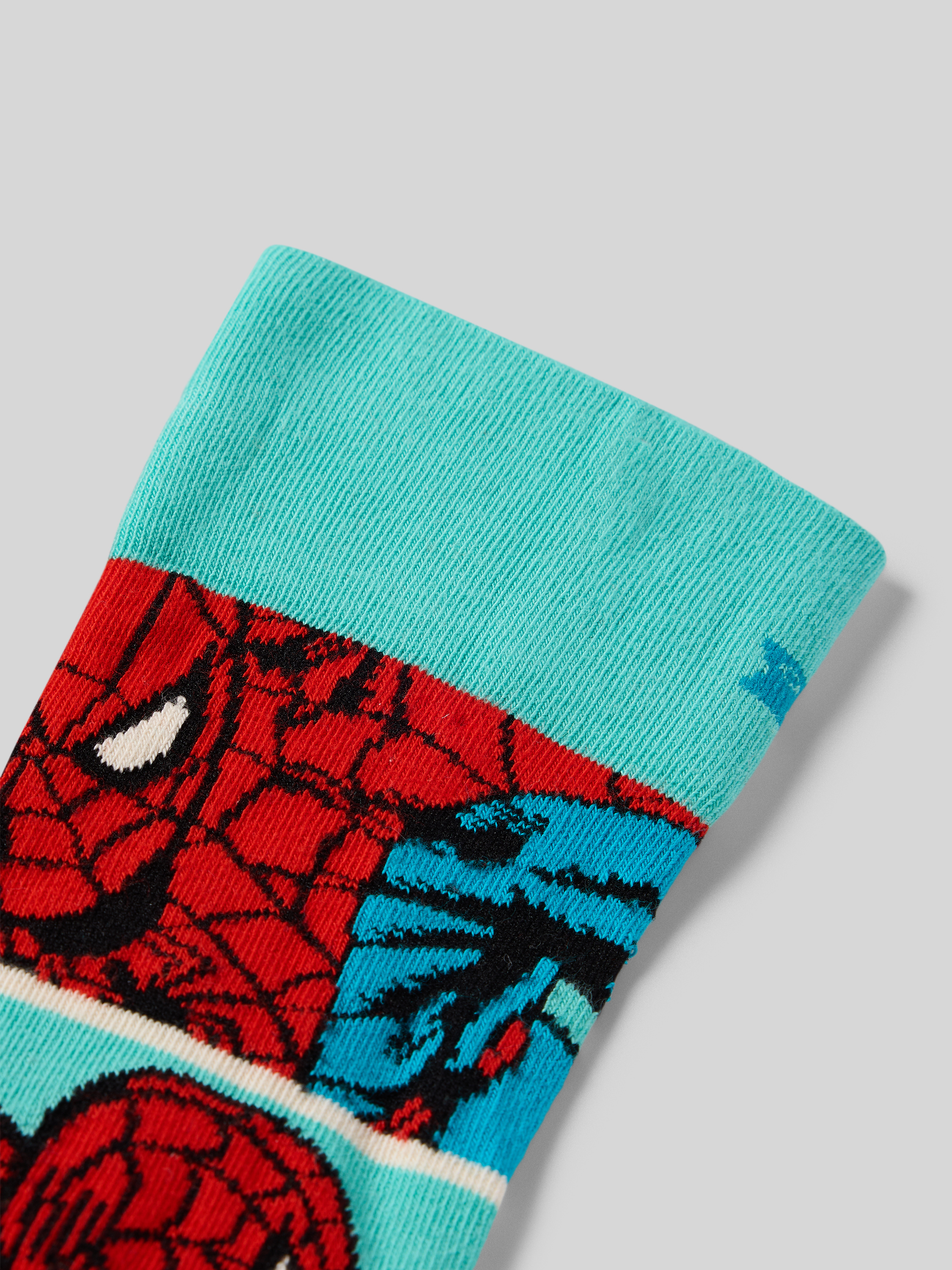 Die Herrensocken von Happy Socks im Regular Fit Modell 'WEB-SLINGER' überzeugen durch ihren angenehmen Baumwoll-Mix, der sich dem Fuß weich anschmiegt und für ein komfortables Tragegefühl sorgt. Das auffällige Motiv-Stitching und der dezente Logo-Print setzen stilvolle Akzente im Alltag. Durch die ausgewogene Passform eignen sich die Socken sowohl für Freizeit als auch Büro.