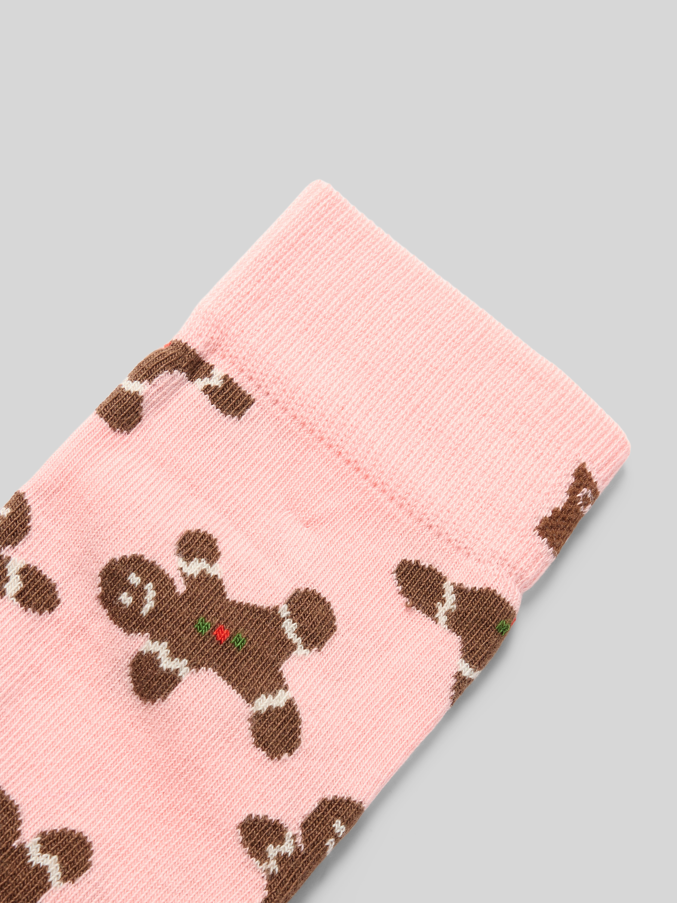 Happy SocksRegular Fit Socken mit Motiv-Stitching Modell 'Gingerbread Man' in rosa