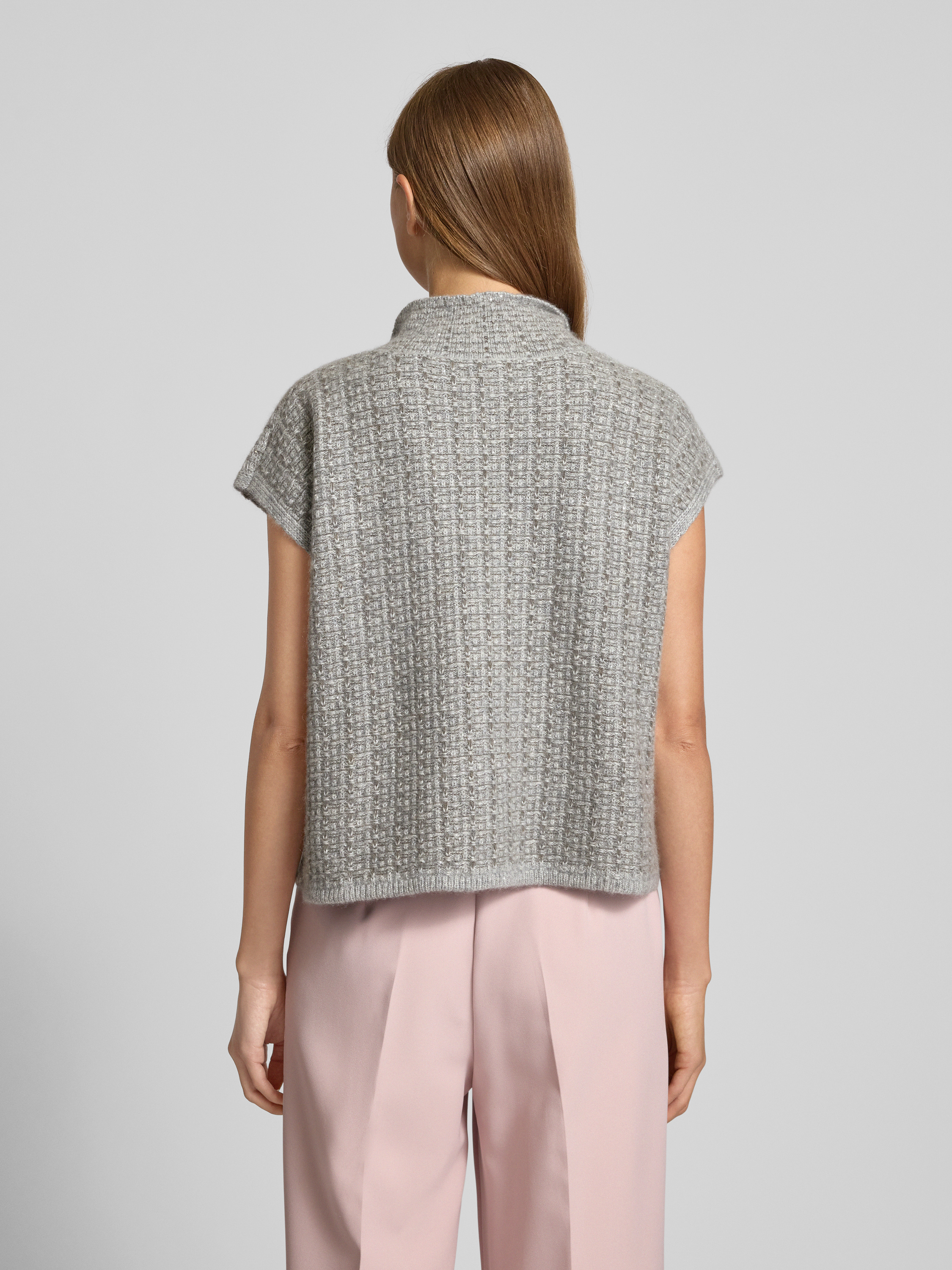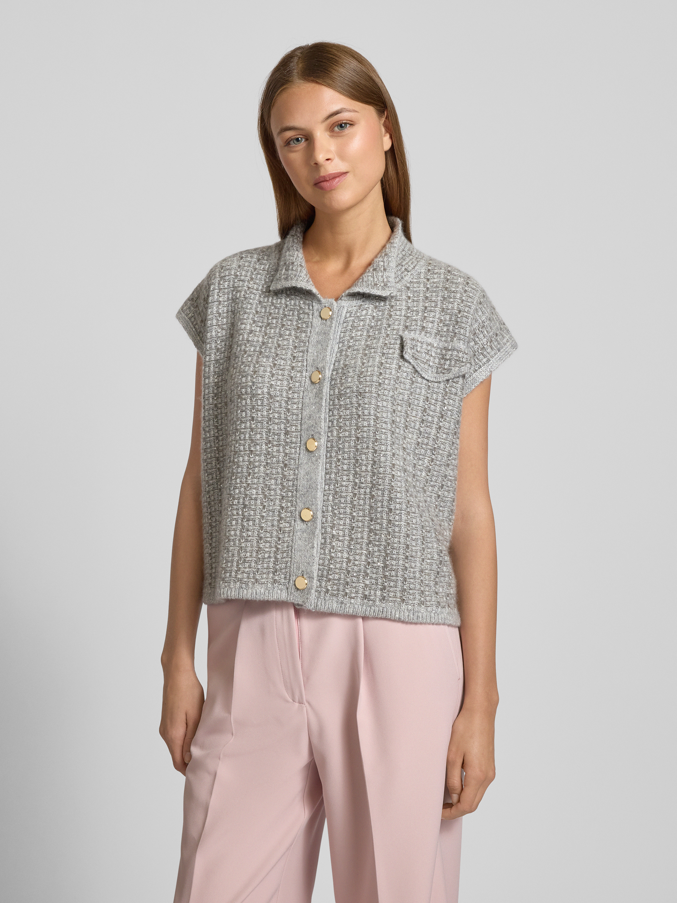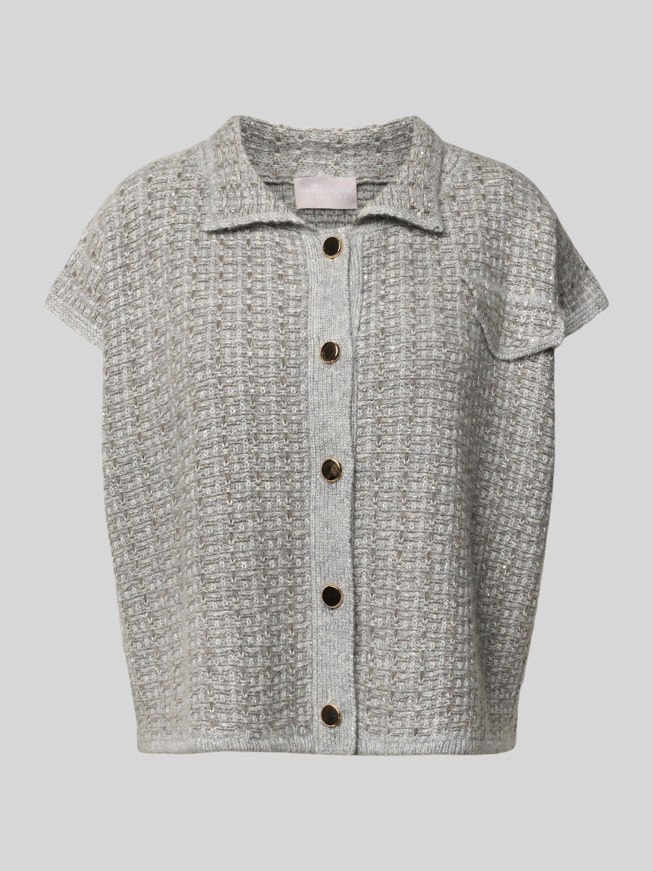 HemisphereStrickjacke aus Kaschmir-Seide-Mix in kurzärmeligem Design in mittelgrau