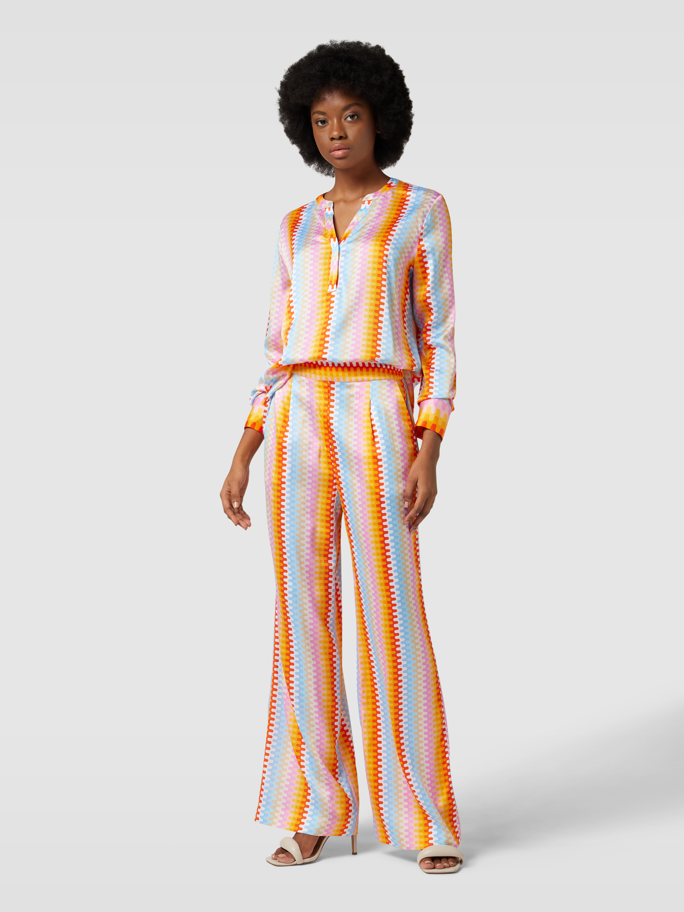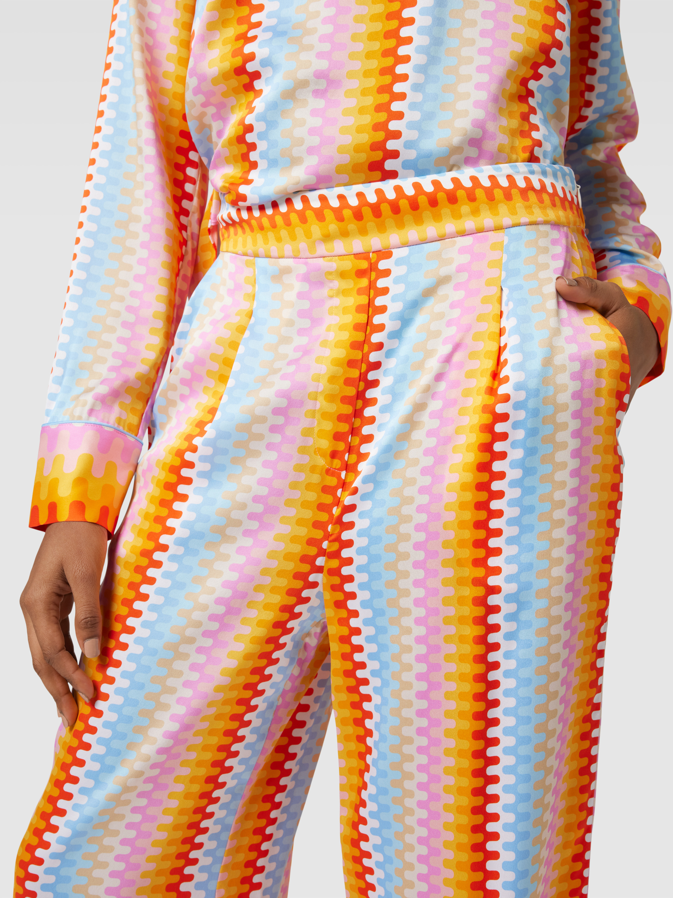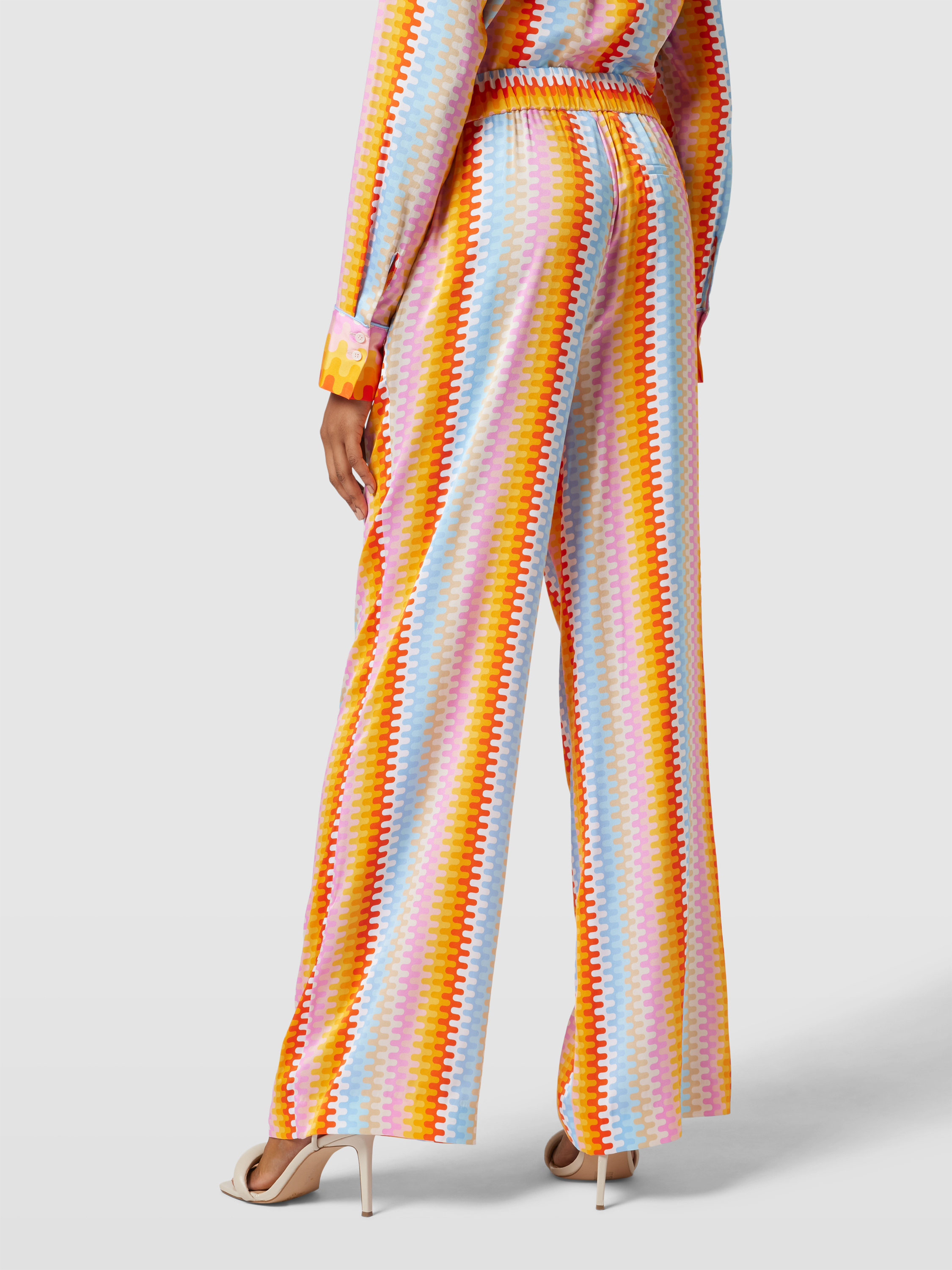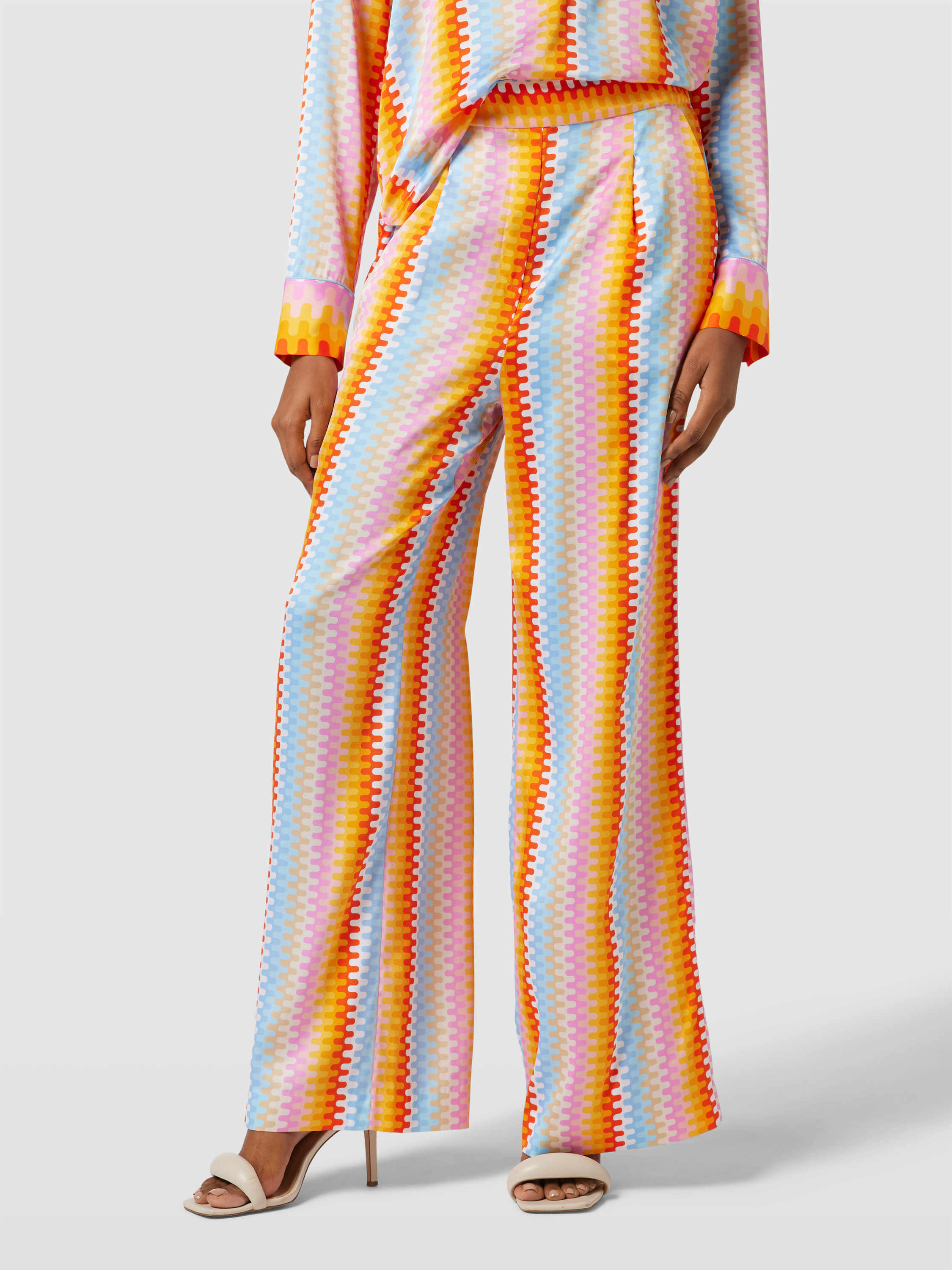 HerzensangelegenheitWide Leg Seidenhose mit Allover-Muster in orange