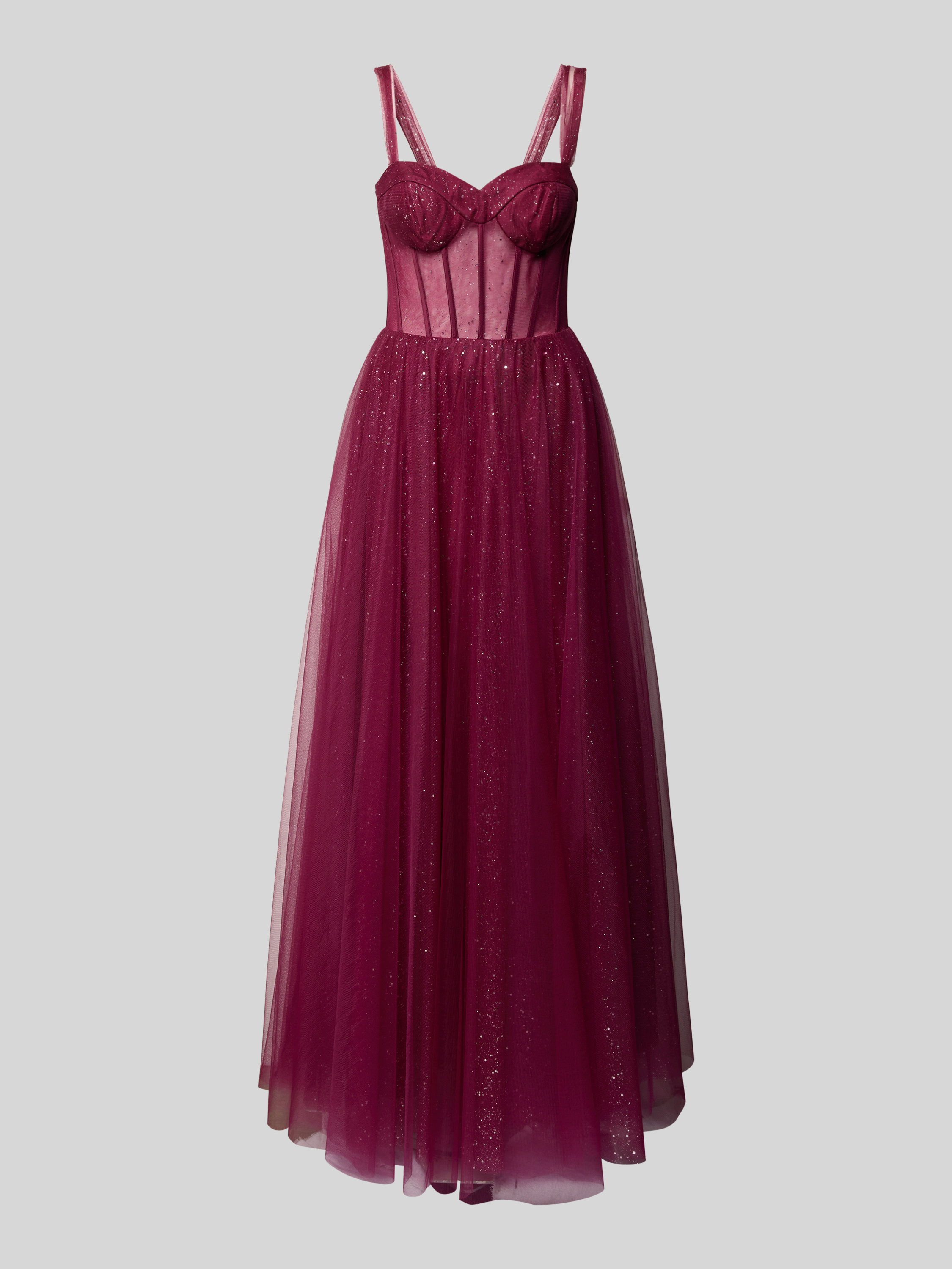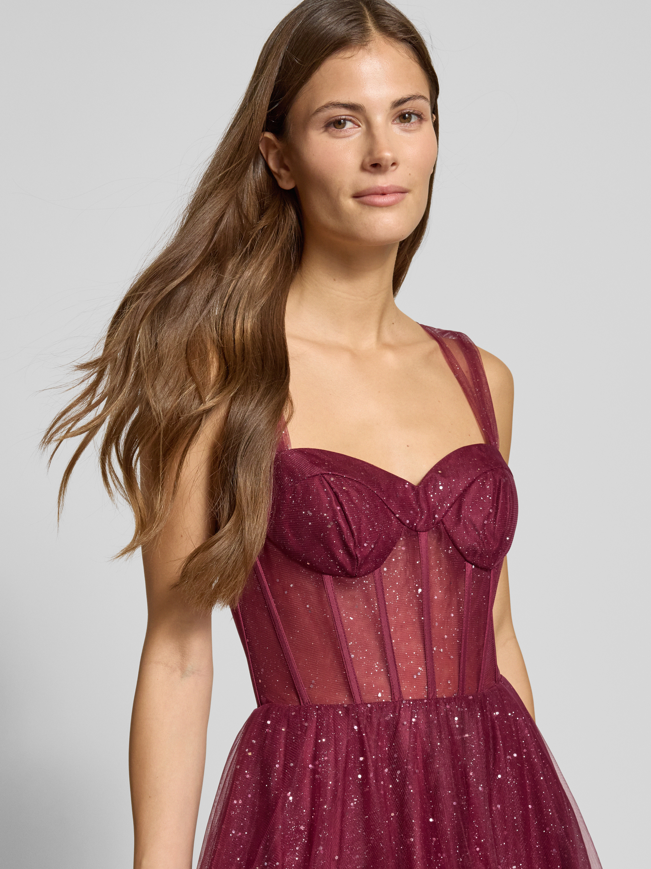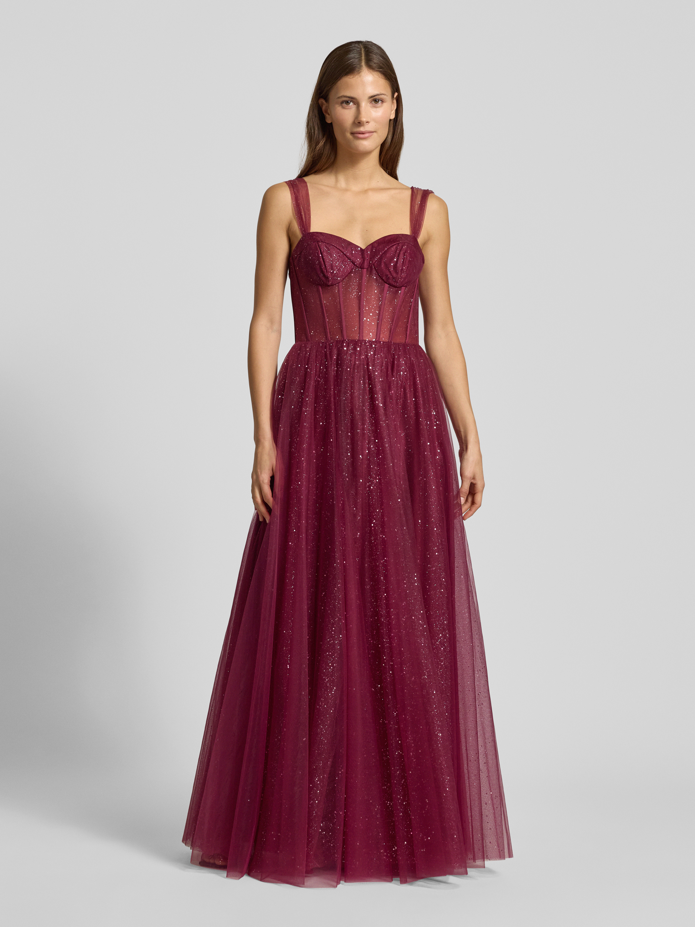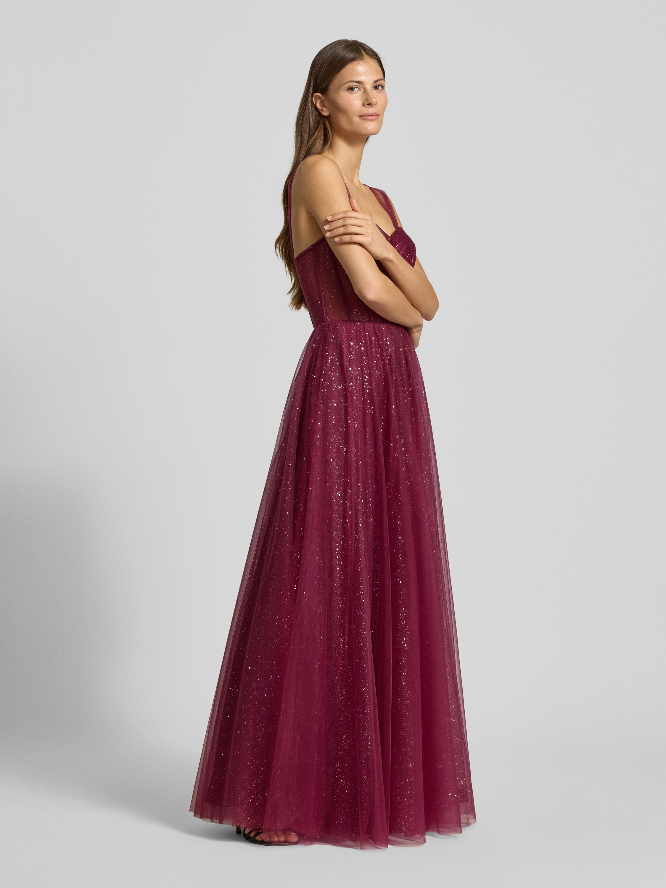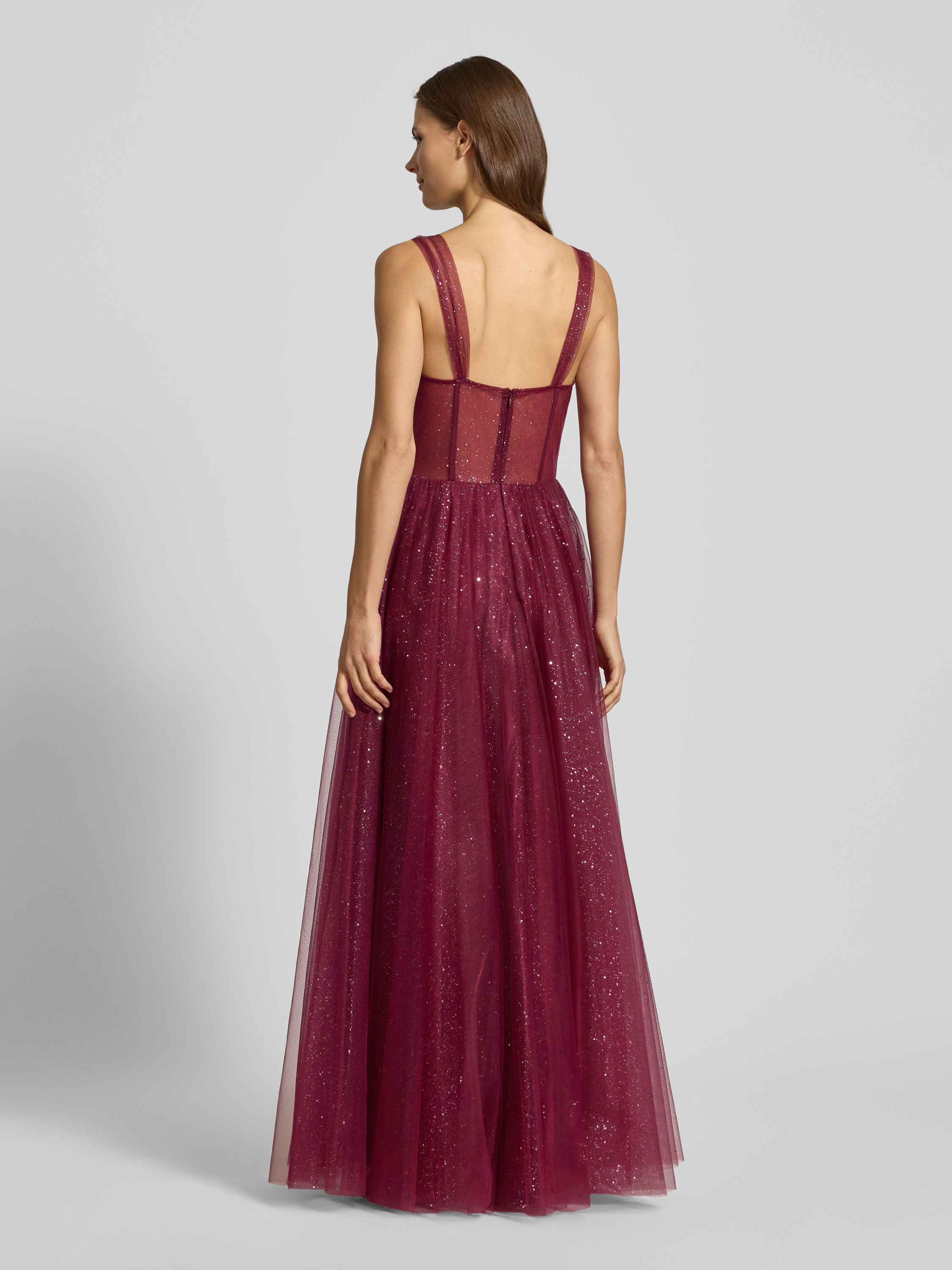Hey KylaSchimmerndes Abendkleid in semitransparenter Optik in dunkelrot