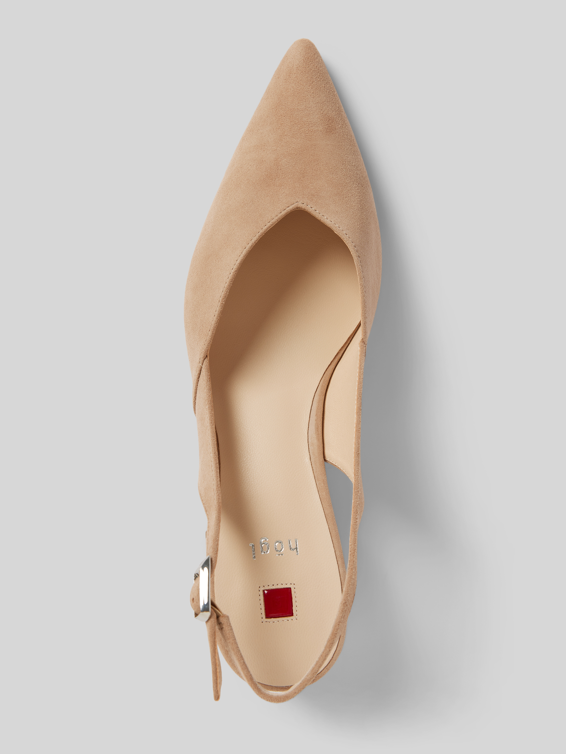 Die eleganten Slingbacks von Högl aus echtem Leder verbinden Stil mit Komfort. Dank der spitz zulaufenden Form und des zarten Riemens mit Dornschließe wird ein edler Look kreiert. Der stabile Blockabsatz von sechs Zentimetern Höhe sorgt für sicheren Halt und angenehmes Tragen.