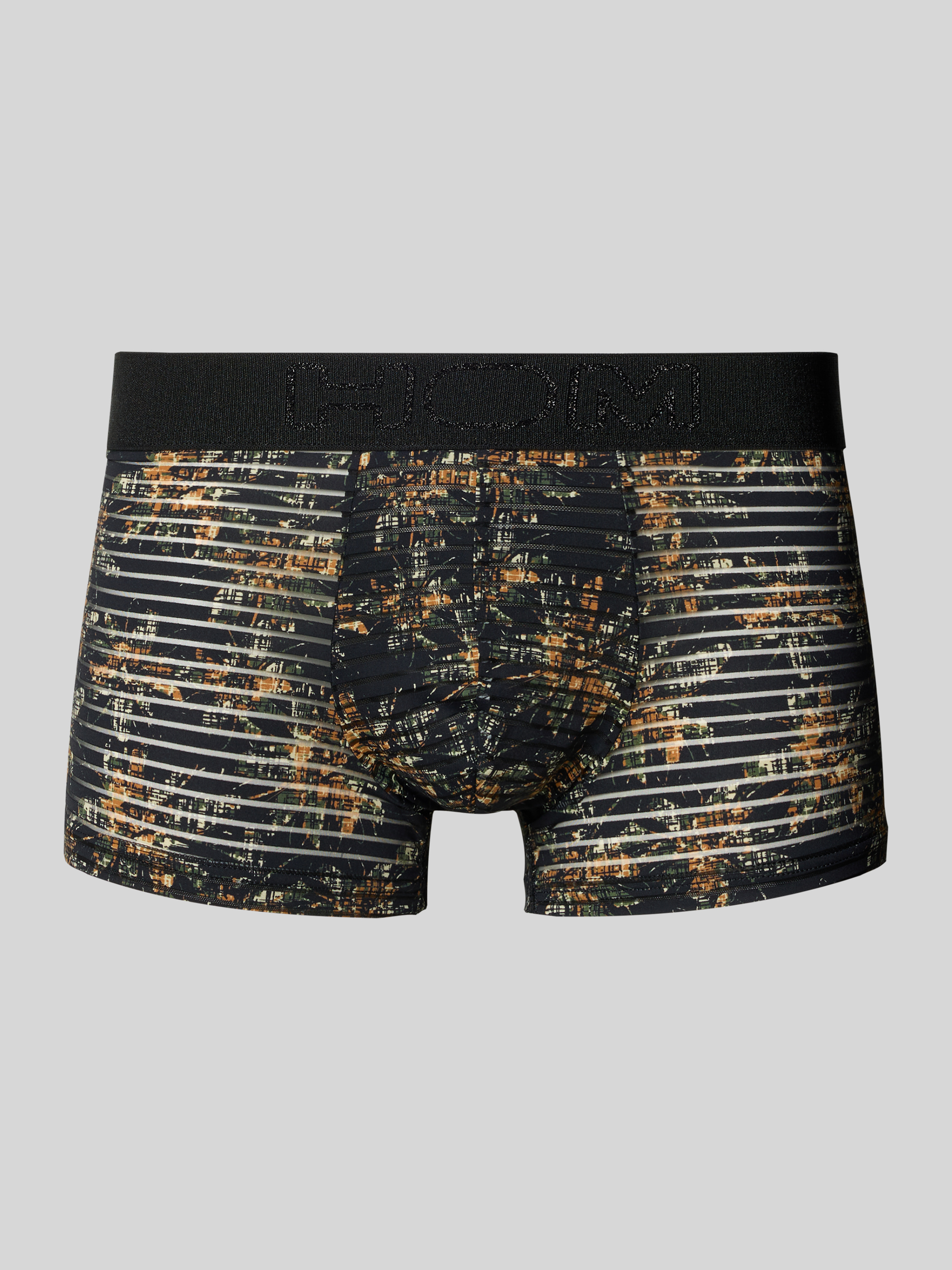 Die Herren Trunks von HOM, Modell 'Iraty', schmiegen sich durch ihren eng anliegenden Schnitt angenehm an den Körper. Ein Material-Mix mit Stretch-Anteil sorgt für Bewegungsfreiheit im Alltag. Der elastische Label-Bund verleiht den Trunks mit Label-Bund Modell 'Iraty' einen modernen Akzent.