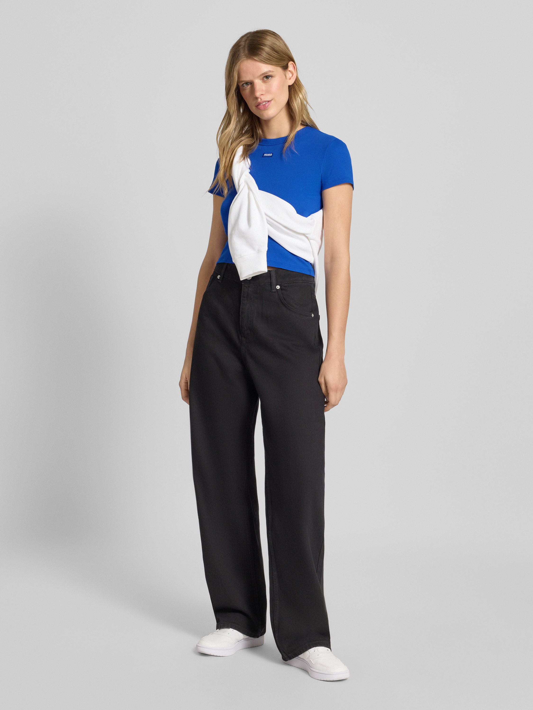 Das Cropped T-Shirt von Hugo Blue vereint einen modernen Slim Fit mit einem komfortablen Baumwoll-Elasthan-Mix. Durch den Rundhalsausschnitt und das dezente Label-Detail wird es vielseitig einsetzbar. Ideal für alle, die einen trendigen, aber dennoch schlichten Look bevorzugen.