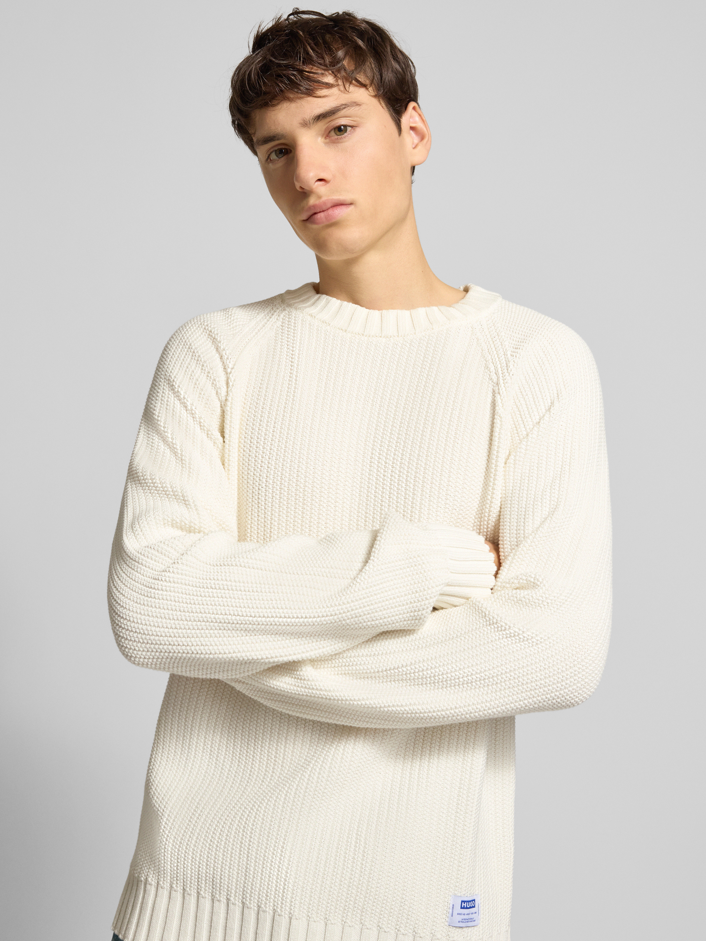 Hugo BlueRegular Fit Strickpullover aus reiner Baumwolle Modell 'SONNEE' in offwhite
