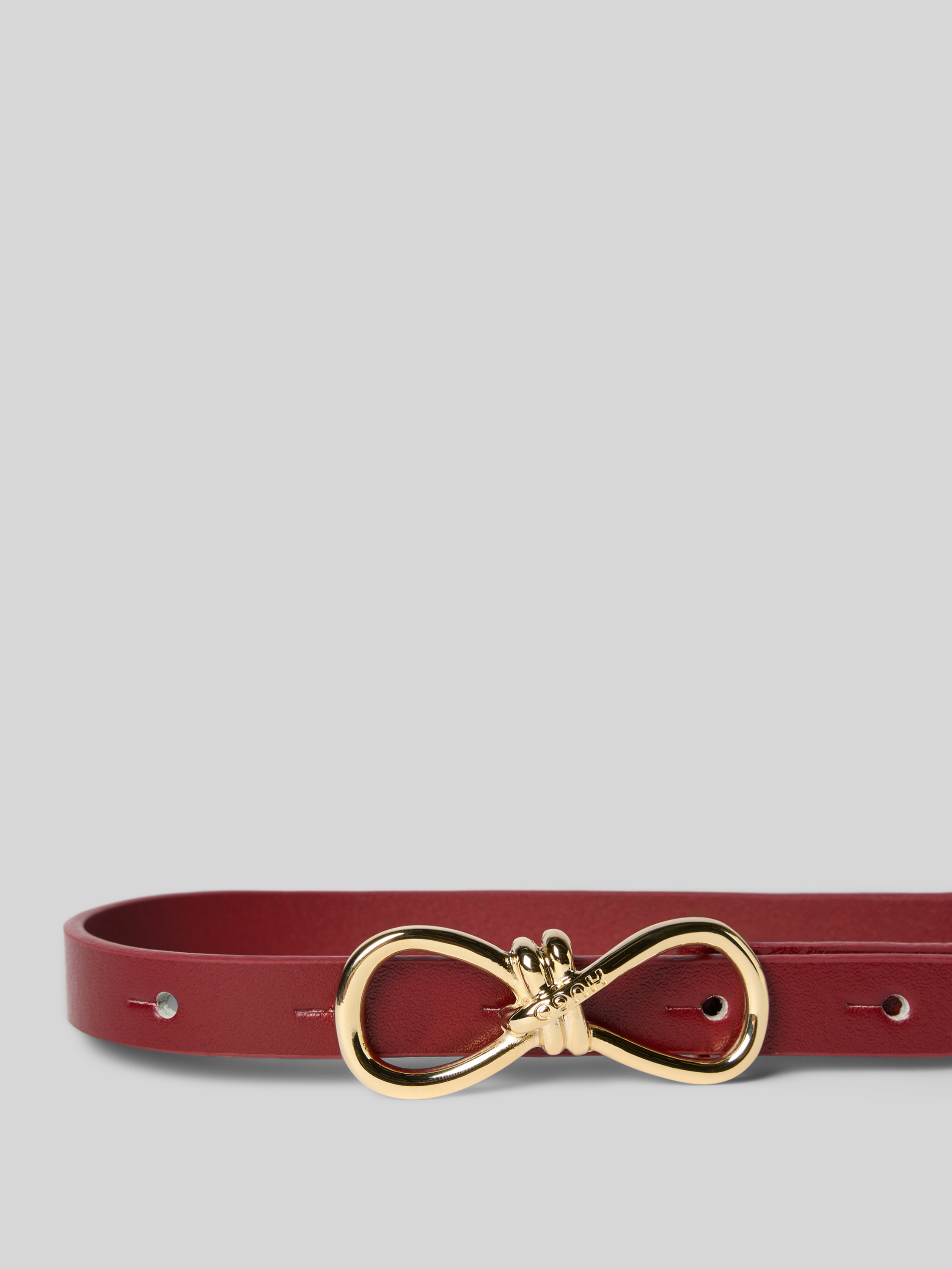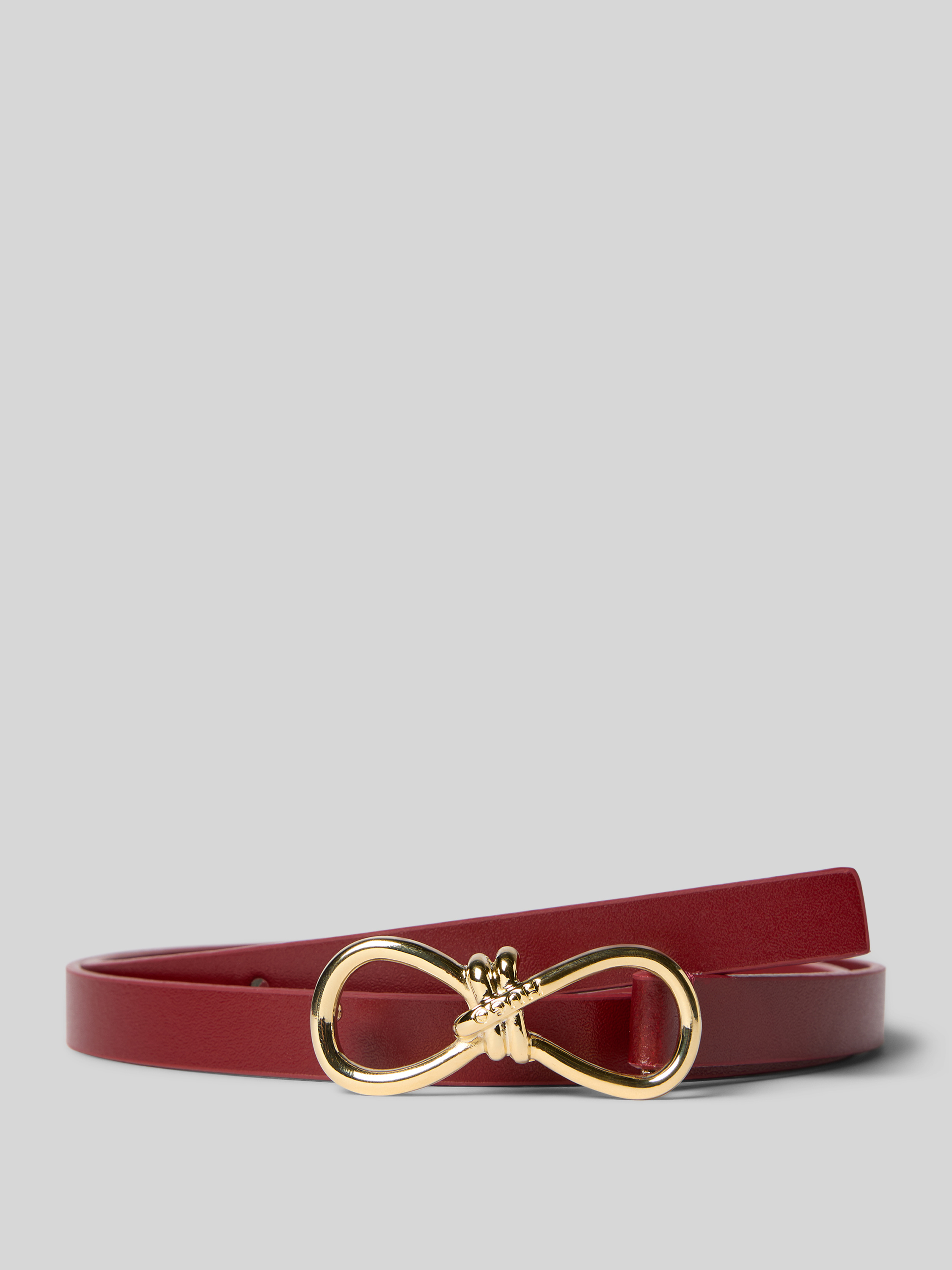 Der Damen Gürtel von HUGO, Modell Vita, zeigt sich in unifarbener Optik und setzt mit einer Dornschließe in Schleifen-Optik einen feinen Akzent. Gefertigt aus echtem Leder, vermittelt er einen angenehmen Griff und bleibt dabei formstabil. Durch die dezente Label-Prägung lässt sich das Accessoire vielseitig kombinieren.