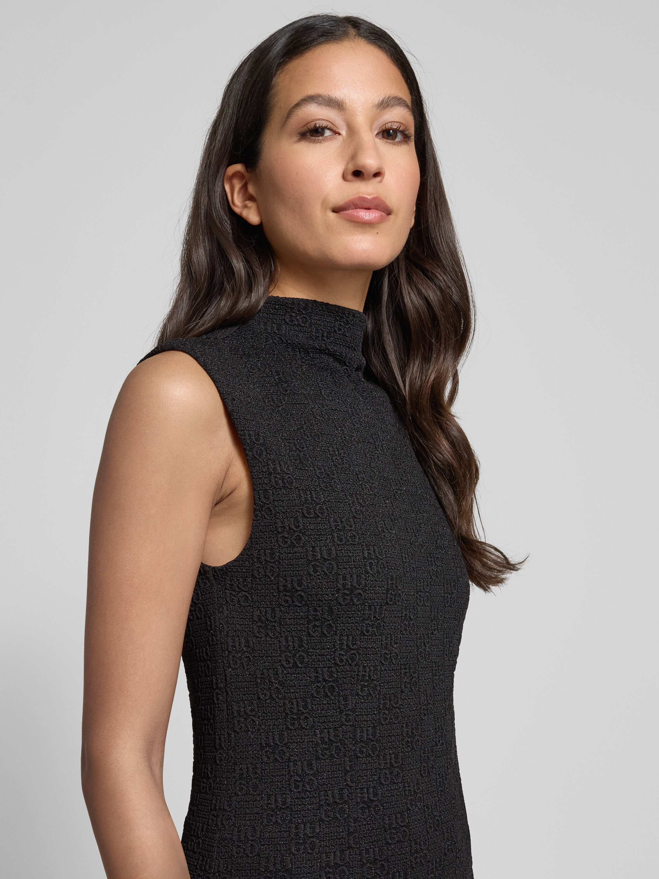 Das Damen Midikleid von HUGO, Modell 'Naired', fällt durch seine figurbetonte Passform und die schimmernde Optik angenehm auf. Dank hochgeschlossenem Ausschnitt und strukturierter Oberfläche eignet sich das Kleid für vielfältige Anlässe, während ein dezentes Label-Detail den Look abrundet. Der seitliche Gehschlitz unterstützt die Bewegungsfreiheit und sorgt für zusätzlichen Tragekomfort.