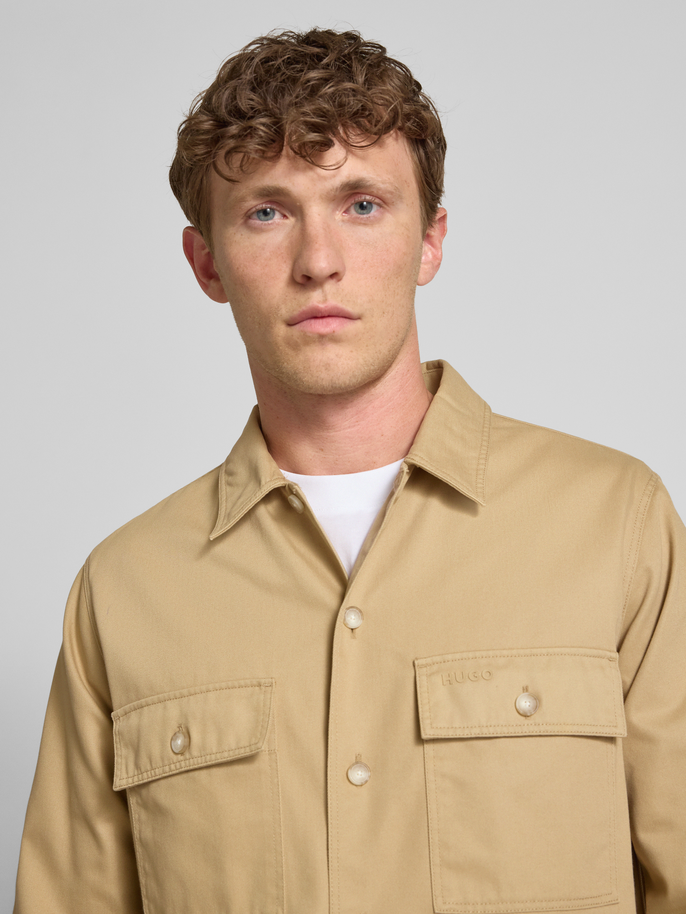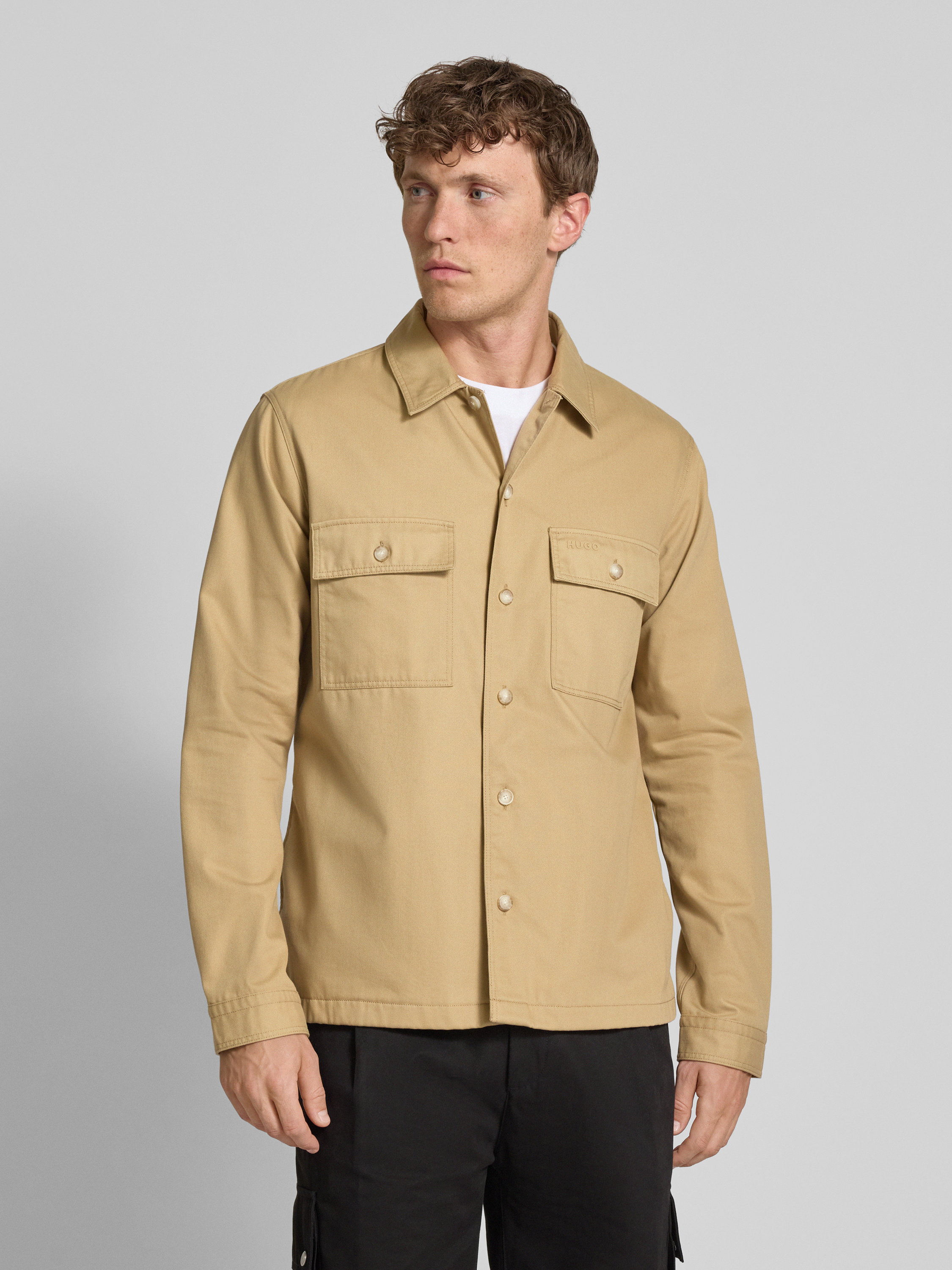 HUGOHemdjacke mit Knopfleiste Modell 'Epoldo' in beige