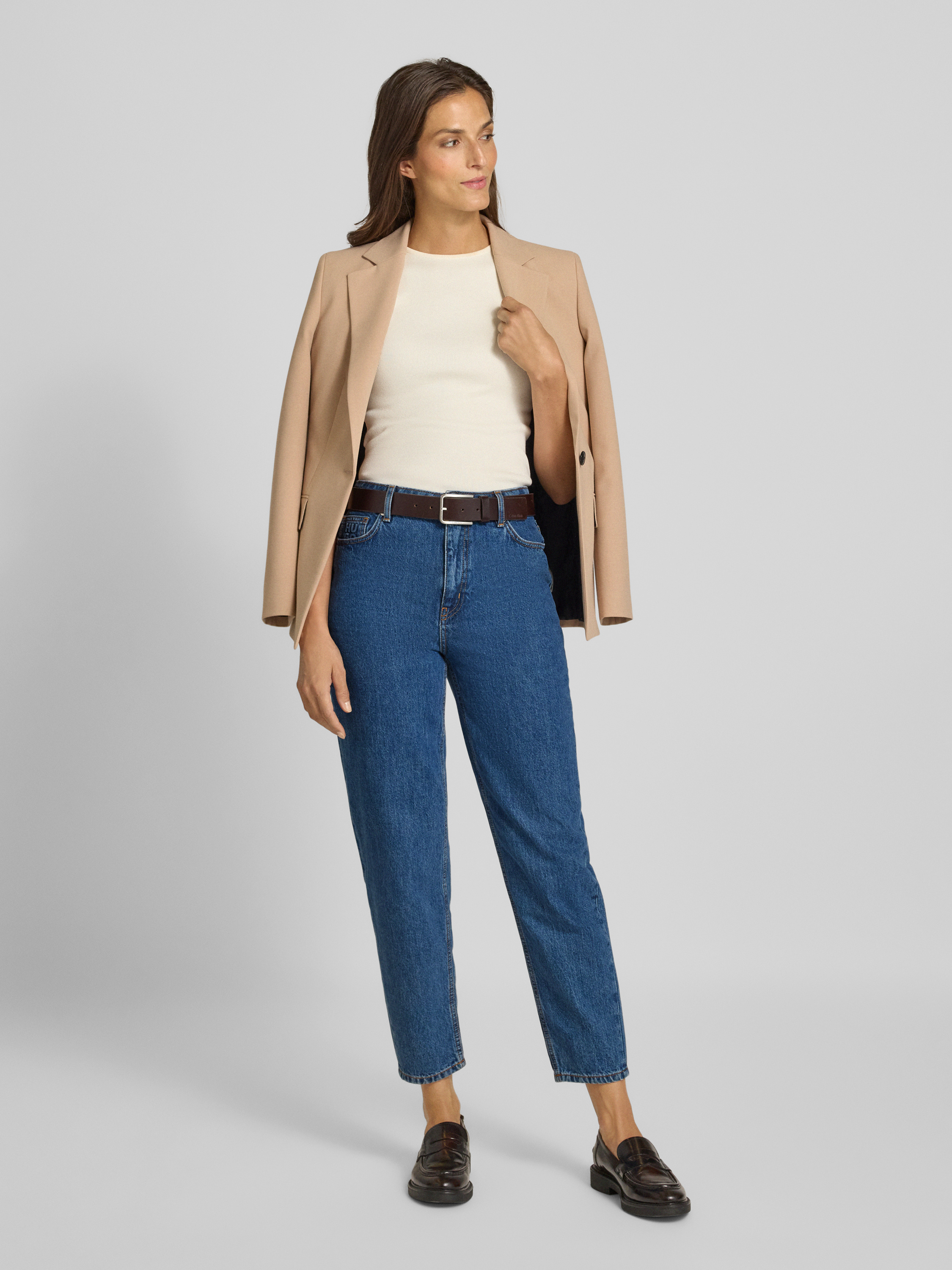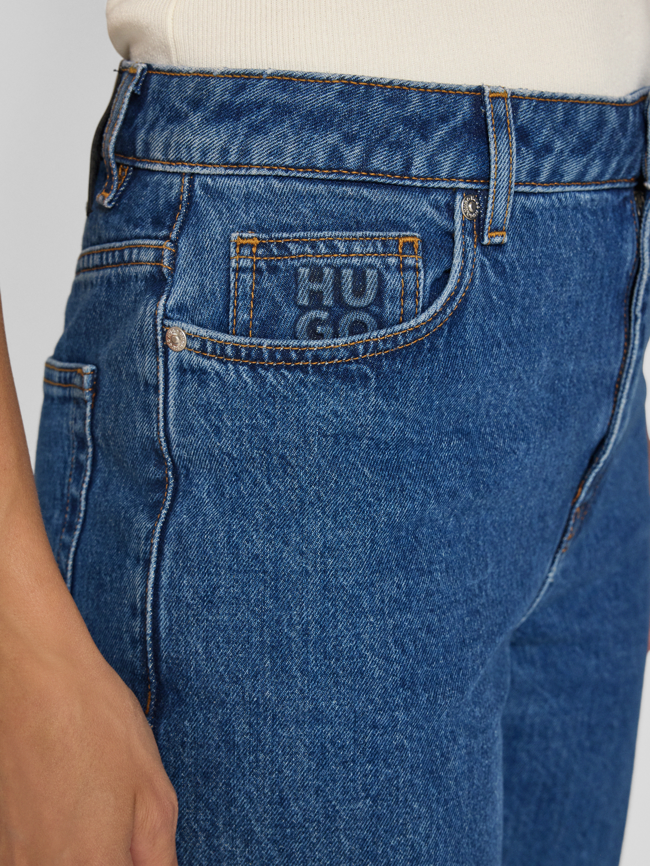 Die Mom Fit Jeans von HUGO aus reiner Baumwolle kombiniert lässigen Komfort mit einer modernen Silhouette. Dank des High Waist Schnitts schmiegt sie sich angenehm an die Taille an, während das 5-Pocket-Design ausreichend Stauraum bietet. Der Melange-Look verleiht der Jeans einen zeitgemäßen Charme.