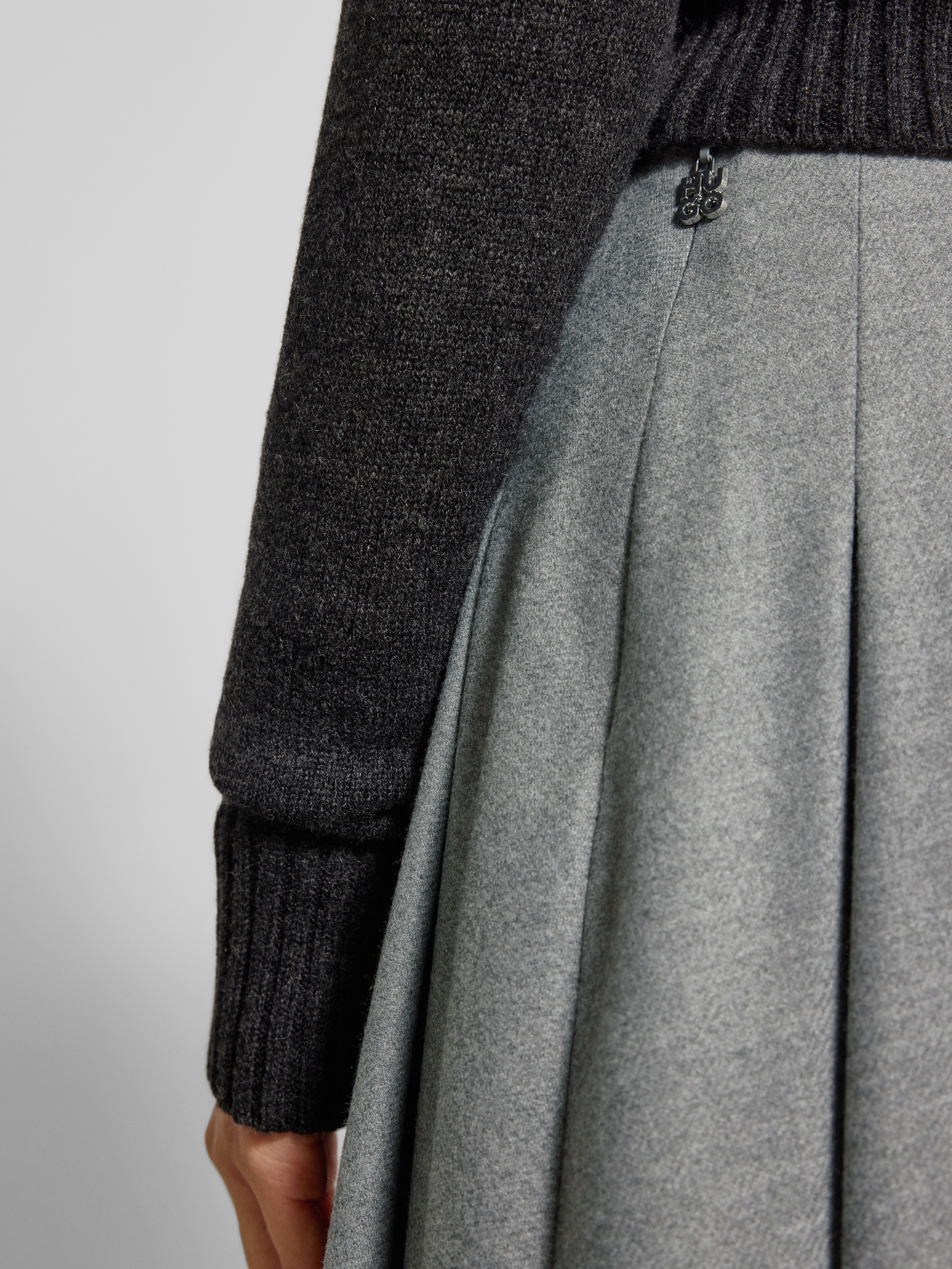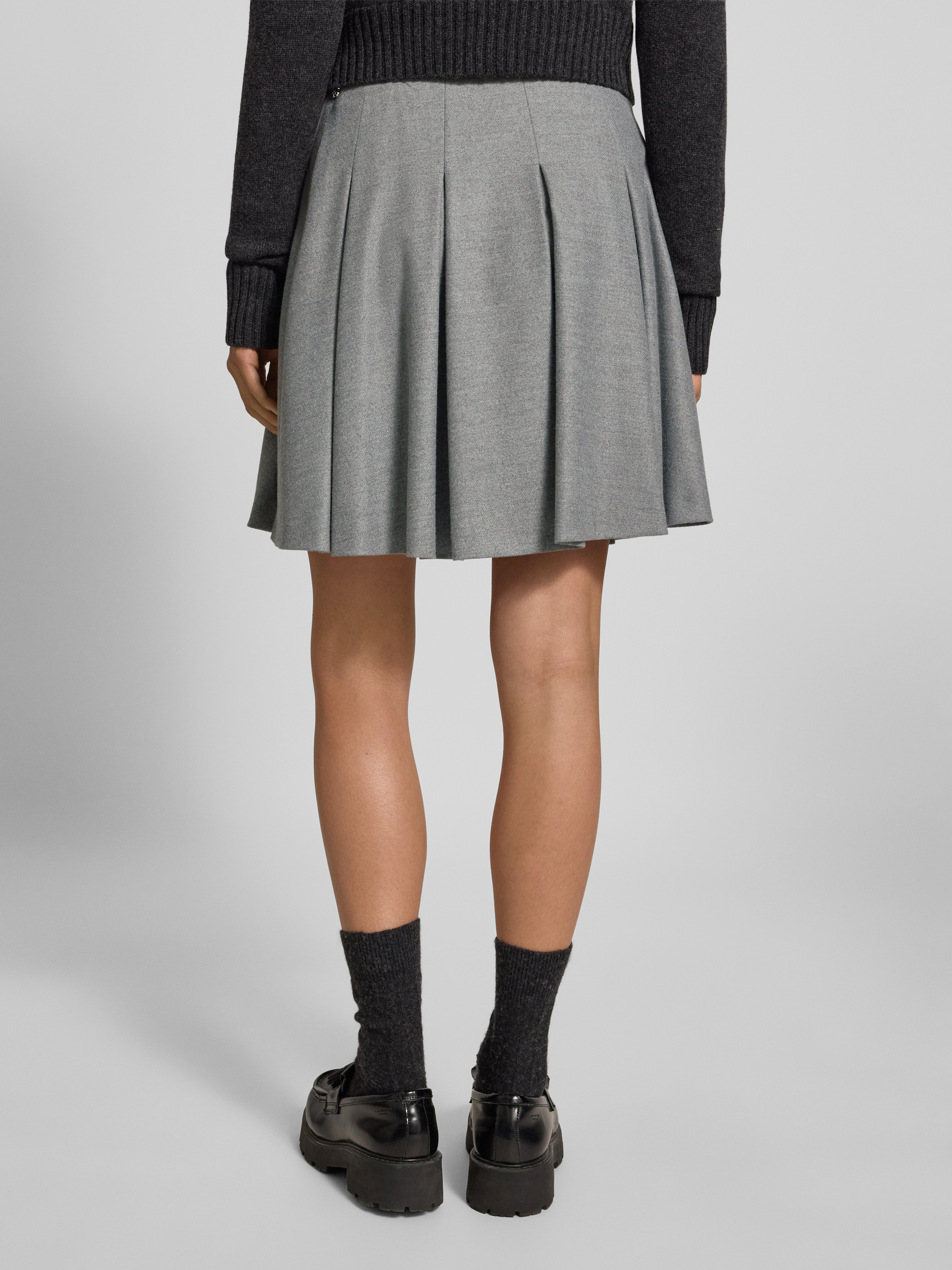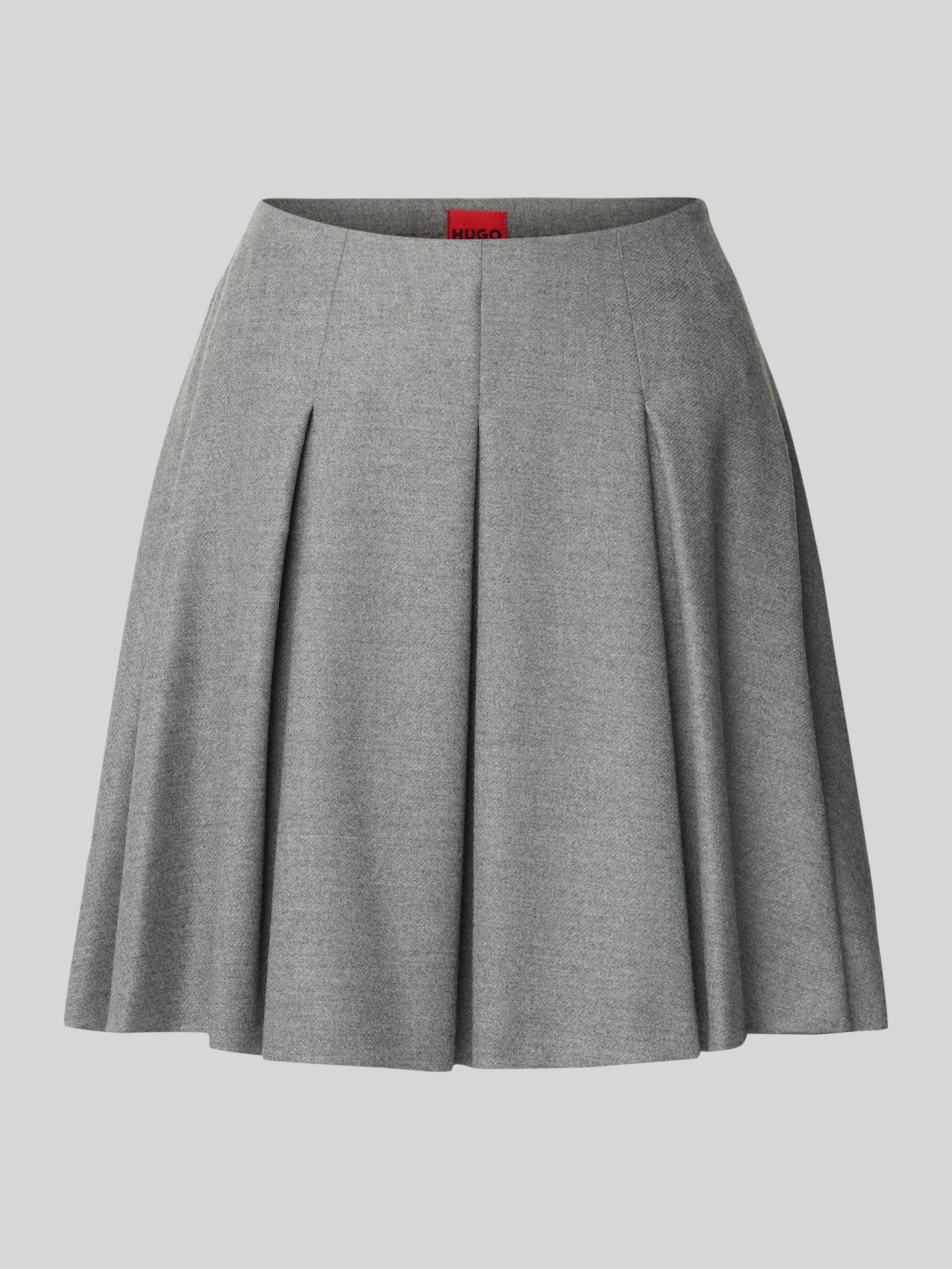 Der Regular Fit Mini-Rock Radina von HUGO zeigt sich in melierter Flanell-Optik und bringt durch gelegte Falten dezente Bewegung ins Outfit. Die klassische Silhouette eignet sich für vielseitige Kombinationen, während das glatte Unterfutter angenehmen Tragekomfort unterstützt. Ein feines Logo-Detail rundet das Design ab.