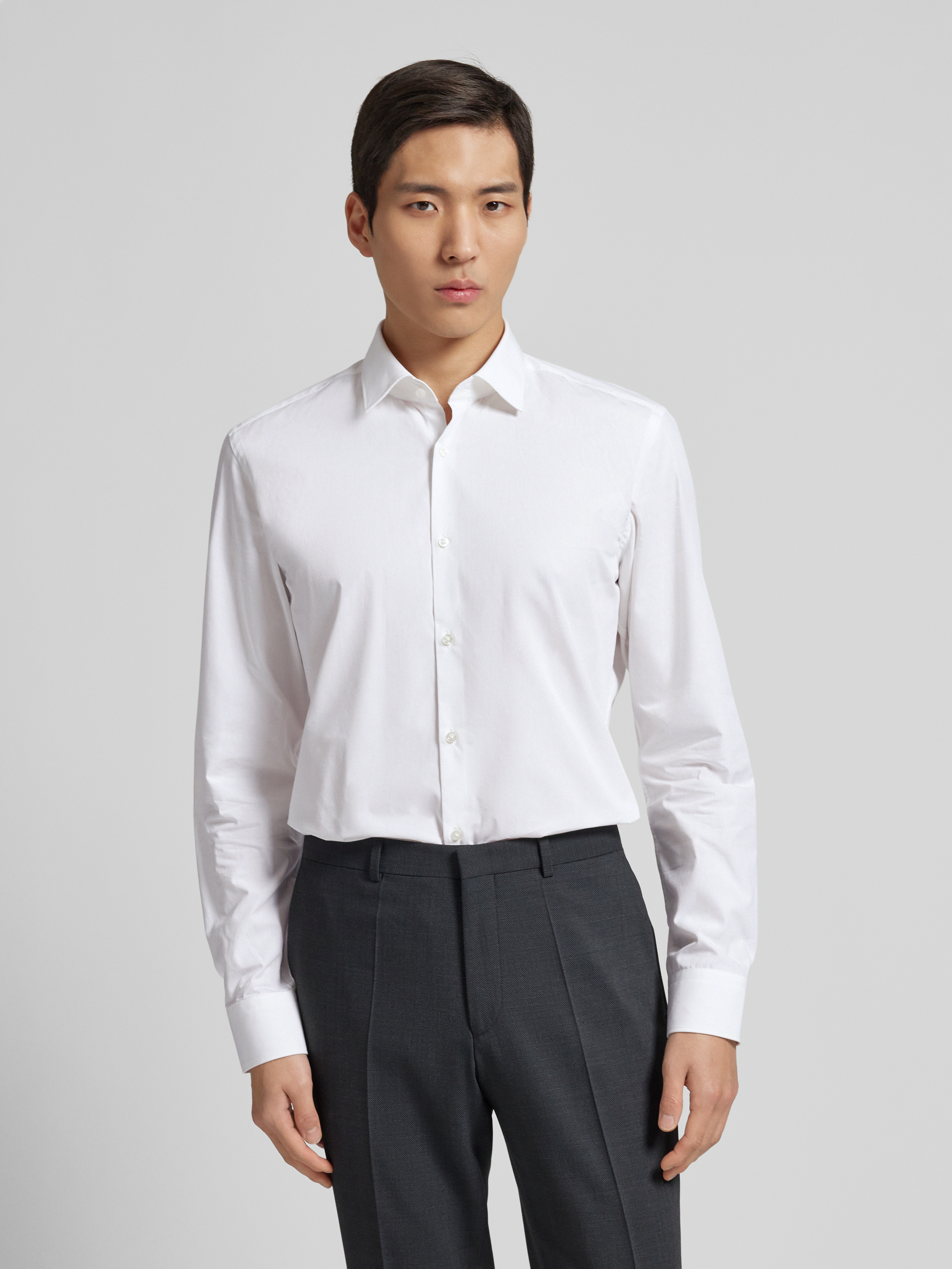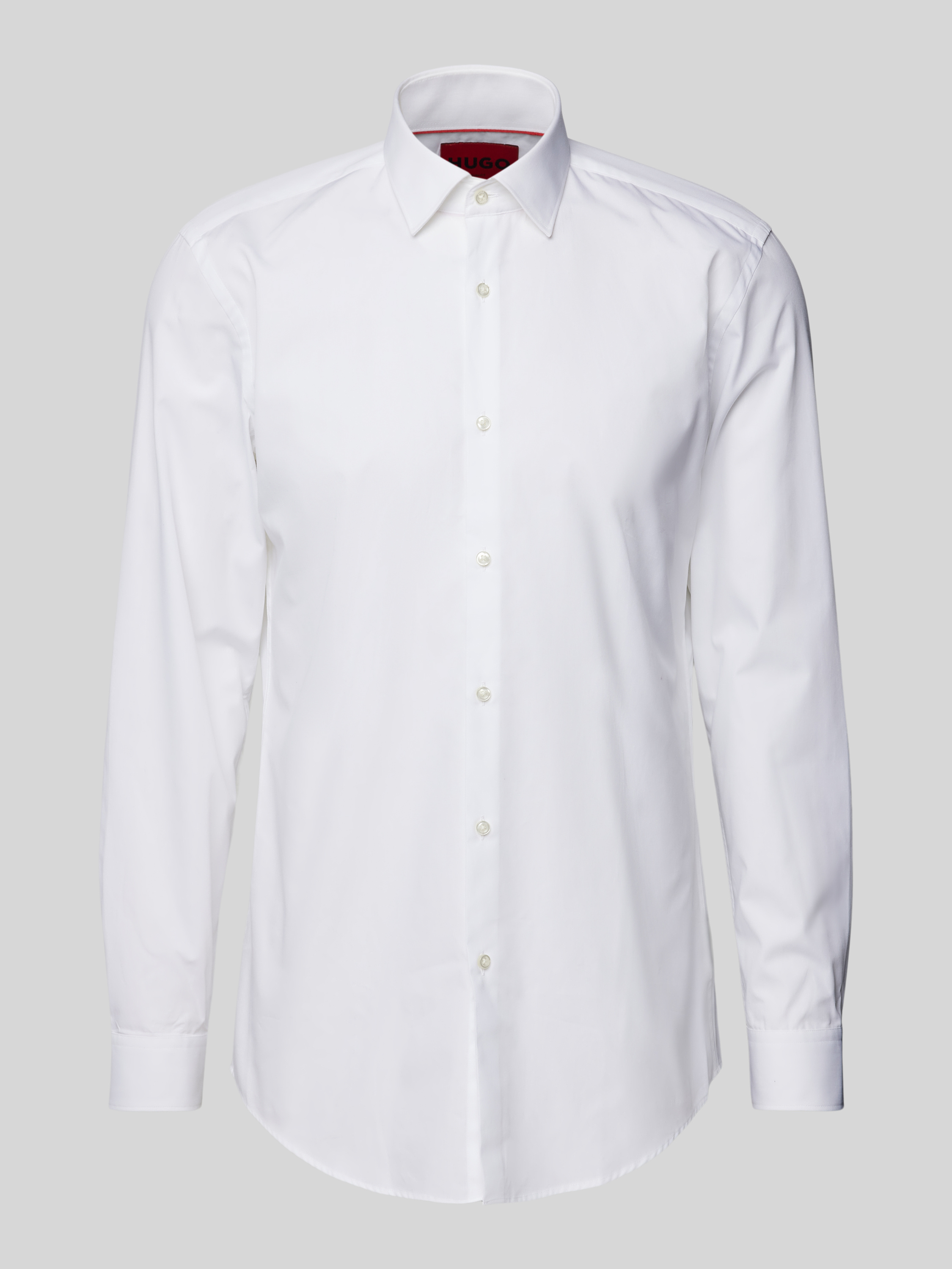Das Slim Fit Business-Hemd 'Jenno' von HUGO aus reiner Baumwolle verbindet eleganten Stil mit optimalem Tragekomfort. Der Haifischkragen und die Sportmanschetten verleihen dem Hemd eine moderne Note. Es eignet sich ideal für einen gepflegten und professionellen Auftritt im Arbeitsalltag.